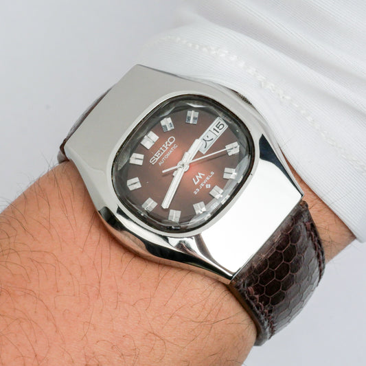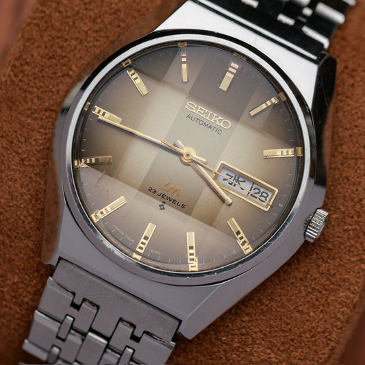 SEIKO LORD MATIC LM DAY-DATE AUTOMATIC FACETED CRYSTAL BROWN DIAL REF. 5606-8130