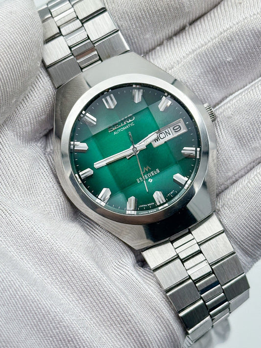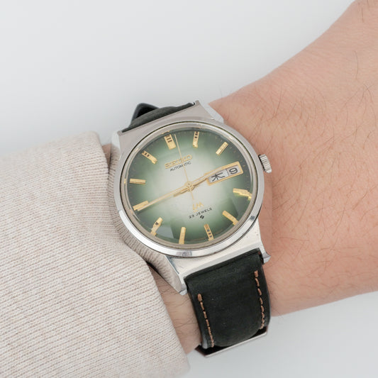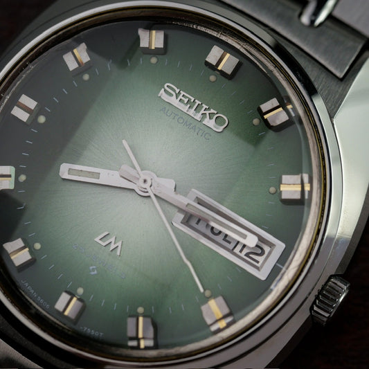 SEIKO LORD MATIC LM AUTOMATIC DAY-DATE FACETED CRYSTAL GREEN DIAL REF. 5606-7360