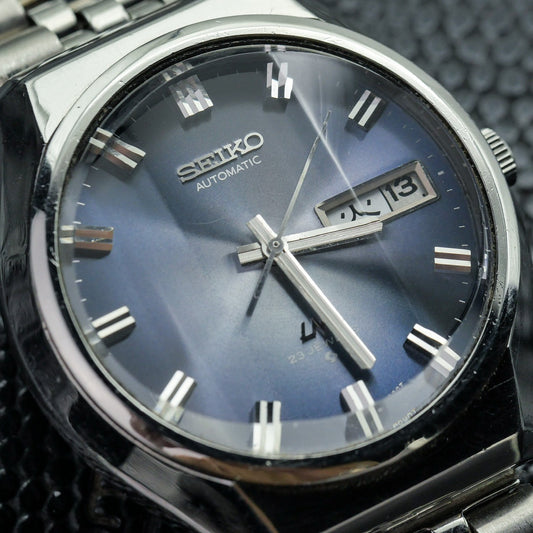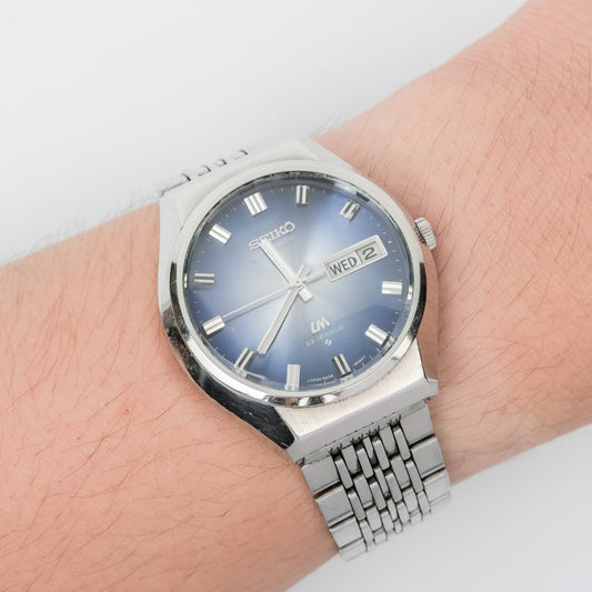 SEIKO LORD MATIC LM DAY-DATE FACETED CRYSTAL BLUE DIAL AUTOMATIC REF. 5606-8061