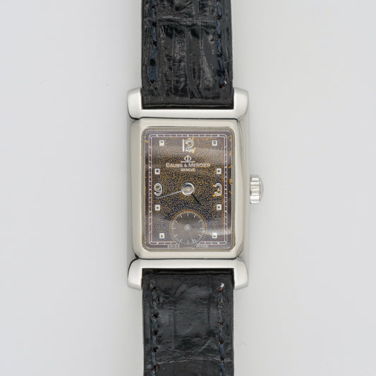 Founded in 1830, Baume & Mercier combines Swiss precision with elegant design. From award-winning chronometers to Art Deco-inspired wristwatches, their vintage collection spans nearly two centuries. Iconic models like the Marquise and Riviera showcase the brand's evolution, blending accuracy with timeless style.