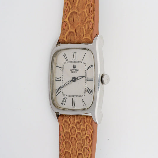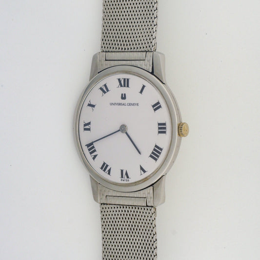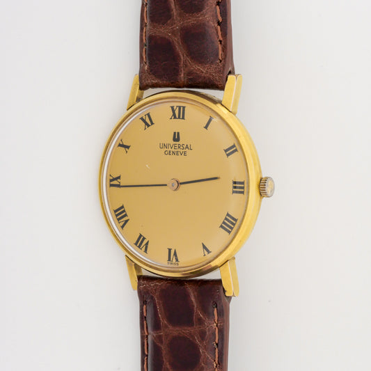 Founded in 1894, Universal Genève quickly became known as "the watch brand of connoisseurs." Pioneers in chronographs and micro-rotor movements, they introduced the iconic Polerouter in 1954, designed by Gerald Genta. Their vintage collection showcases elegant dress watches, innovative sports chronographs like the Compax, and the distinctive Tri-Compax. Universal Genève's vintage pieces reflect a rich history of horological innovation and sophisticated Swiss design, despite the brand's eventual decline in the 1970s.