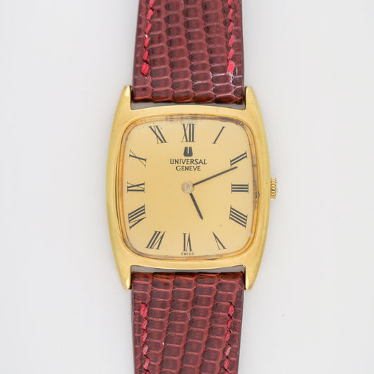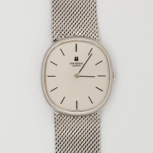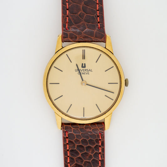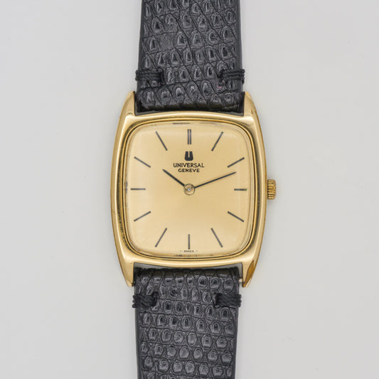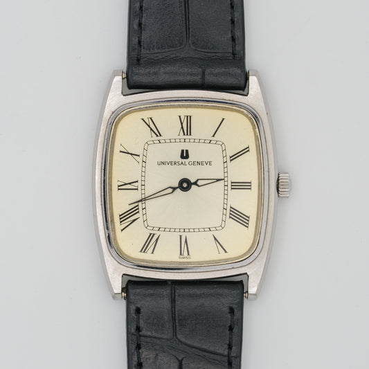 Founded in 1894, Universal Genève quickly became known as "the watch brand of connoisseurs." Pioneers in chronographs and micro-rotor movements, they introduced the iconic Polerouter in 1954, designed by Gerald Genta. Their vintage collection showcases elegant dress watches, innovative sports chronographs like the Compax, and the distinctive Tri-Compax. Universal Genève's vintage pieces reflect a rich history of horological innovation and sophisticated Swiss design, despite the brand's eventual decline in the 1970s.