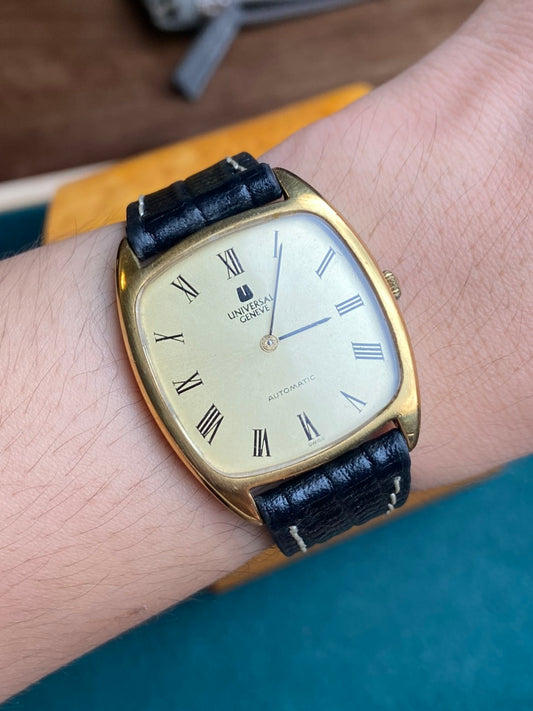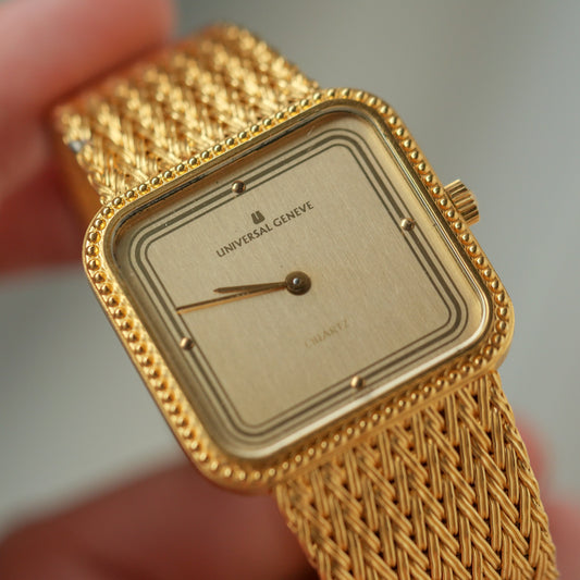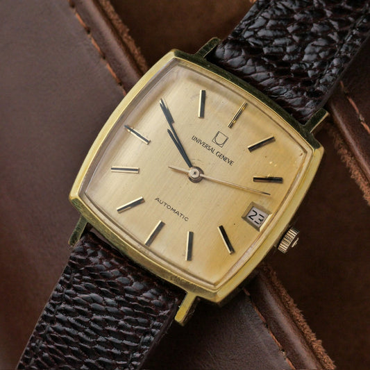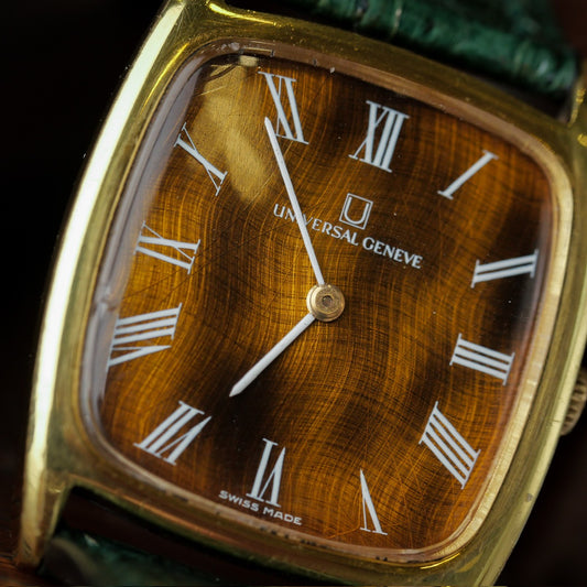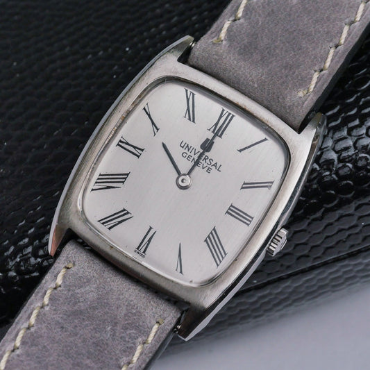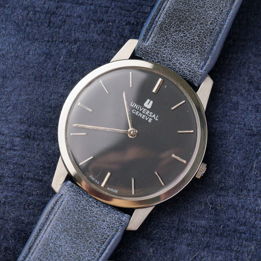 Founded in 1894, Universal Genève quickly became known as "the watch brand of connoisseurs." Pioneers in chronographs and micro-rotor movements, they introduced the iconic Polerouter in 1954, designed by Gerald Genta. Their vintage collection showcases elegant dress watches, innovative sports chronographs like the Compax, and the distinctive Tri-Compax. Universal Genève's vintage pieces reflect a rich history of horological innovation and sophisticated Swiss design, despite the brand's eventual decline in the 1970s.
