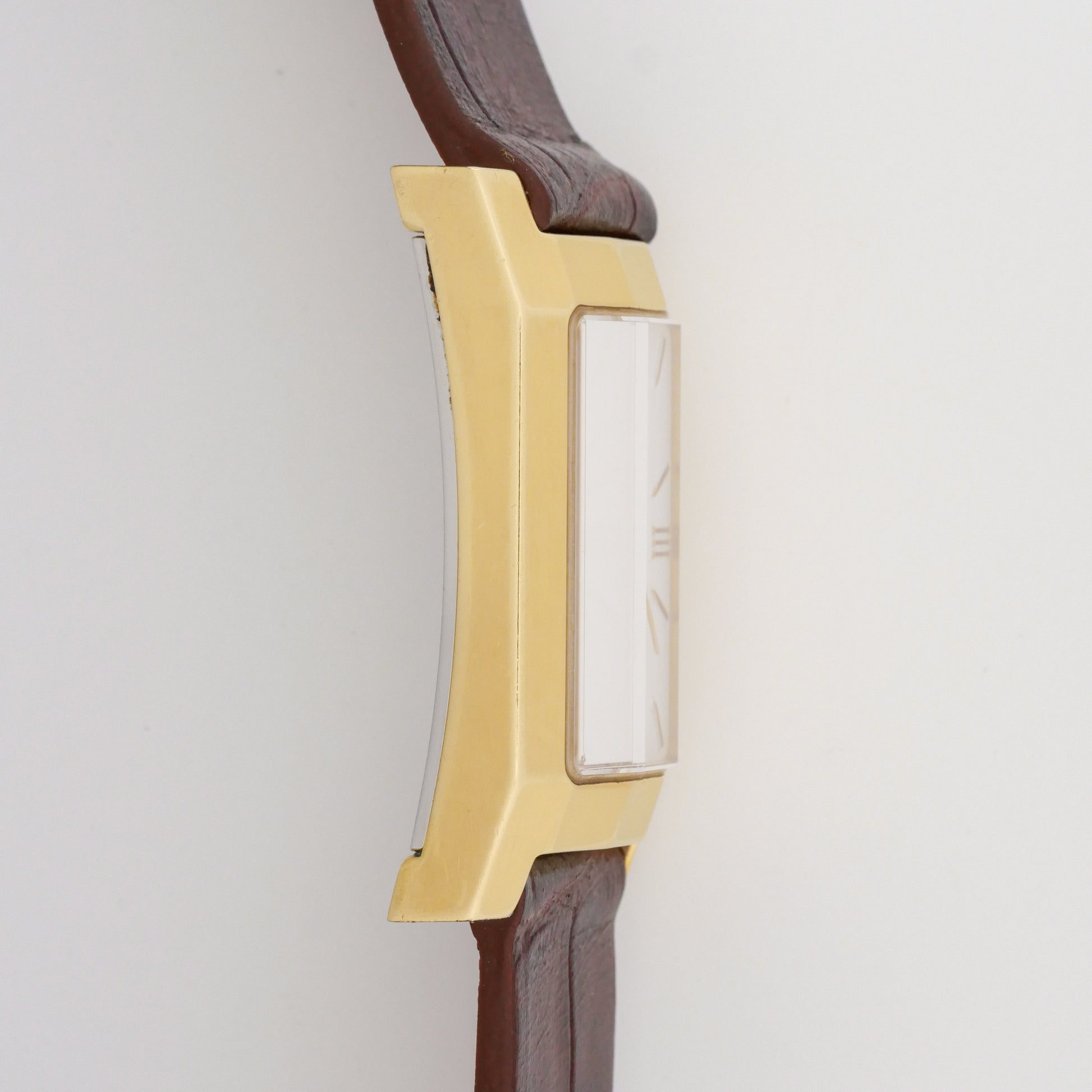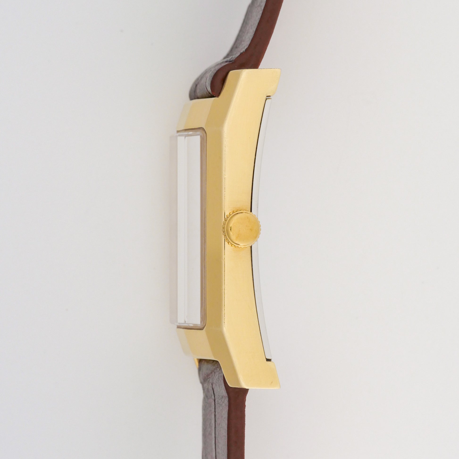 - Case: shows moderate wear consistent with regular use. There are visible scratches and scuffing on the sides and edges, particularly noticeable on the lugs and case edges. The gold plating is intact overall but shows signs of wear in high-contact areas.