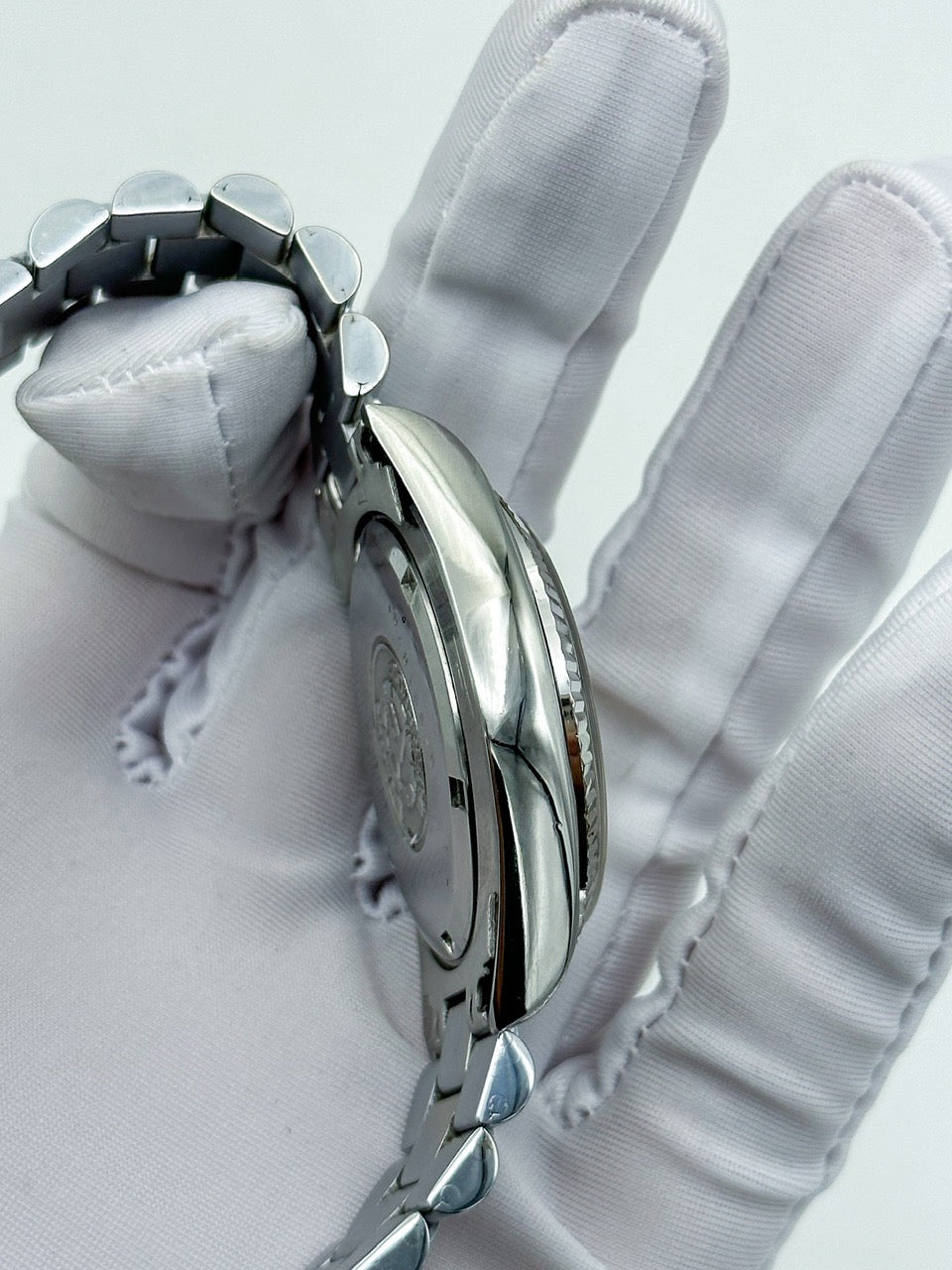 Points of Mention: Obvious minimal scratches overall on the case and bracelet, it seems like has been polished before. Hairline surface scratches the glass.