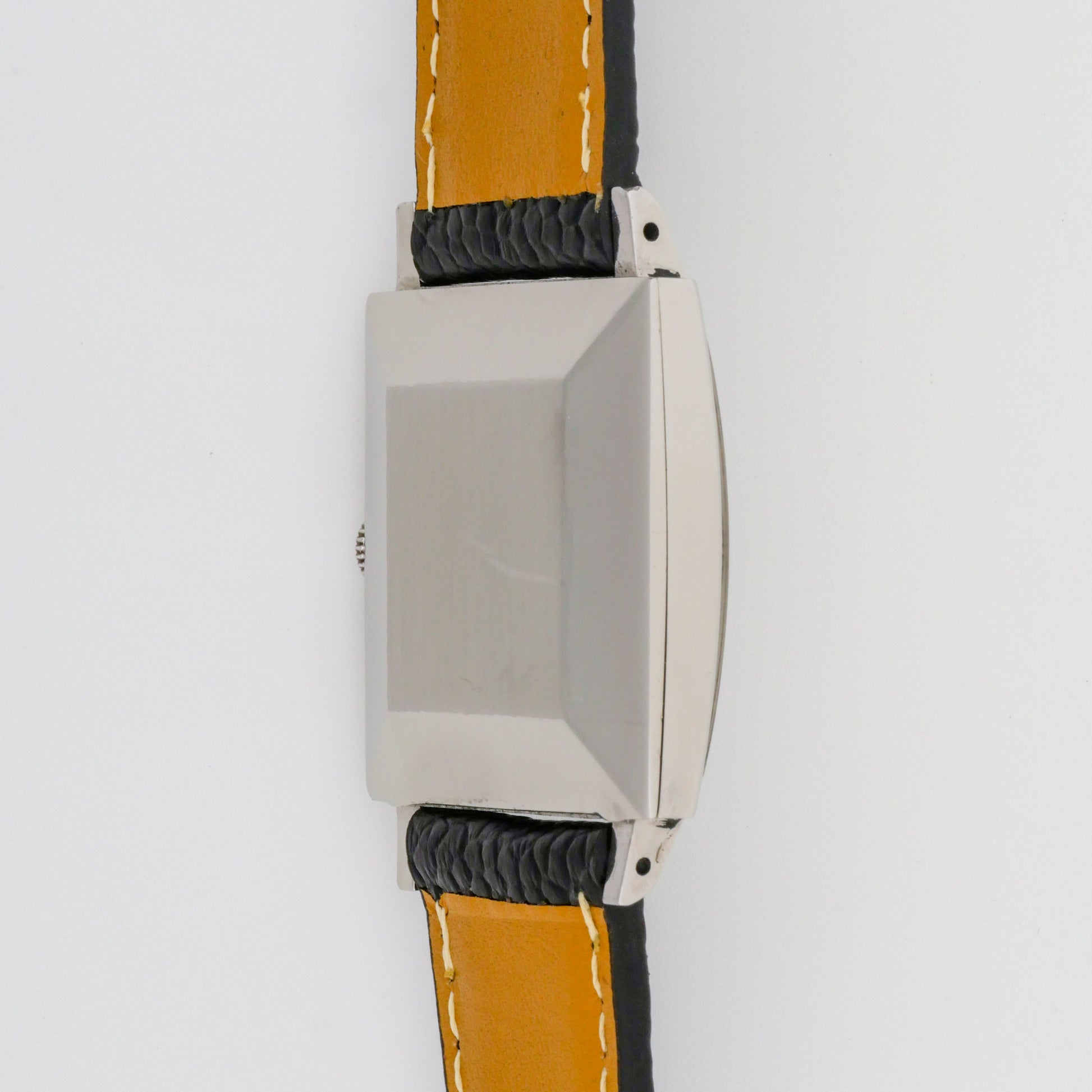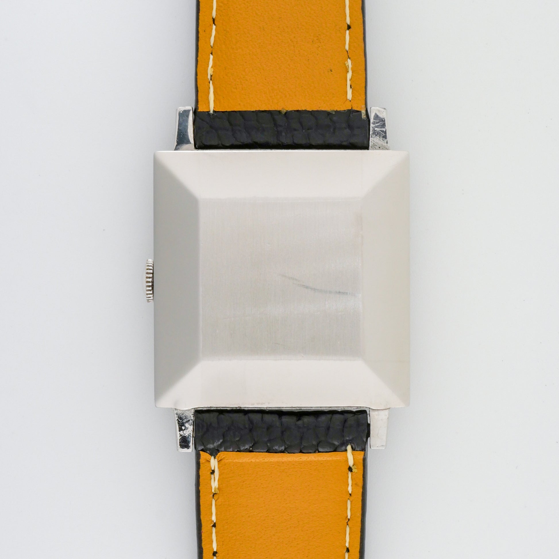 - Case: in good condition with typical signs of wear. The square/rectangular case shows some light surface marks but maintains its original brushed finish. The case edges and lugs remain sharp and well-defined.