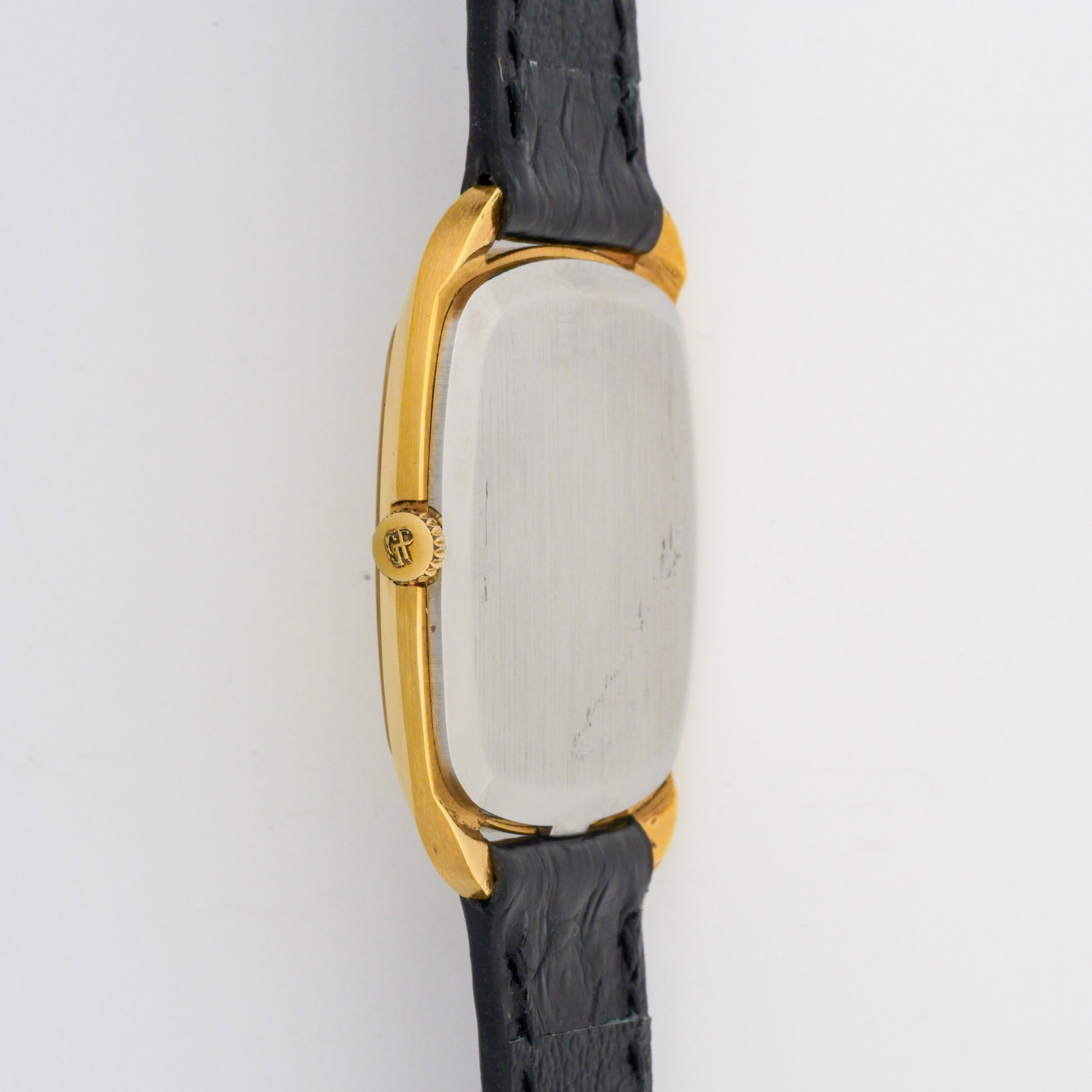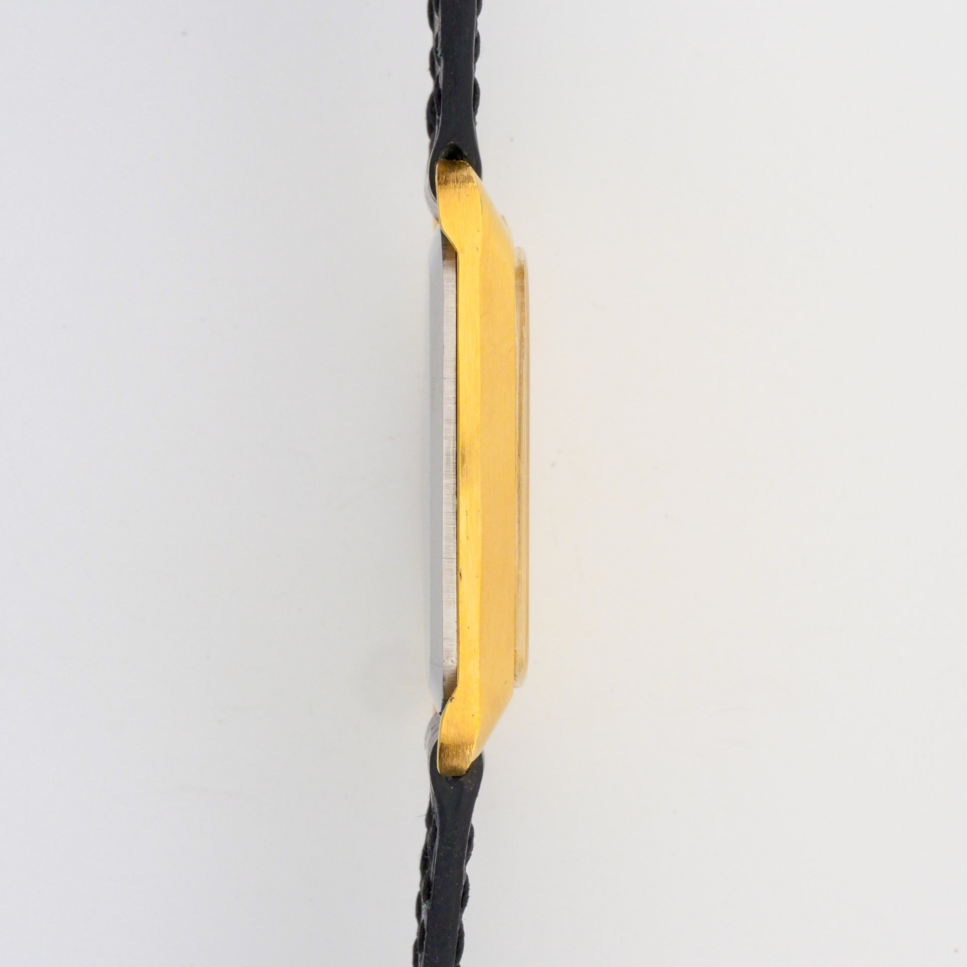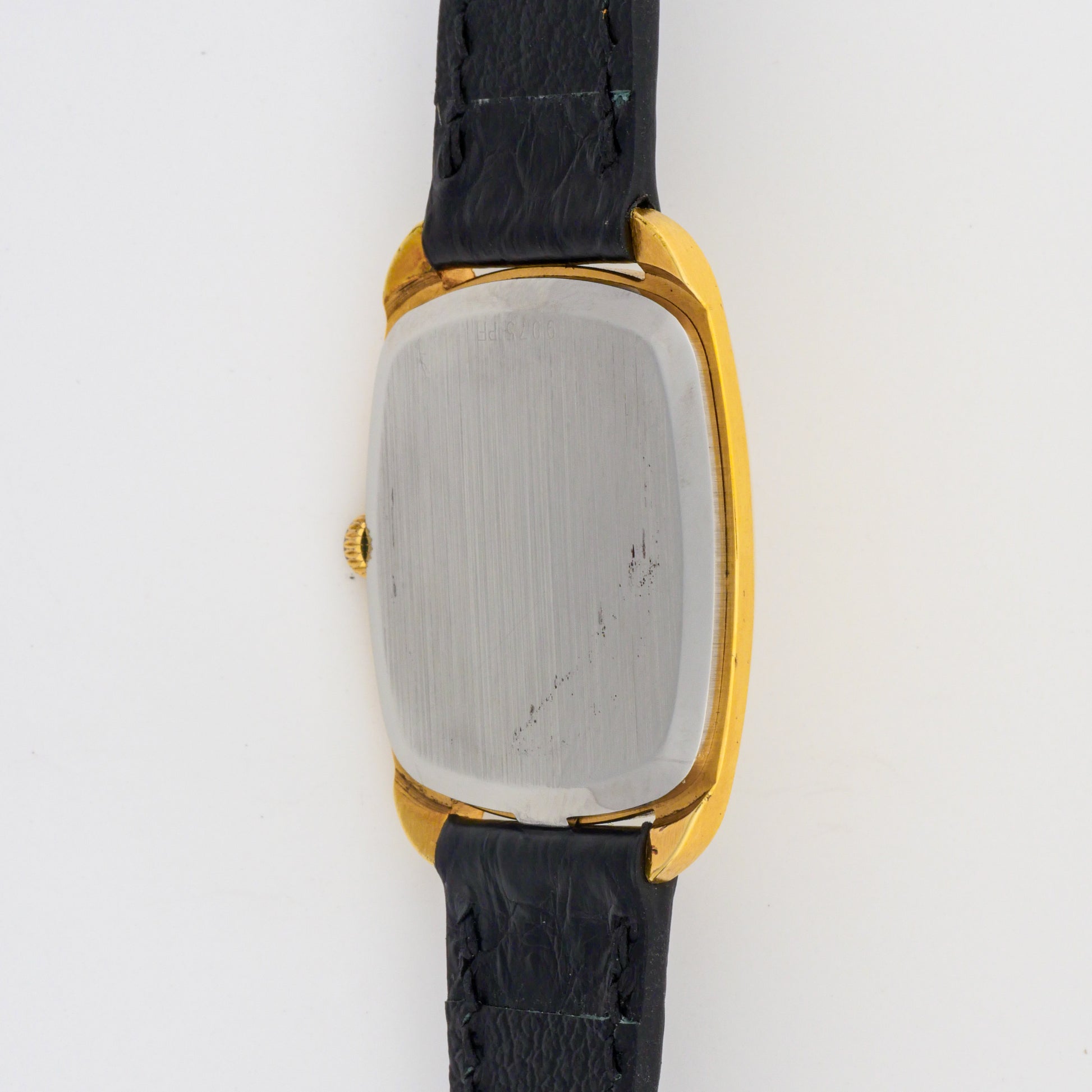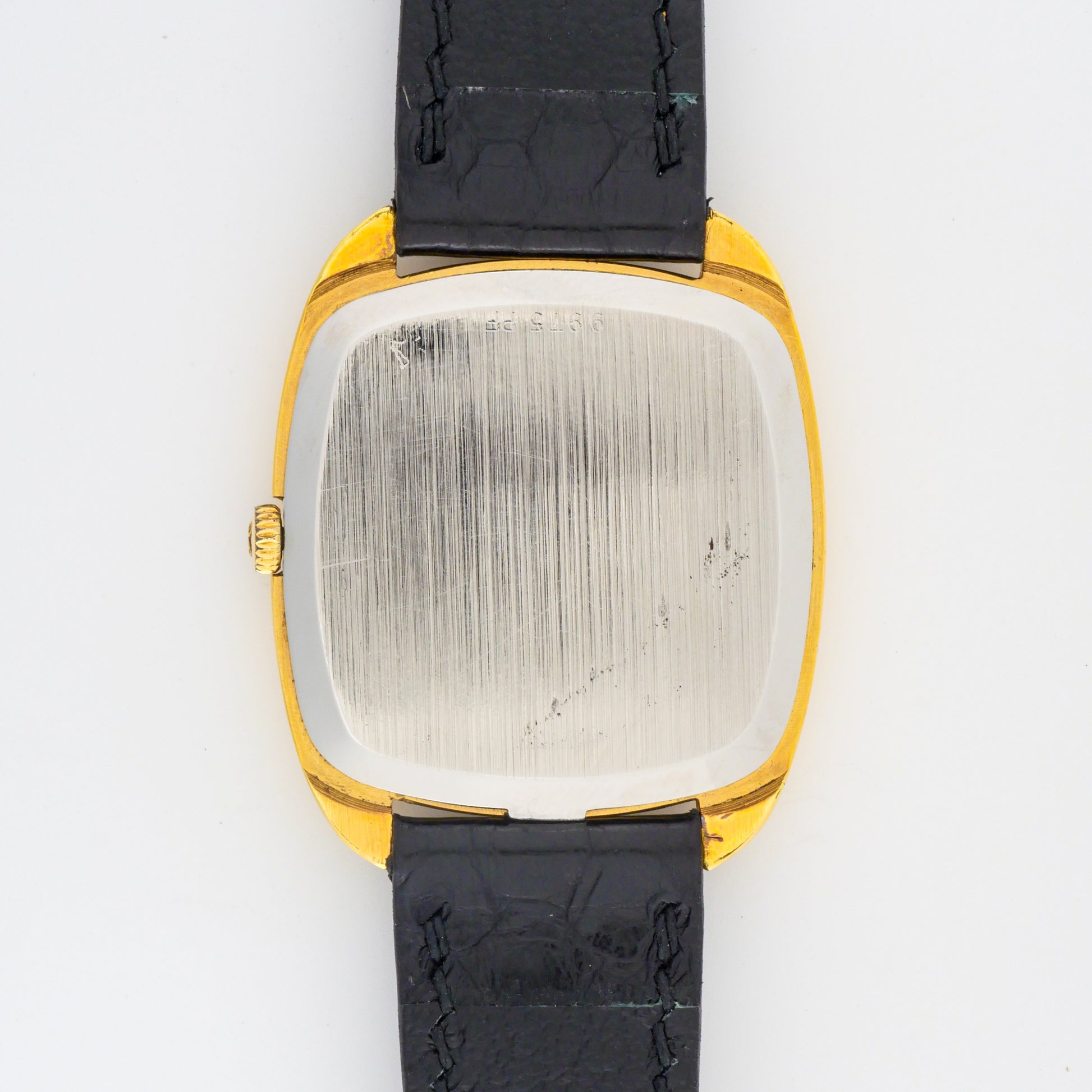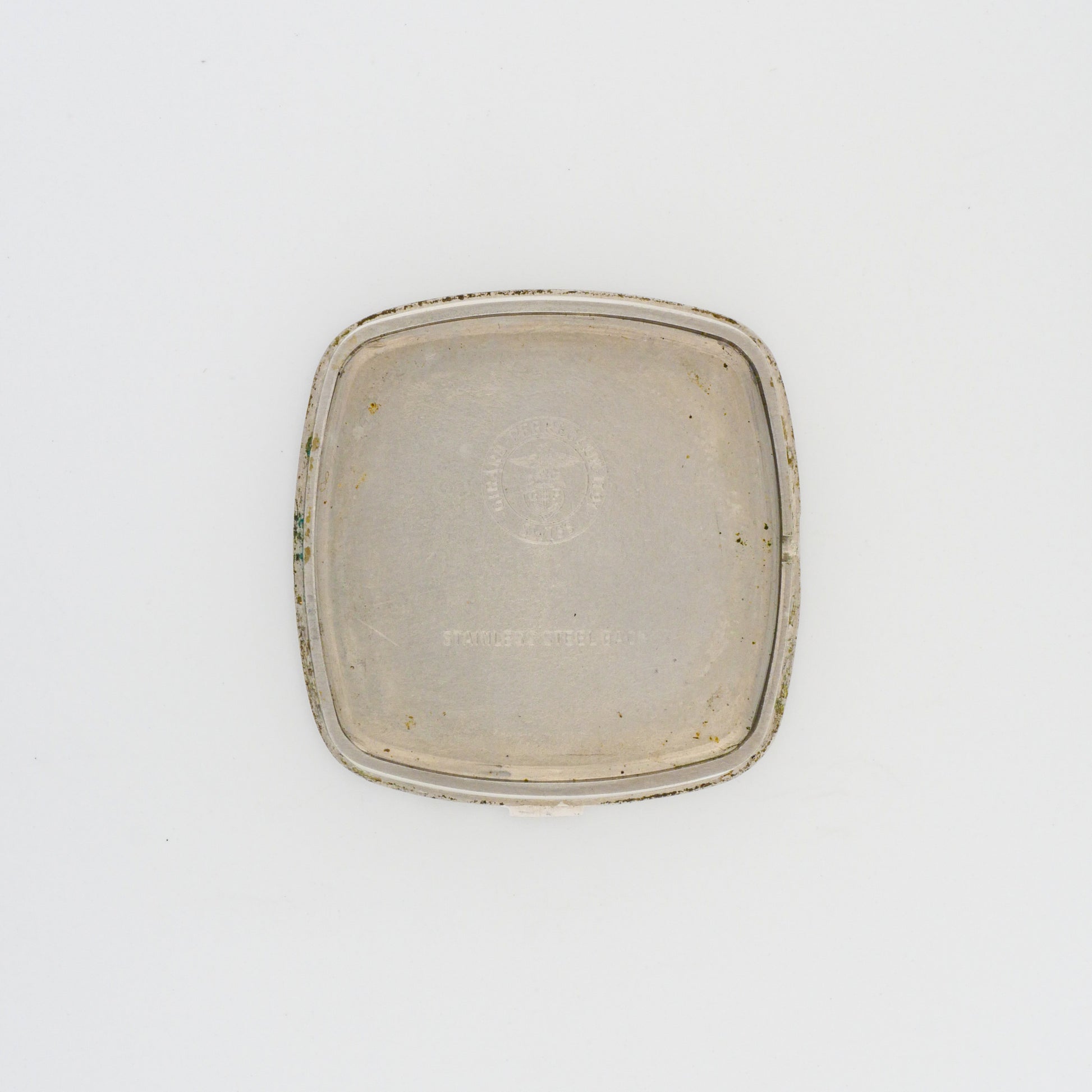 - Case: shows moderate signs of wear consistent with age. There are visible scratches and some loss of plating, particularly on the edges and lugs. The case retains its original cushion shape with clean lines.