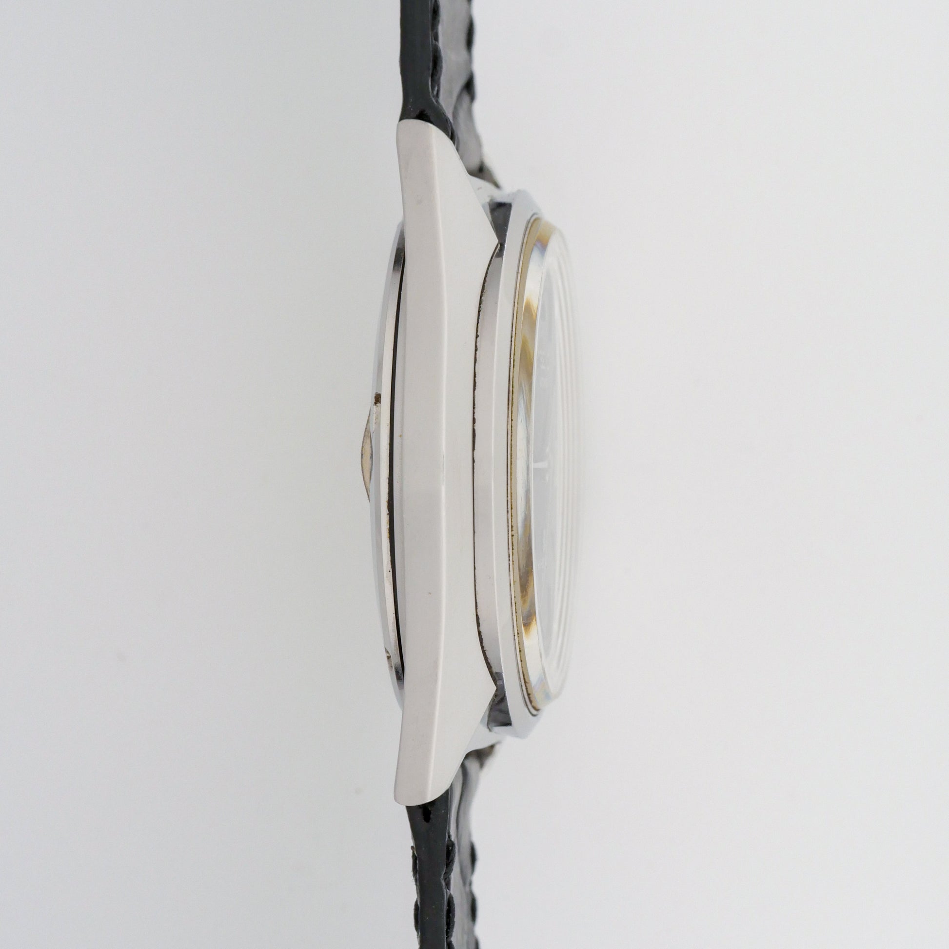 - All components are genuine and original to the timepiece, except the replaced leather strap and buckle. The original dial has been refinished.