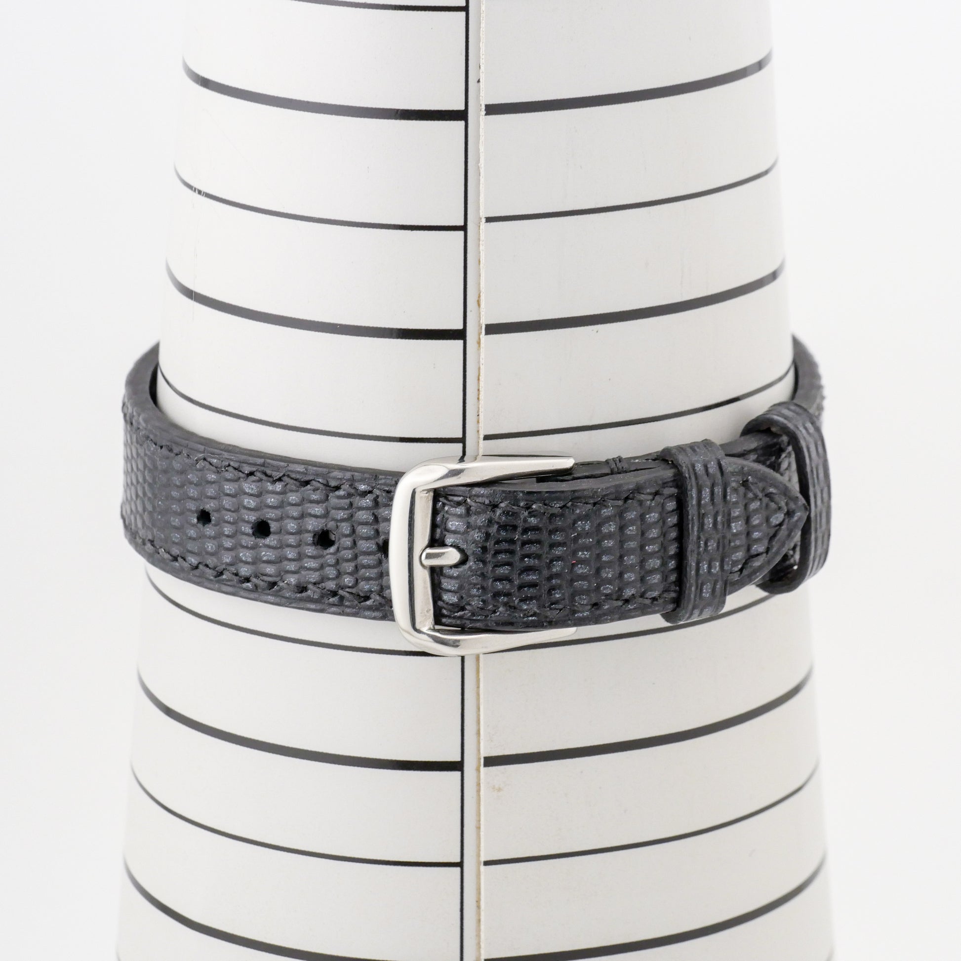 - Two subsidiary dials: running seconds at 9 o'clock, 30-minute totalizer at 3 o'clock