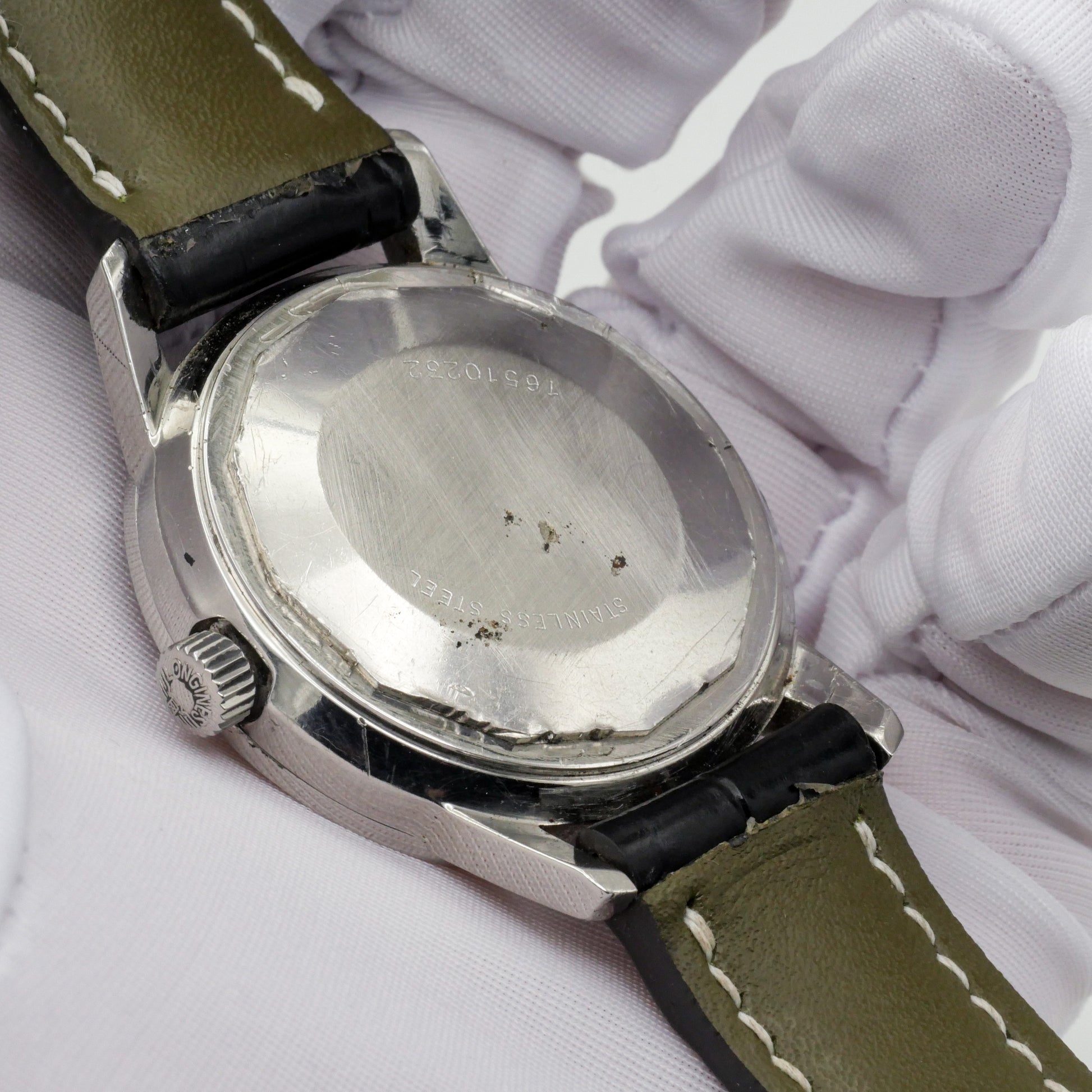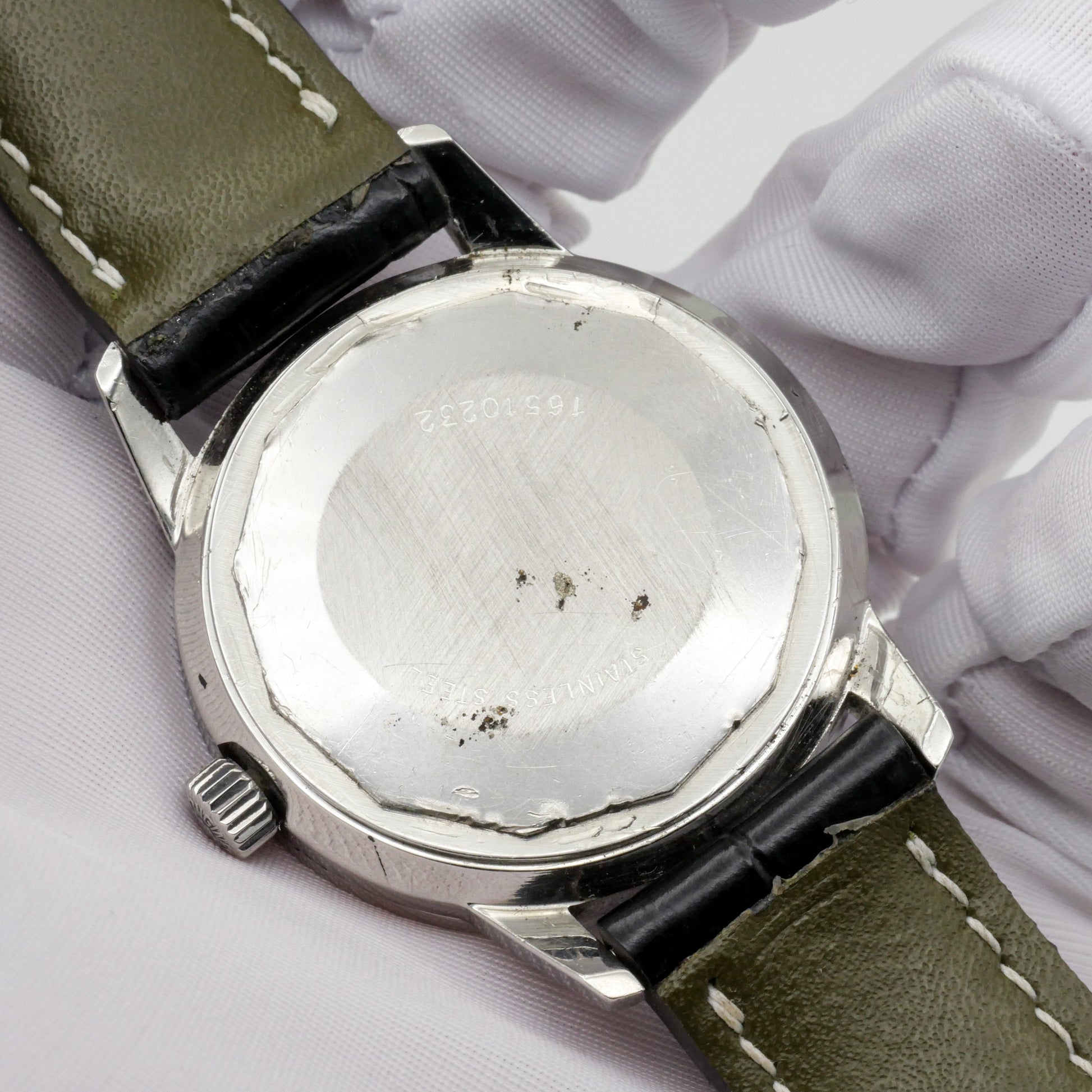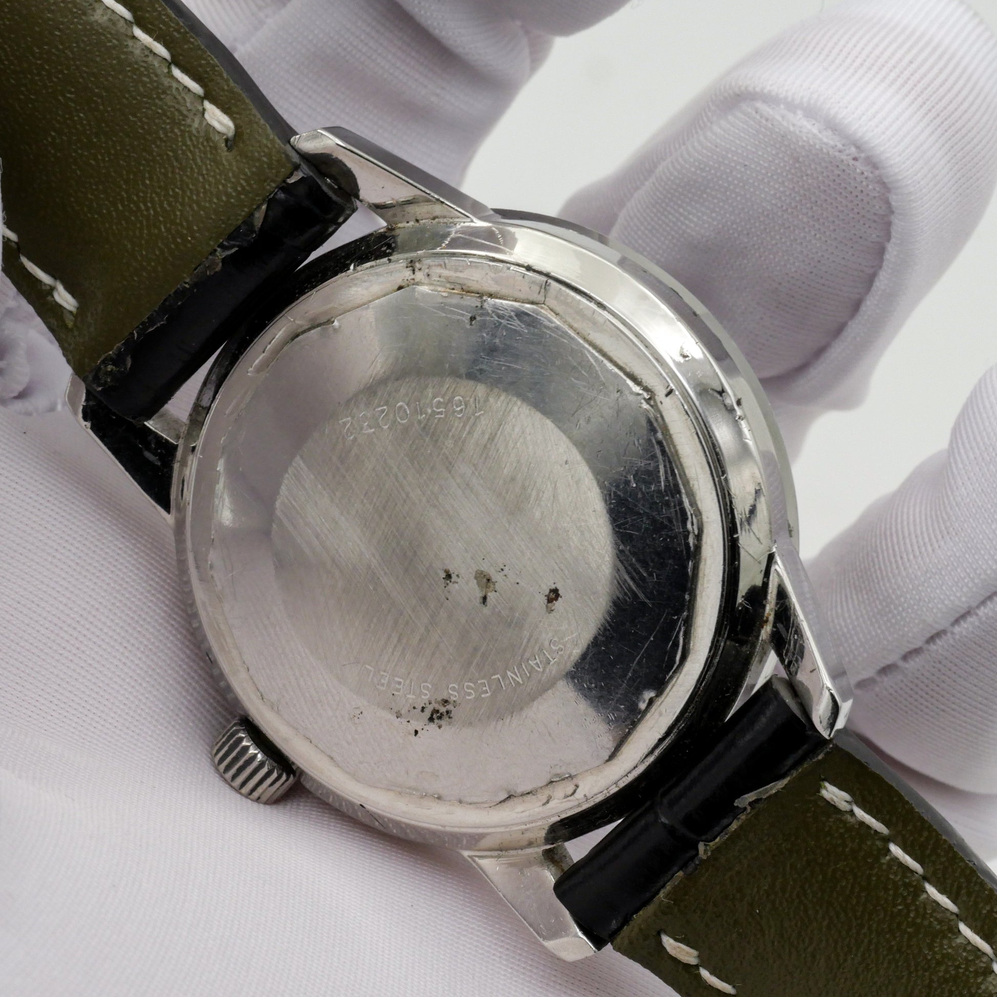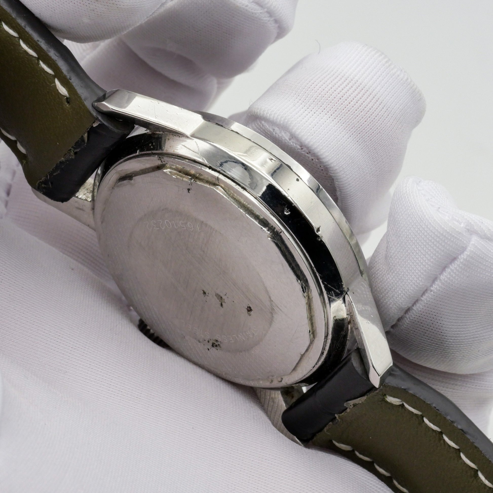 - Obvious dents and scratches on the caseback from previous owners attempting to open the case.