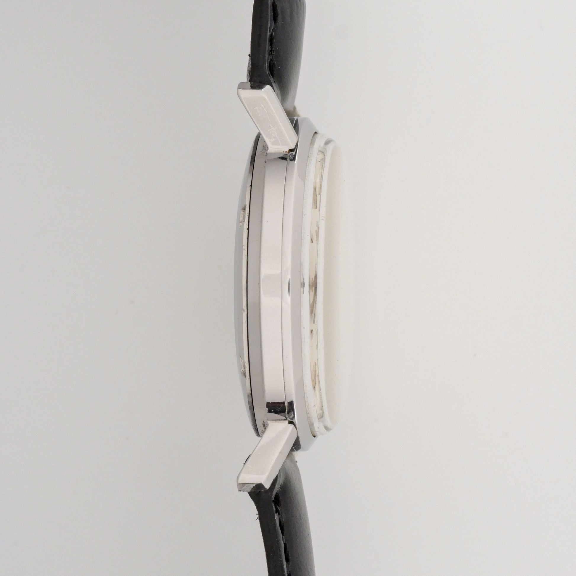 - Dial: Warm cream patina with minor aging spots. Applied markers and hands show slight tarnishing. Text and date window remain clear and legible.