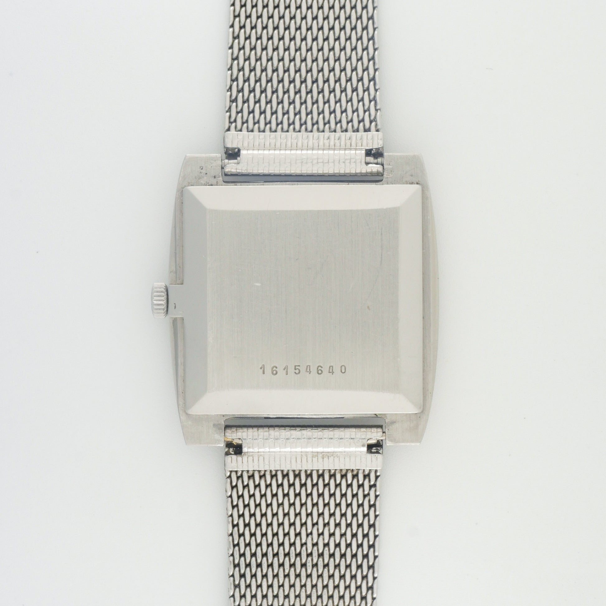 - Dial: shows signs of aging with slight discoloration and patina around the edges. The hour markers remain intact with minimal degradation. There are some very light spotting or speckling on the dial surface, typical of vintage watches of this era.