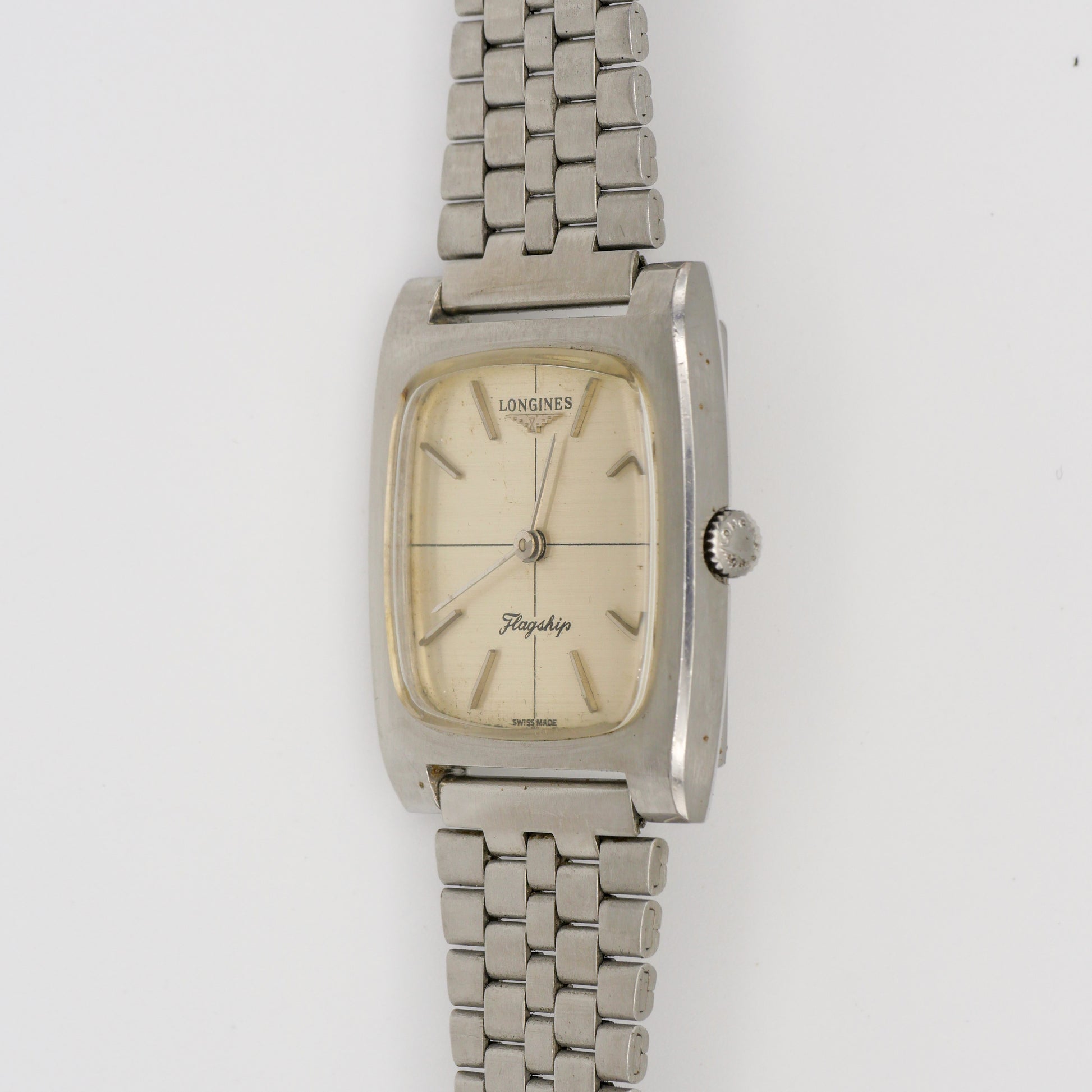 - The cosmetic condition of the Longines Flagship watch appears to be well-worn and showing signs of age and use.