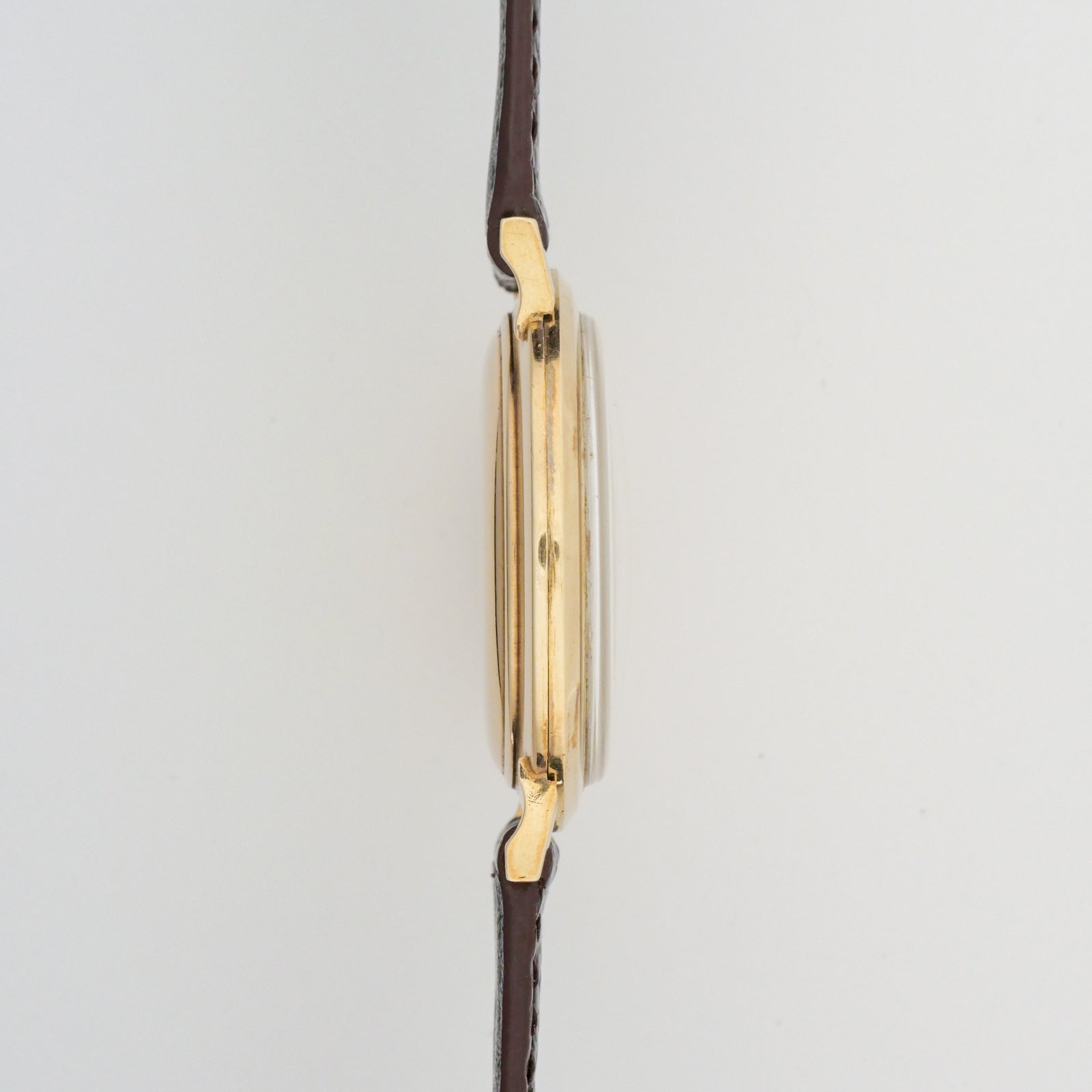 - Dial: remains largely intact. There are some minor spots and slight discoloration visible. The hour markers and hands retain their gold coloring reasonably well, though there may be some slight fading. The subsidiary seconds dial at 6 o'clock appears clean with minimal signs of aging.