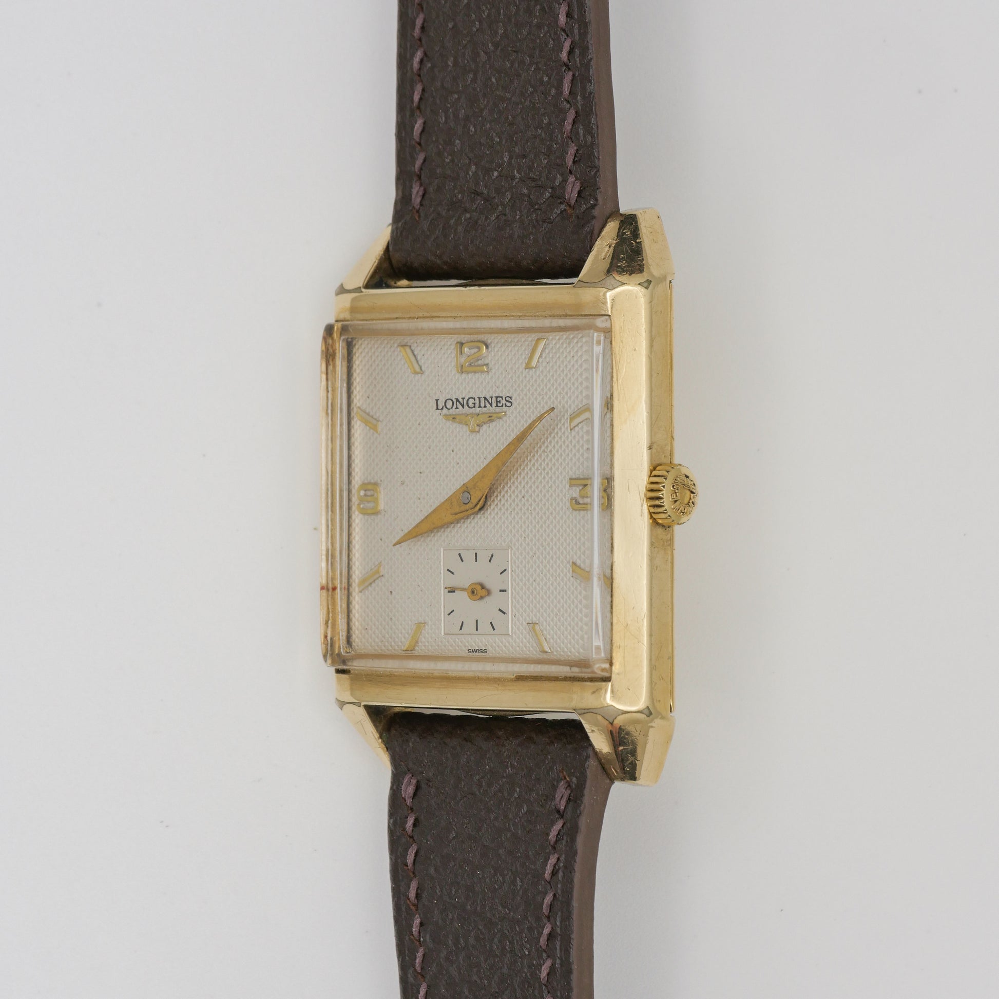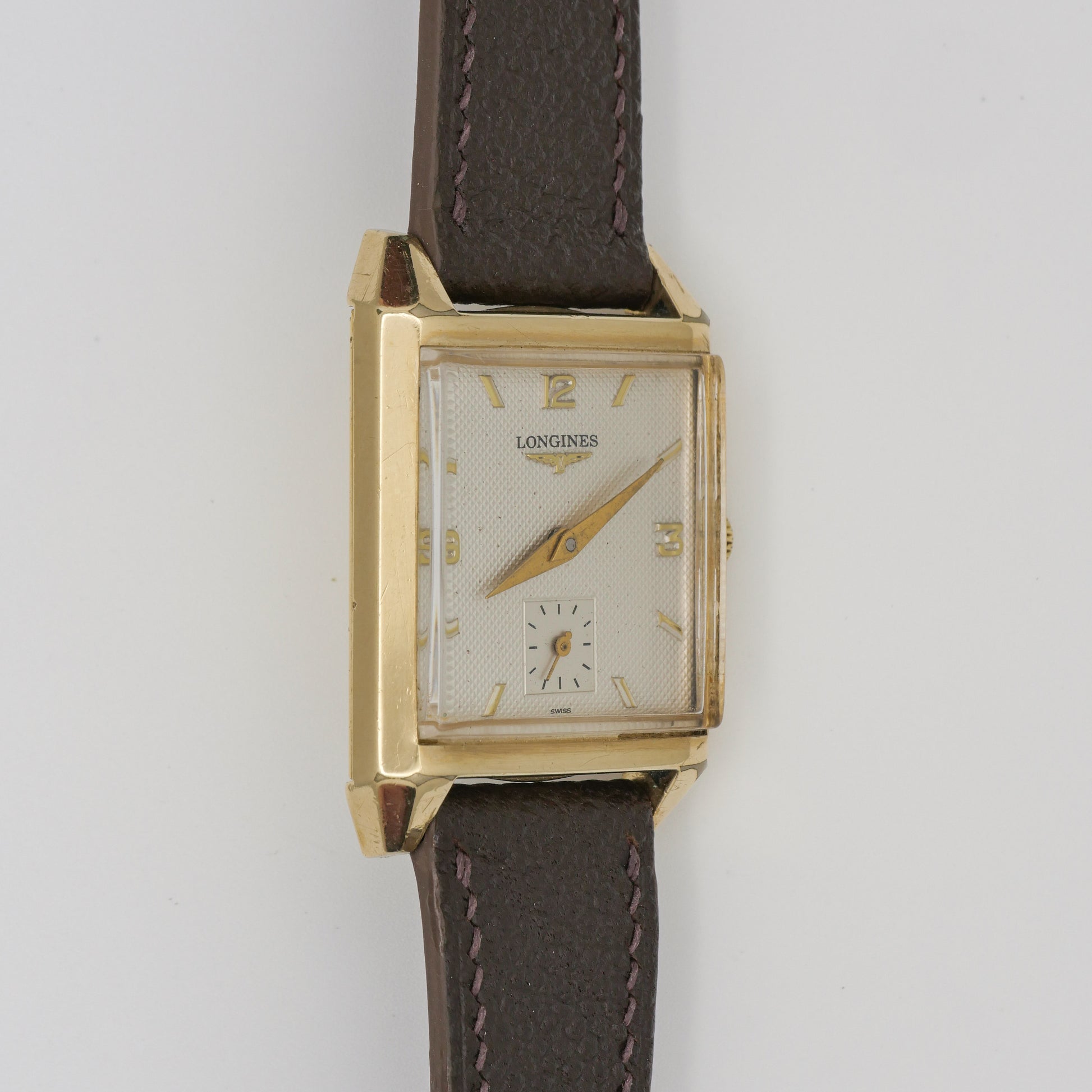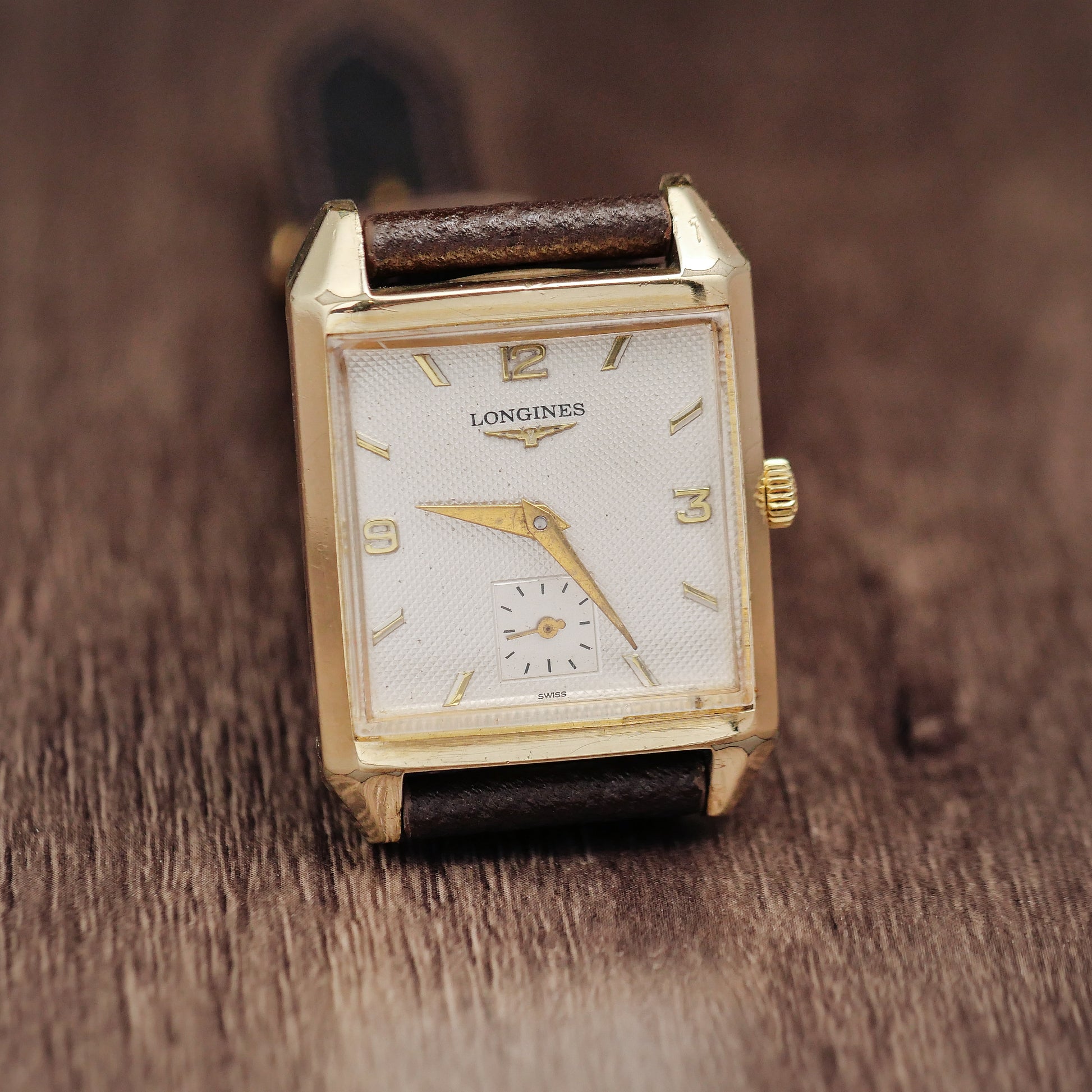 - Dial: is well-preserved, showing minimal signs of aging. The honeycomb pattern, applied gold hour markers, Longines logo, and small seconds sub-dial are all intact and clearly legible.