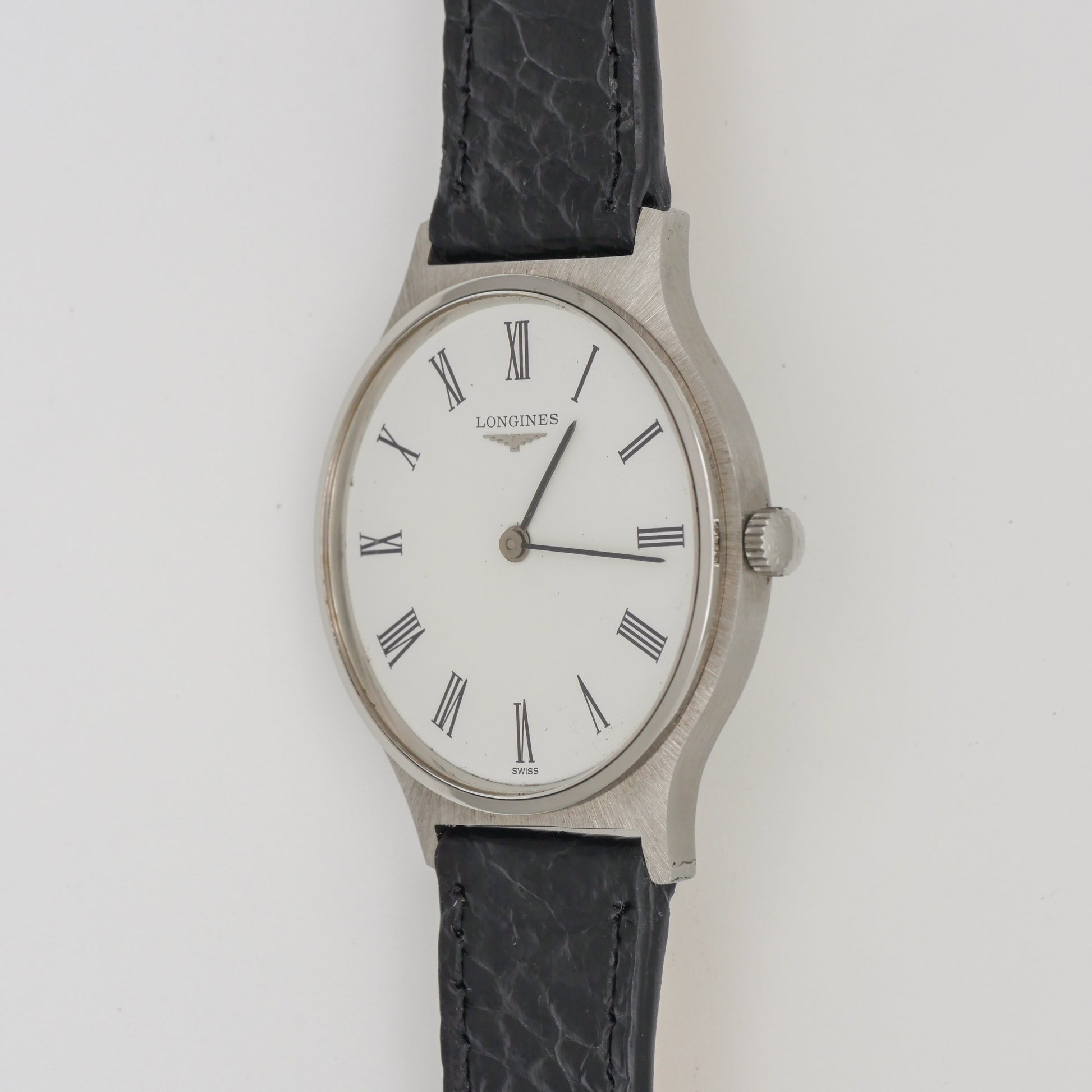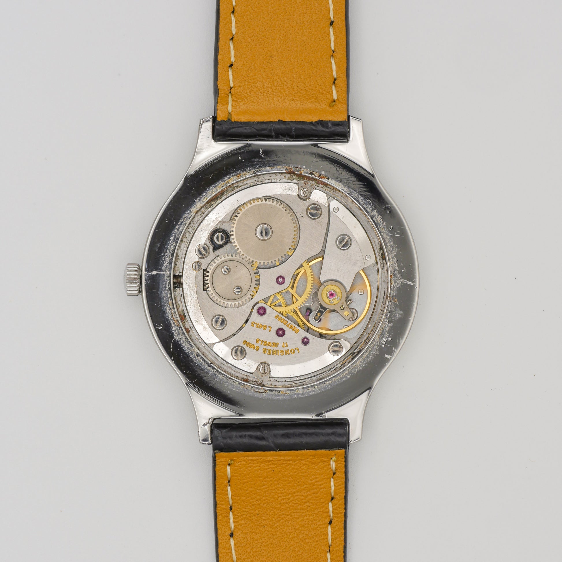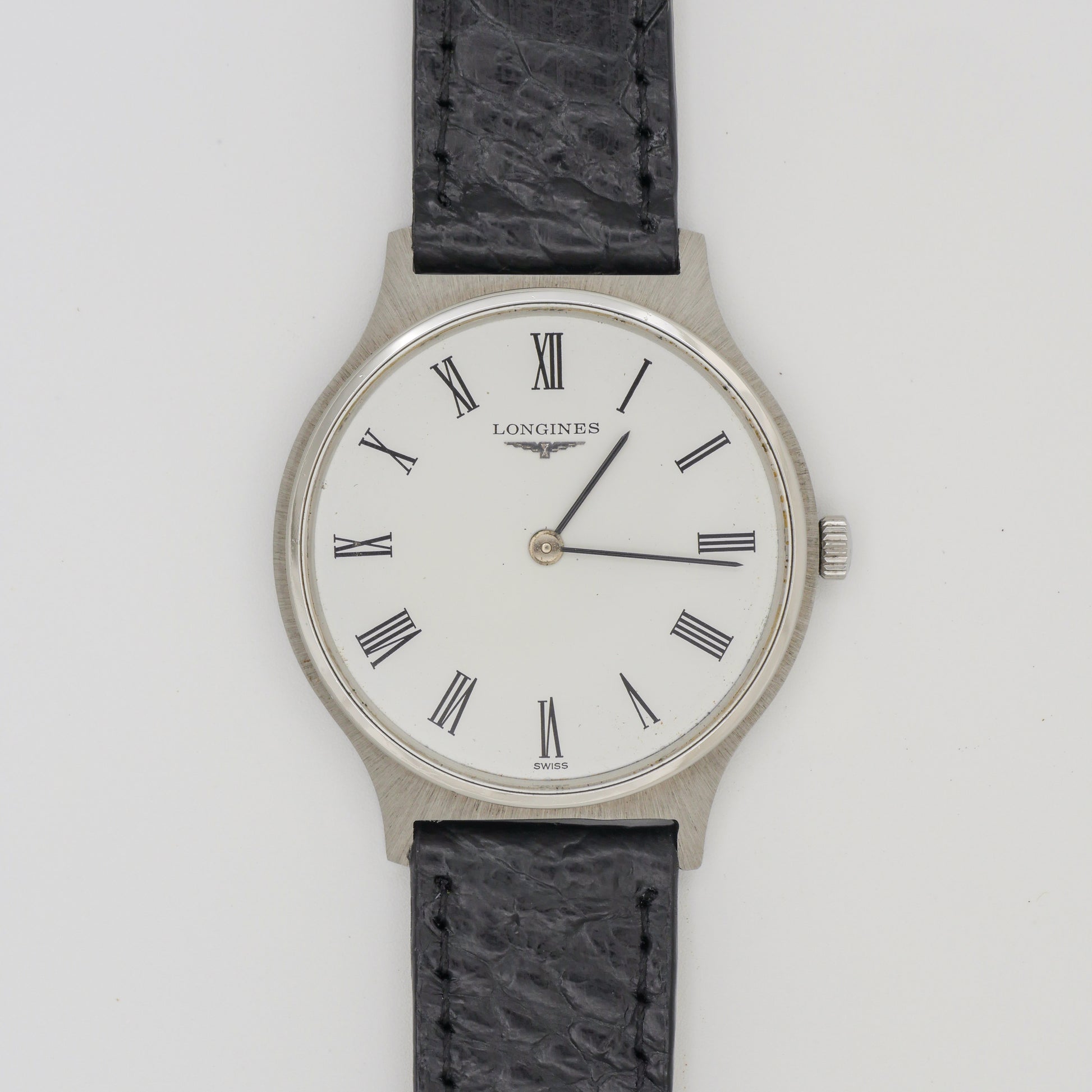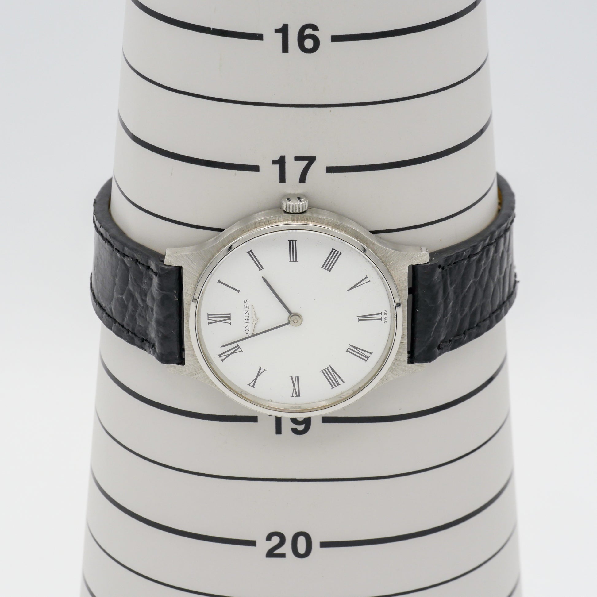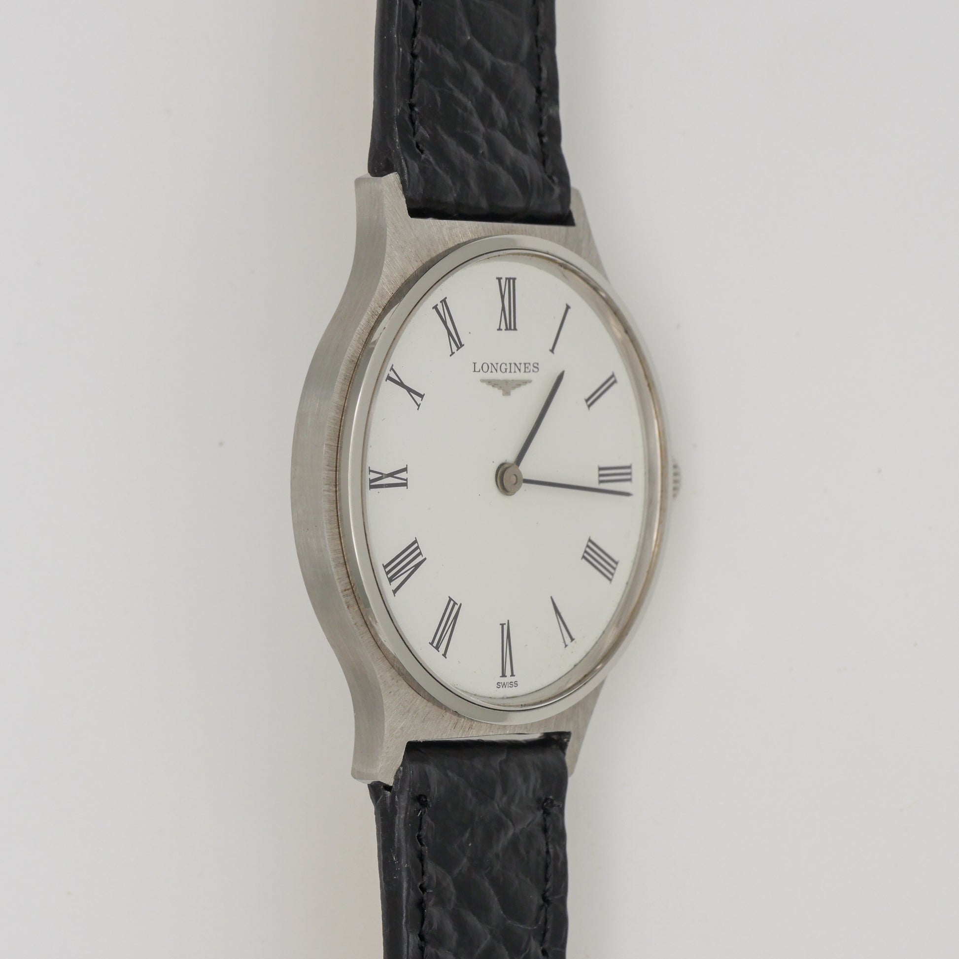 - Dial: in pristine condition. The Roman numeral hour markers and Longines logo are crisp and well-defined, with no signs of fading or damage.