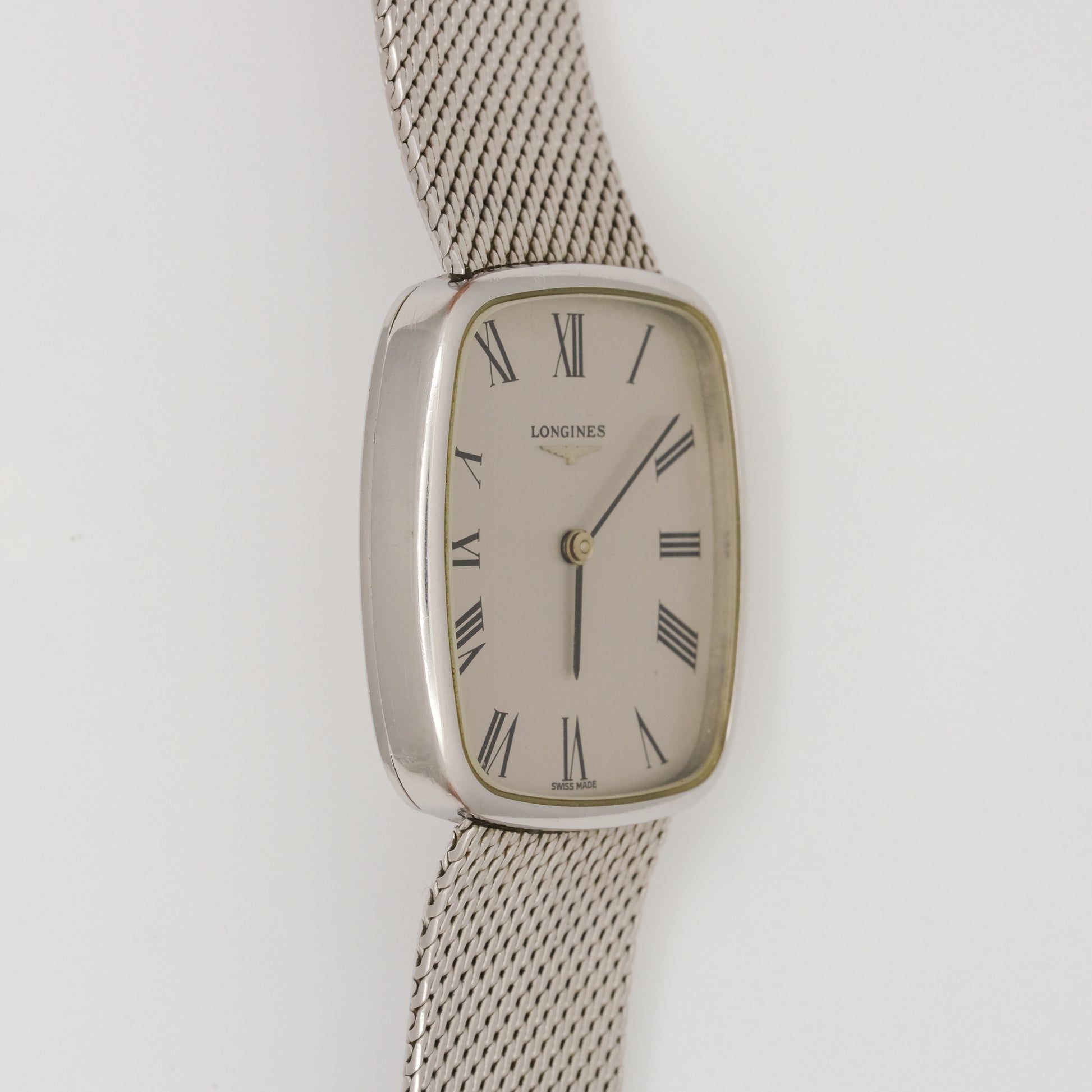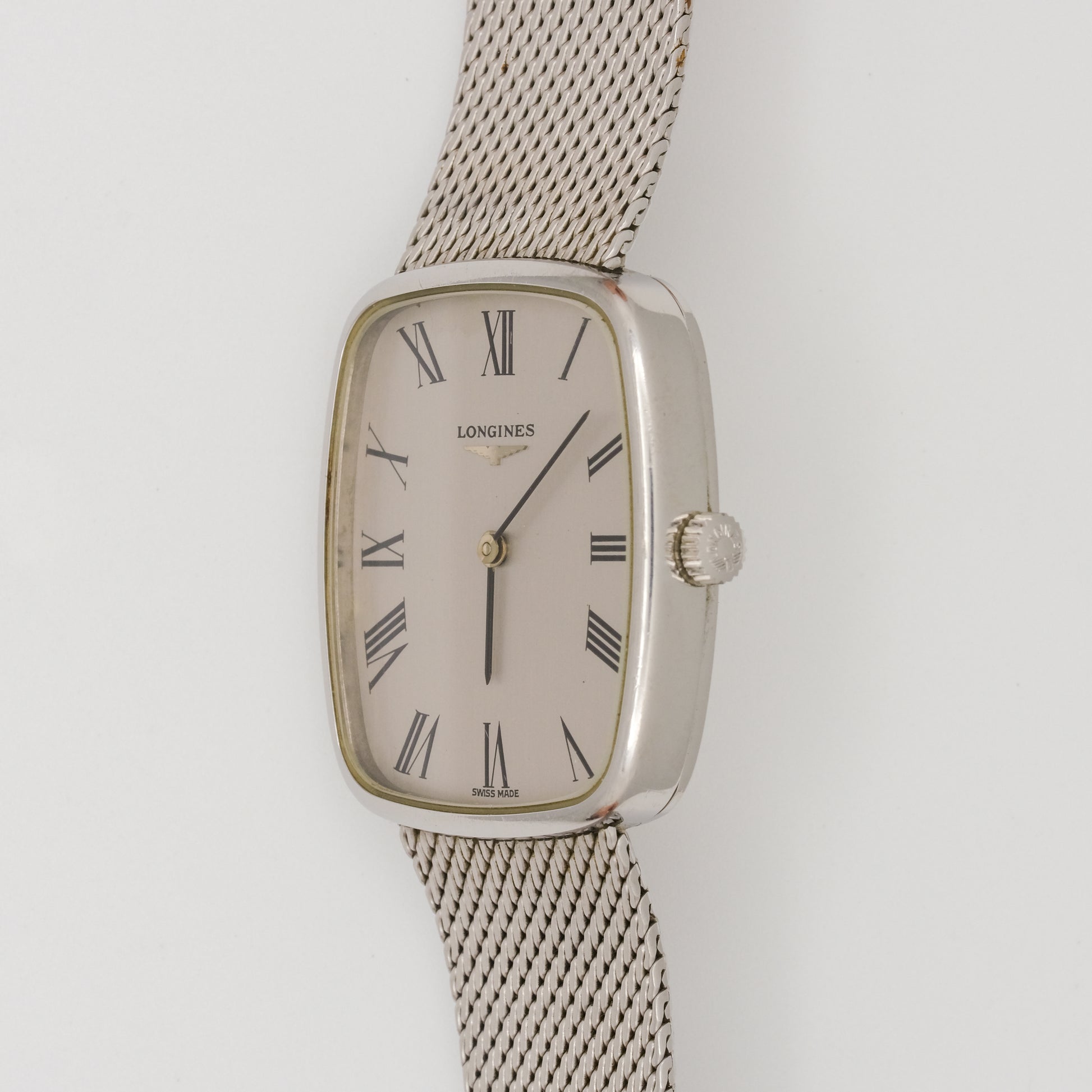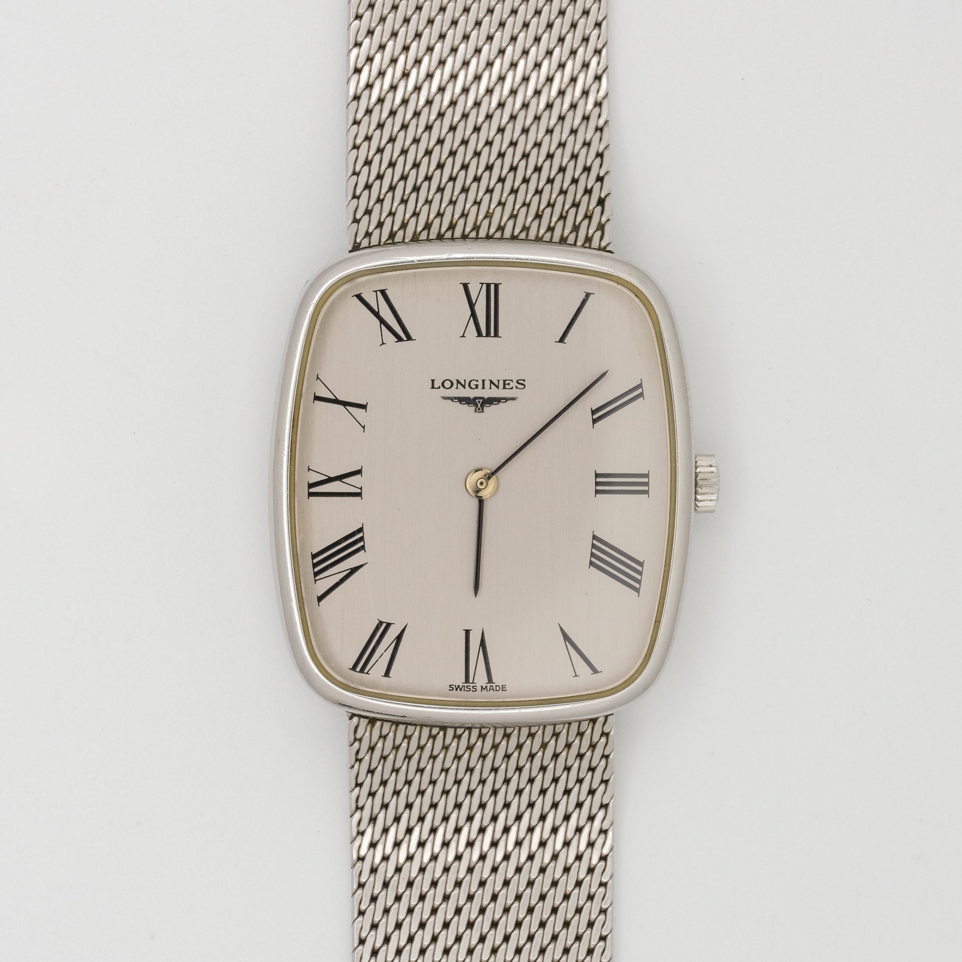 - Dial: in excellent condition, no visible signs of discoloration, damage, or restoration, with a clean with crisp black Roman numeral hour markers. The Longines logo and "Swiss Made" text are clear and undamaged. The hands are original and in good condition.