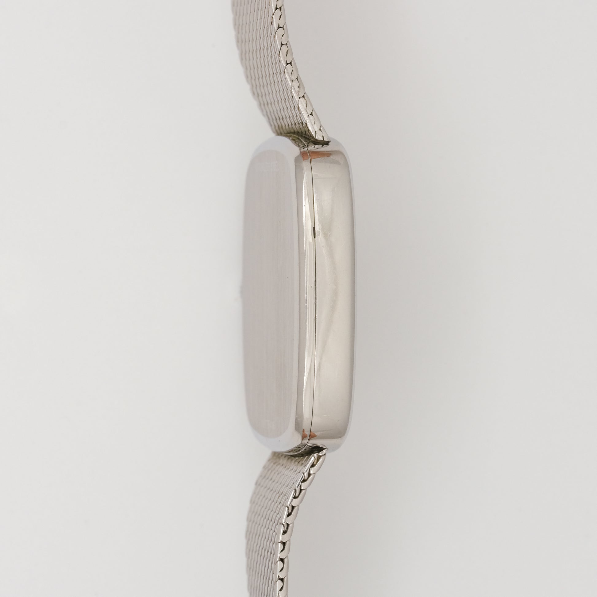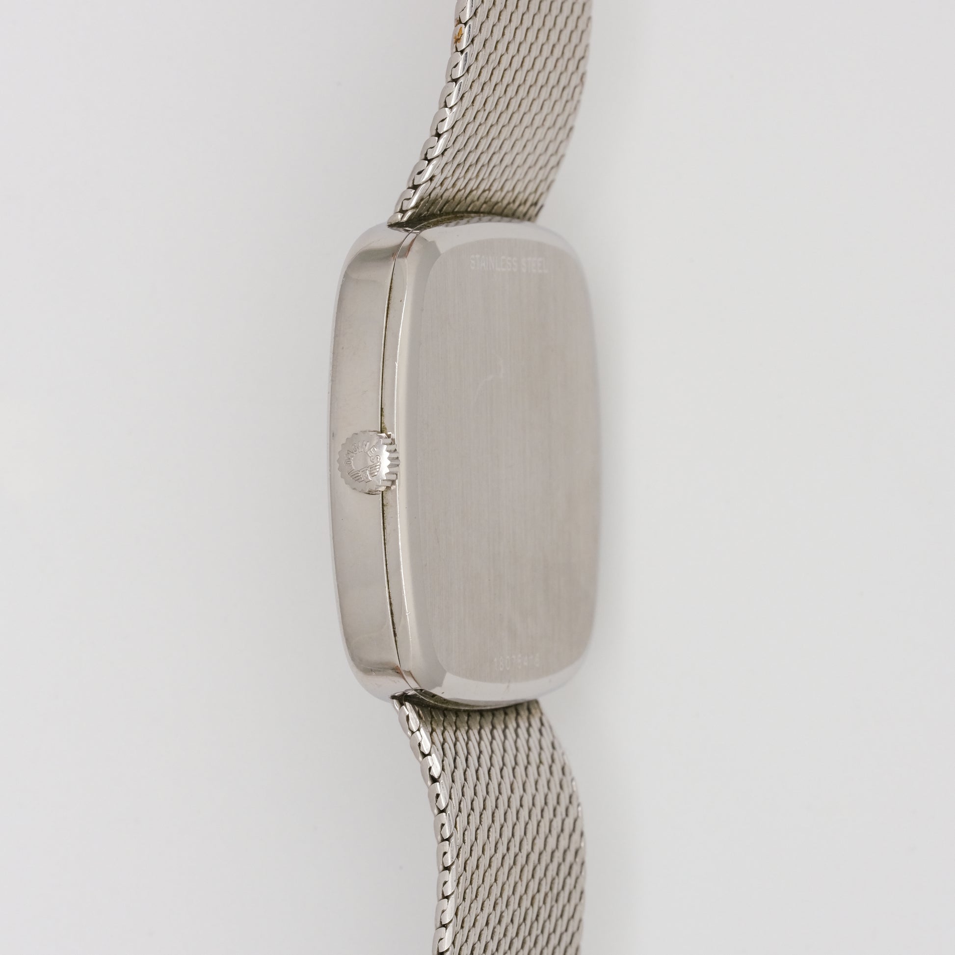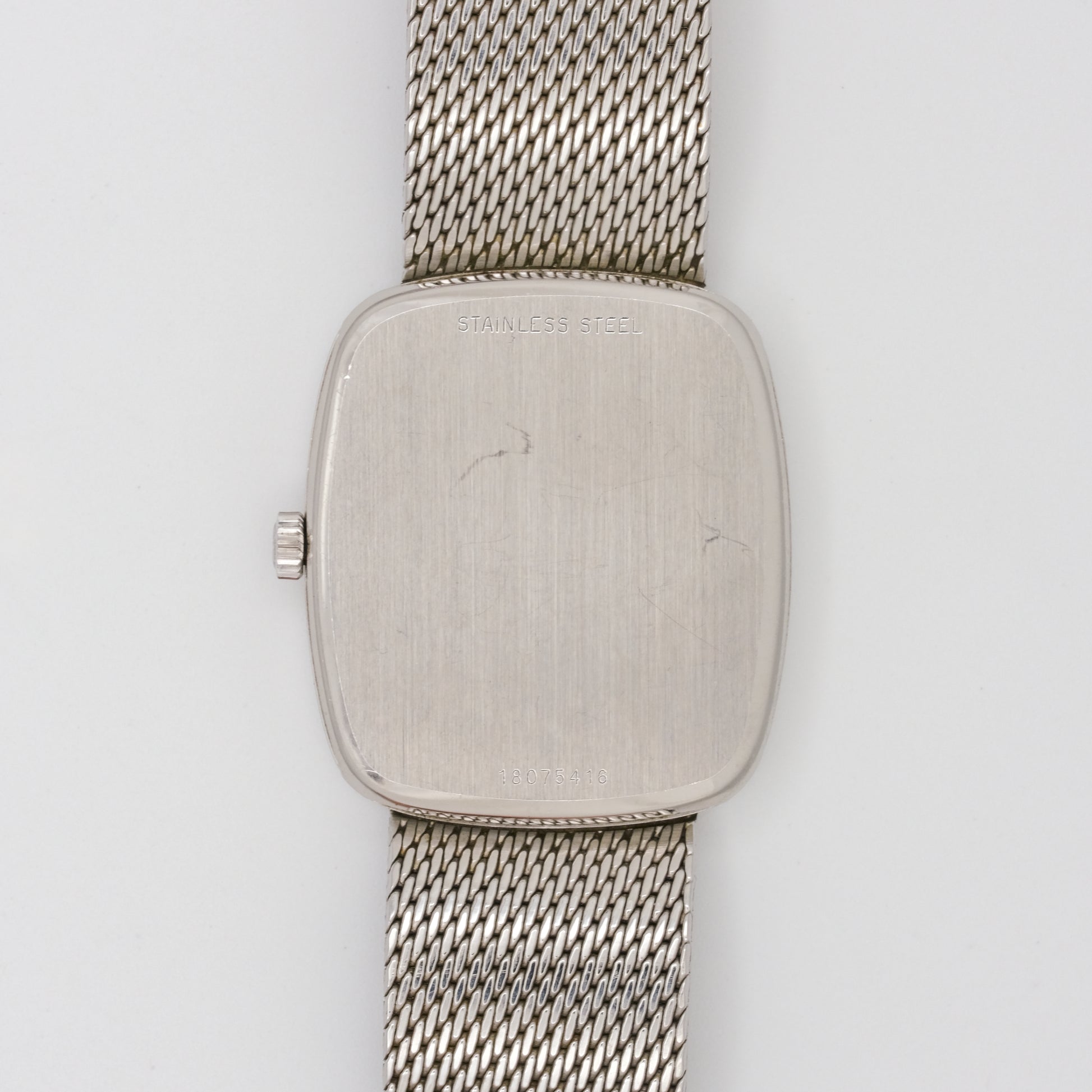 - Case: in good condition overall. The cushion-shaped case has a smooth, polished finish with no visible major scratches or dents. There are some minor signs of wear consistent with normal use, particularly on the edges and corners, but nothing significant.