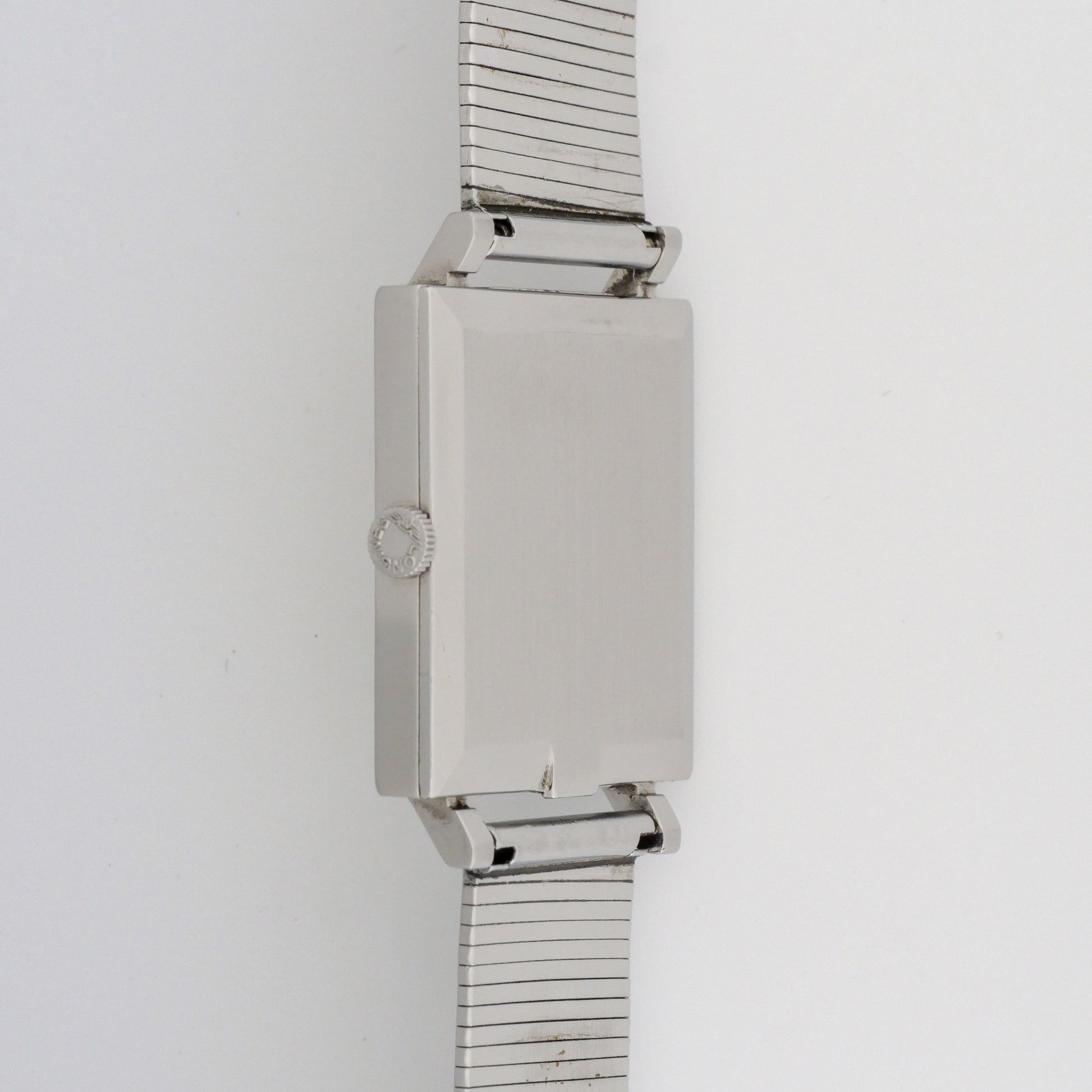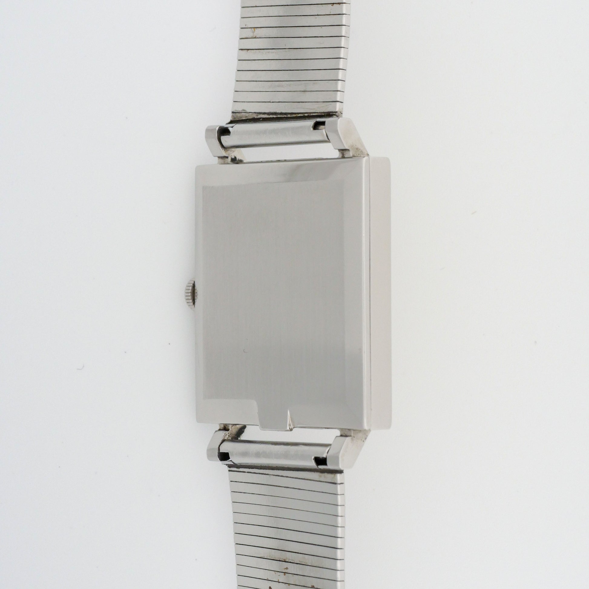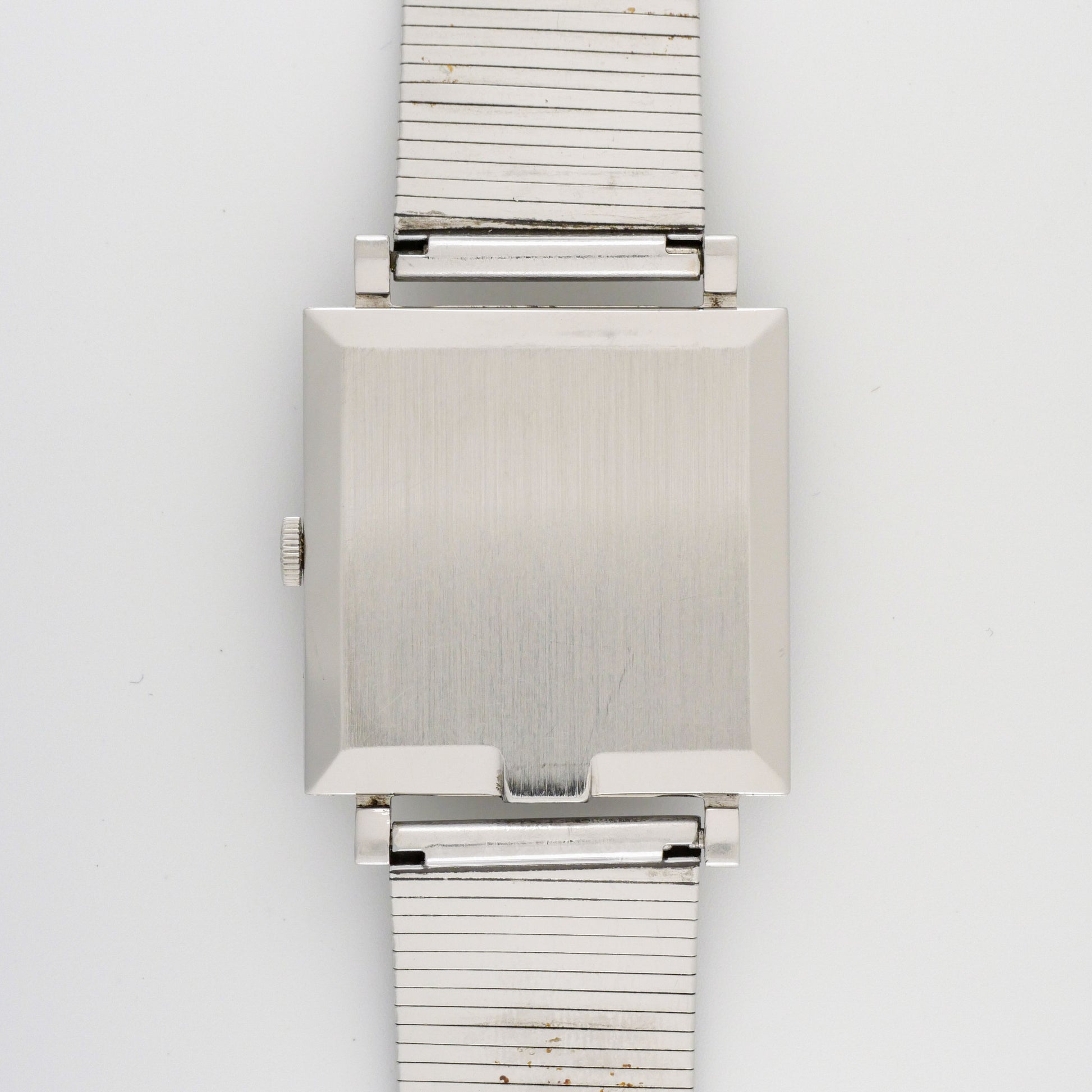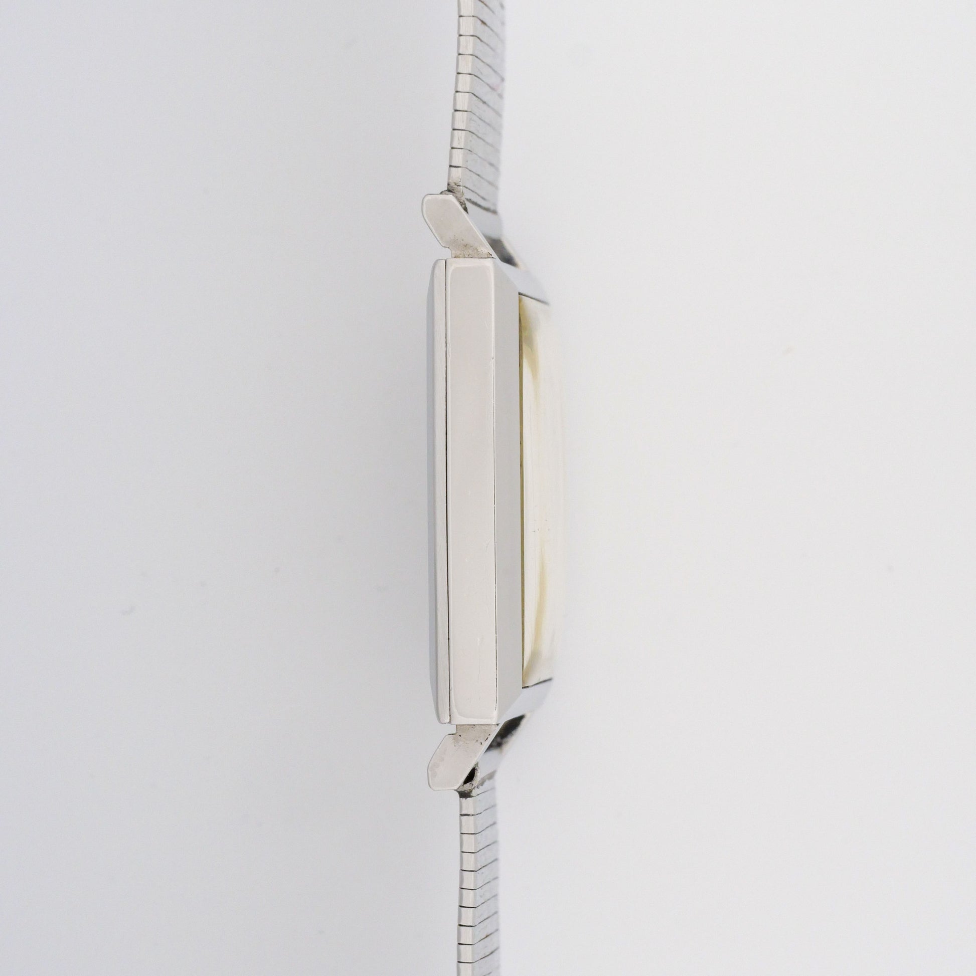 - Case: shows moderate aging with light wear on back and sides. Sharp edges and corners remain well-defined. Textured mesh bracelet displays patina with darkening in grooves. Honest vintage wear throughout.