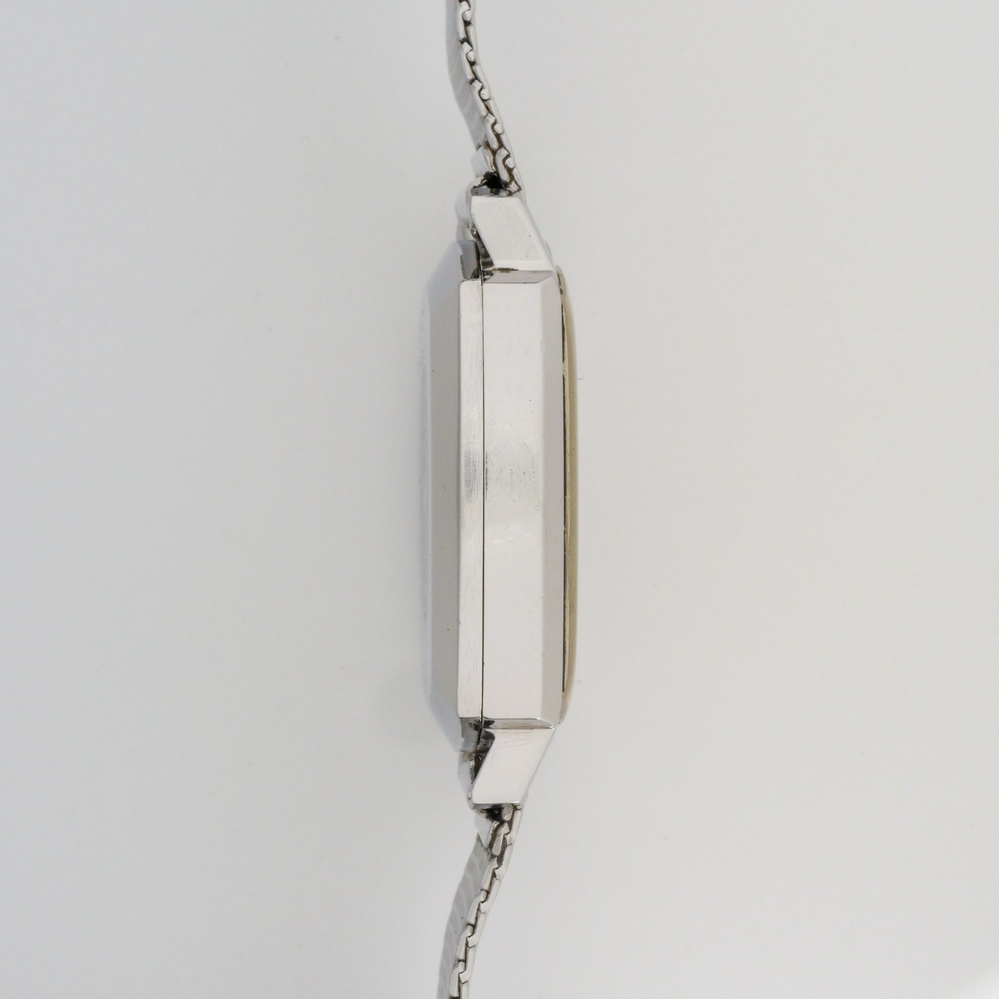 - Case: shows moderate signs of wear consistent with age. The edges and lugs retain their original crisp geometry, though there are light surface scratches visible on the case sides. The case back has some minor scratches but no deep marks or damage.