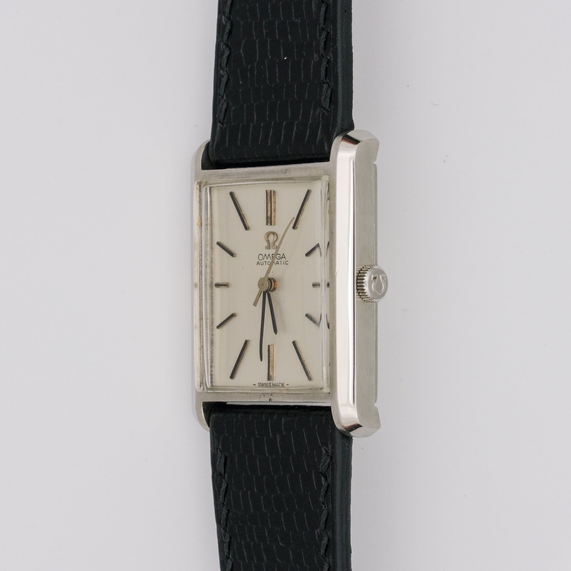 - Dial: in very good condition, no visible discoloration, staining, or damage to the dial surface. The Omega logo and "Automatic" text are clearly legible. The hour and minute hands are in good shape.