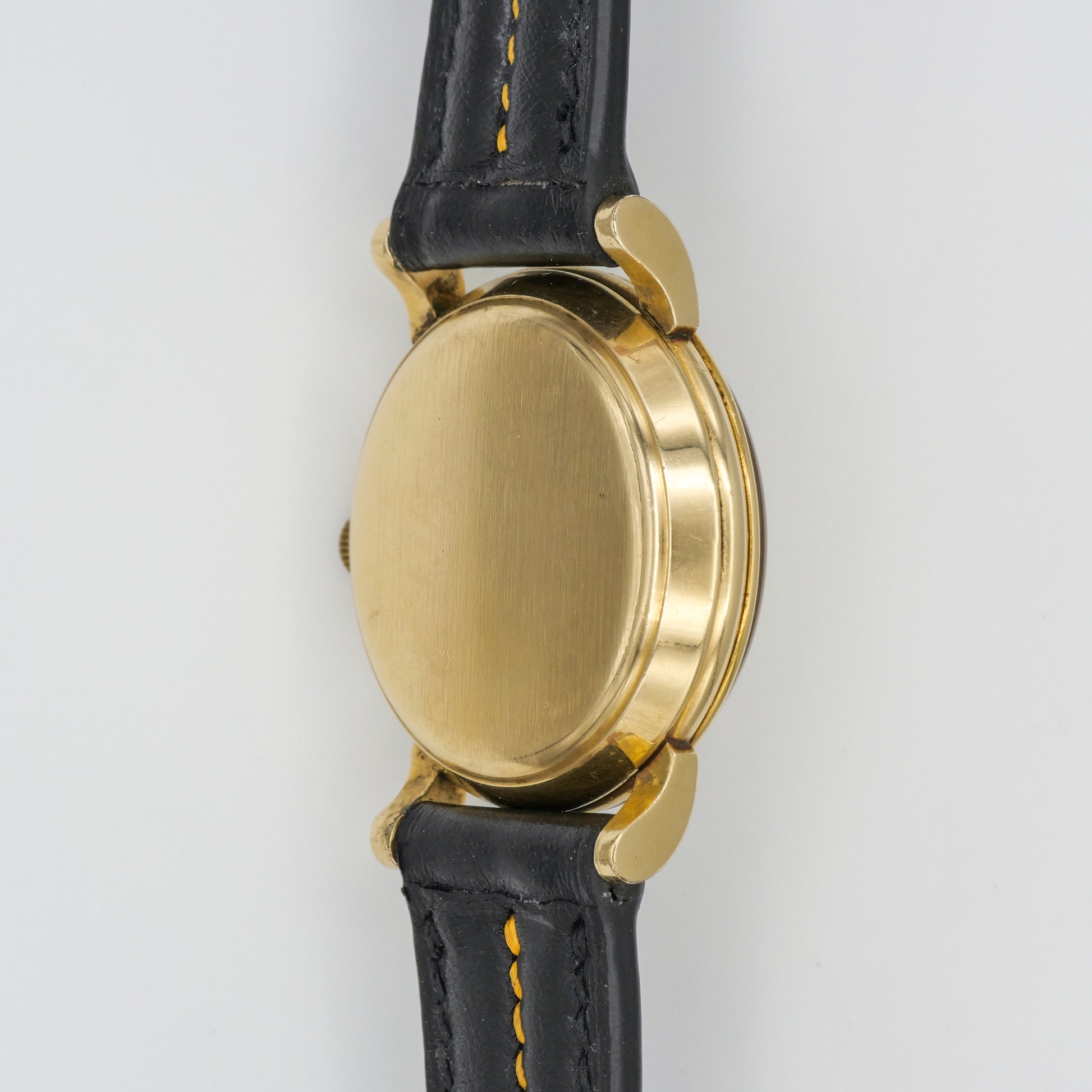 - The dial has developed an attractive warm aged patina over time, but there is noticeable spotting and discoloration present on the dial surface.
