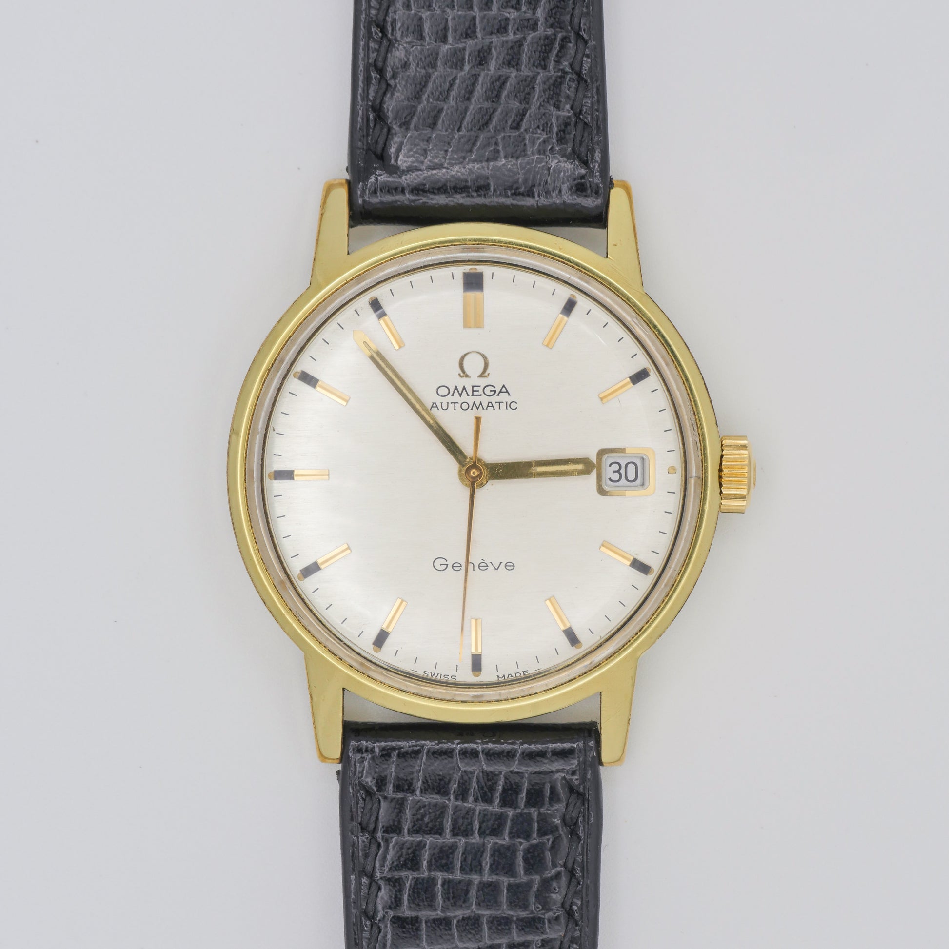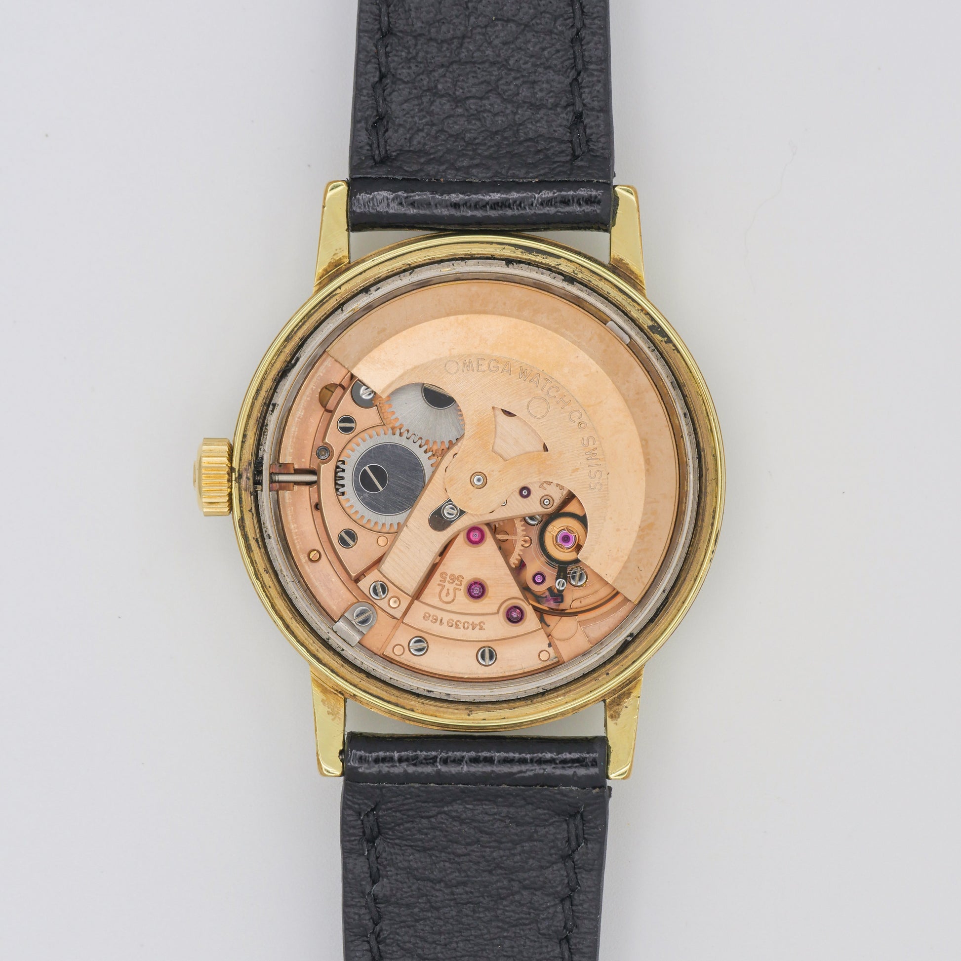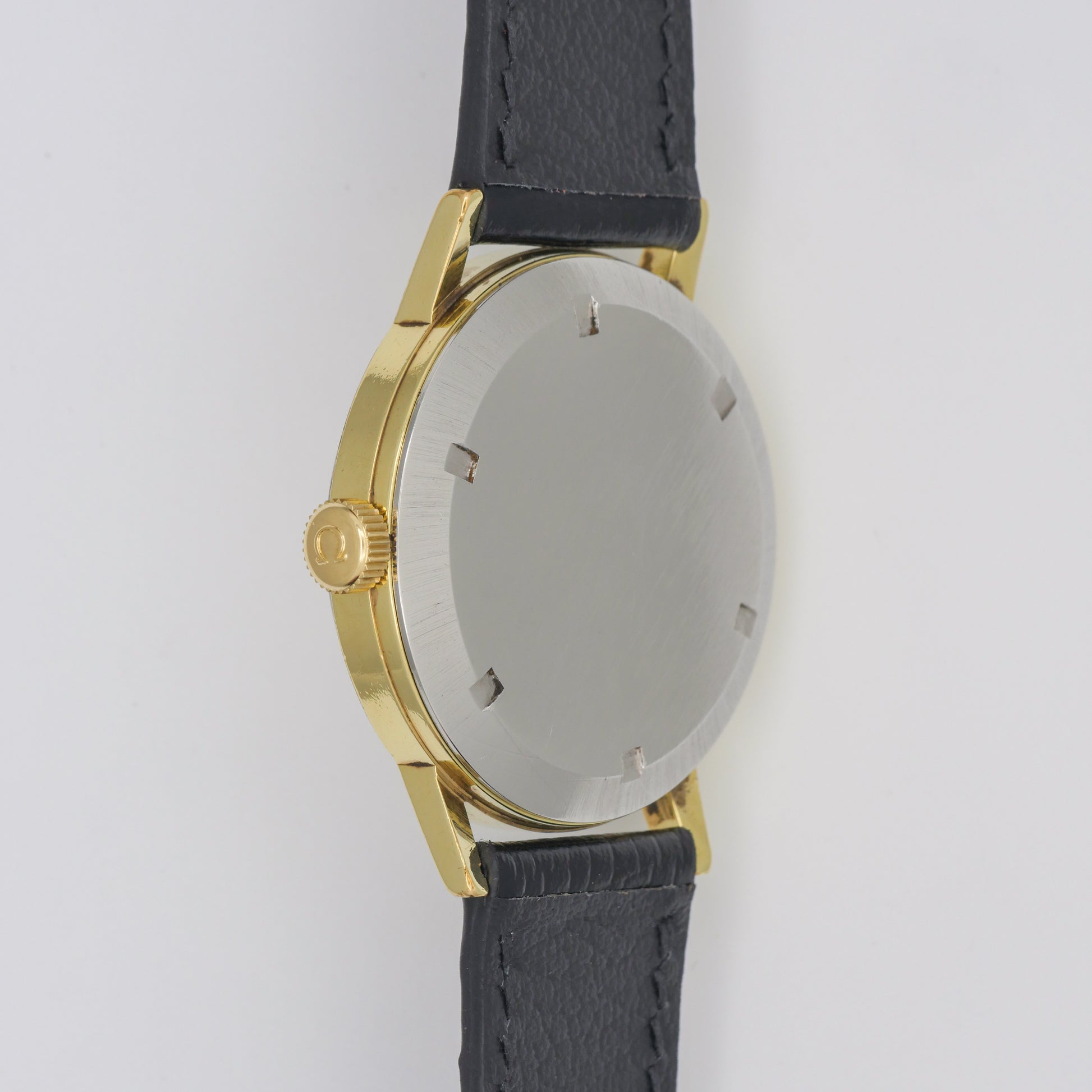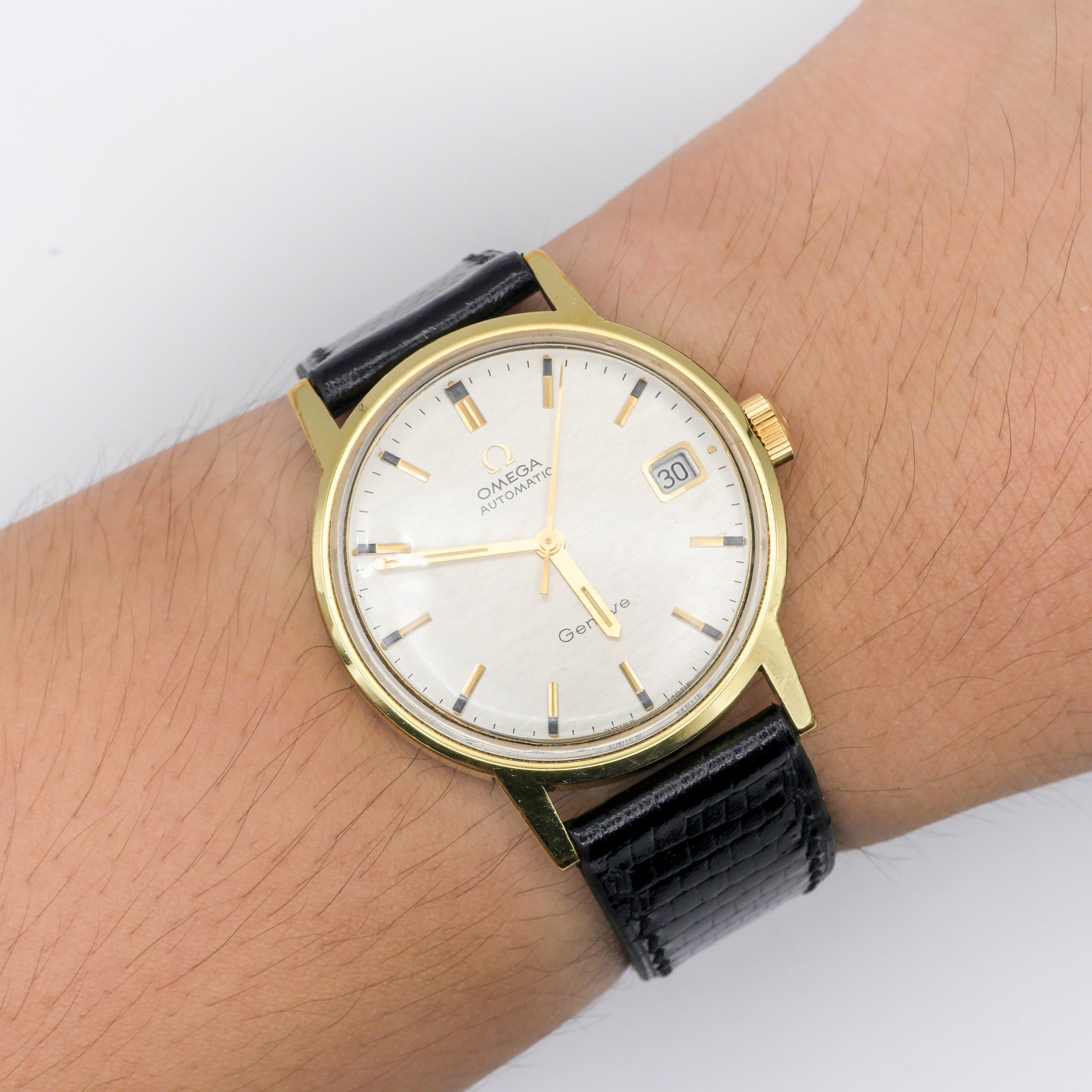 - Dial: in very good condition, no visible discoloration or spotting. The hour markers and Omega logo are crisp and well-preserved. The date window at 3 o'clock is clear. There are no obvious signs of damage or restoration to the dial.
