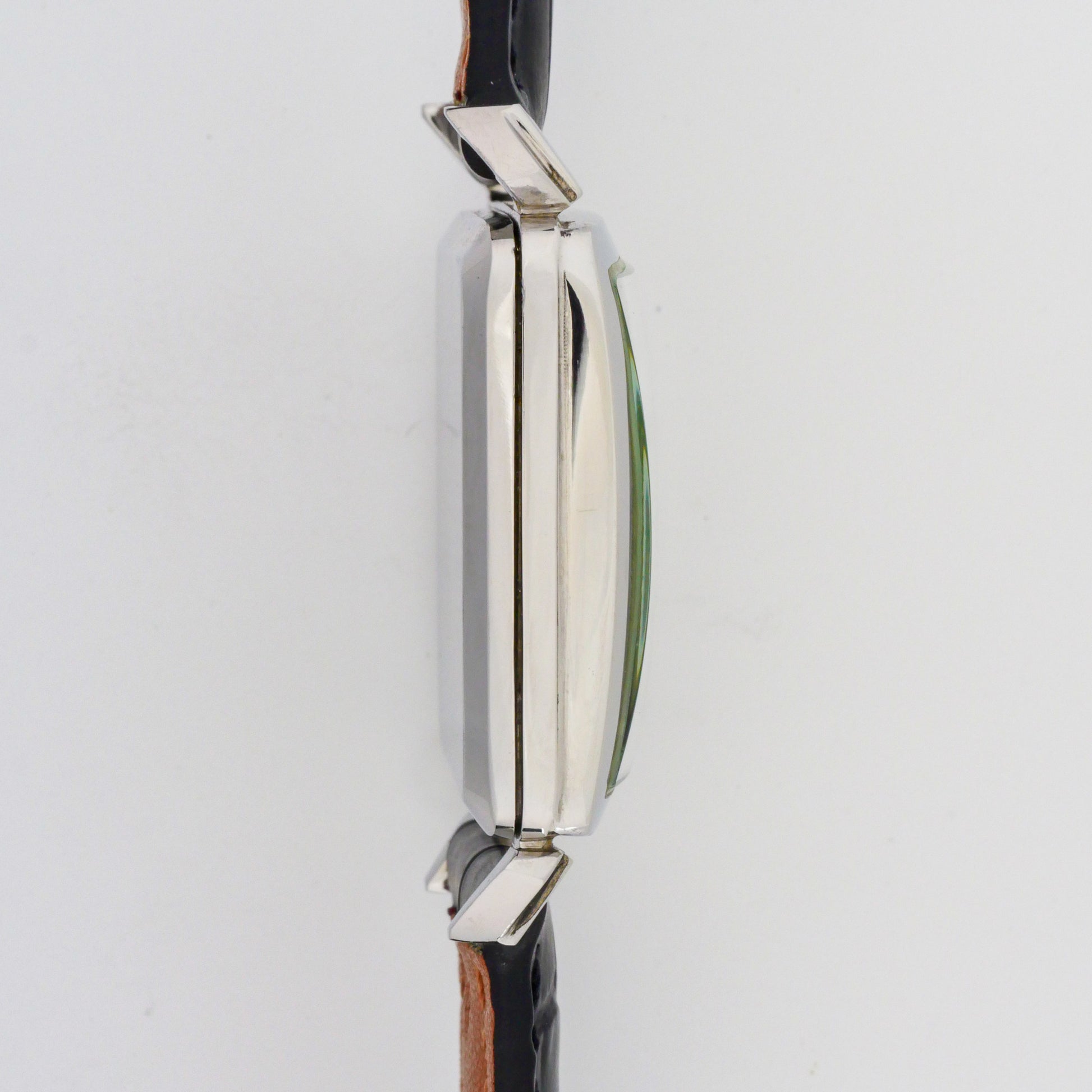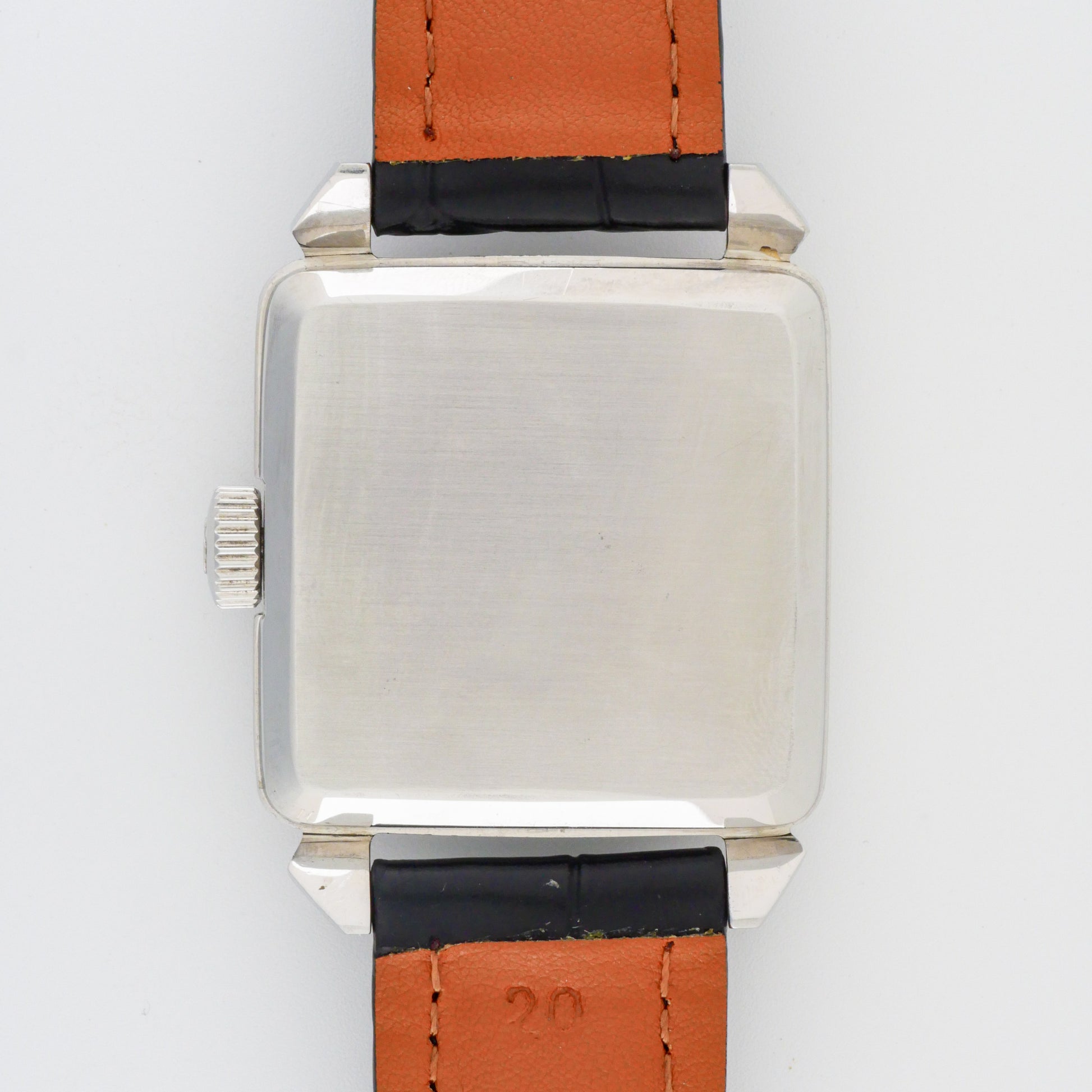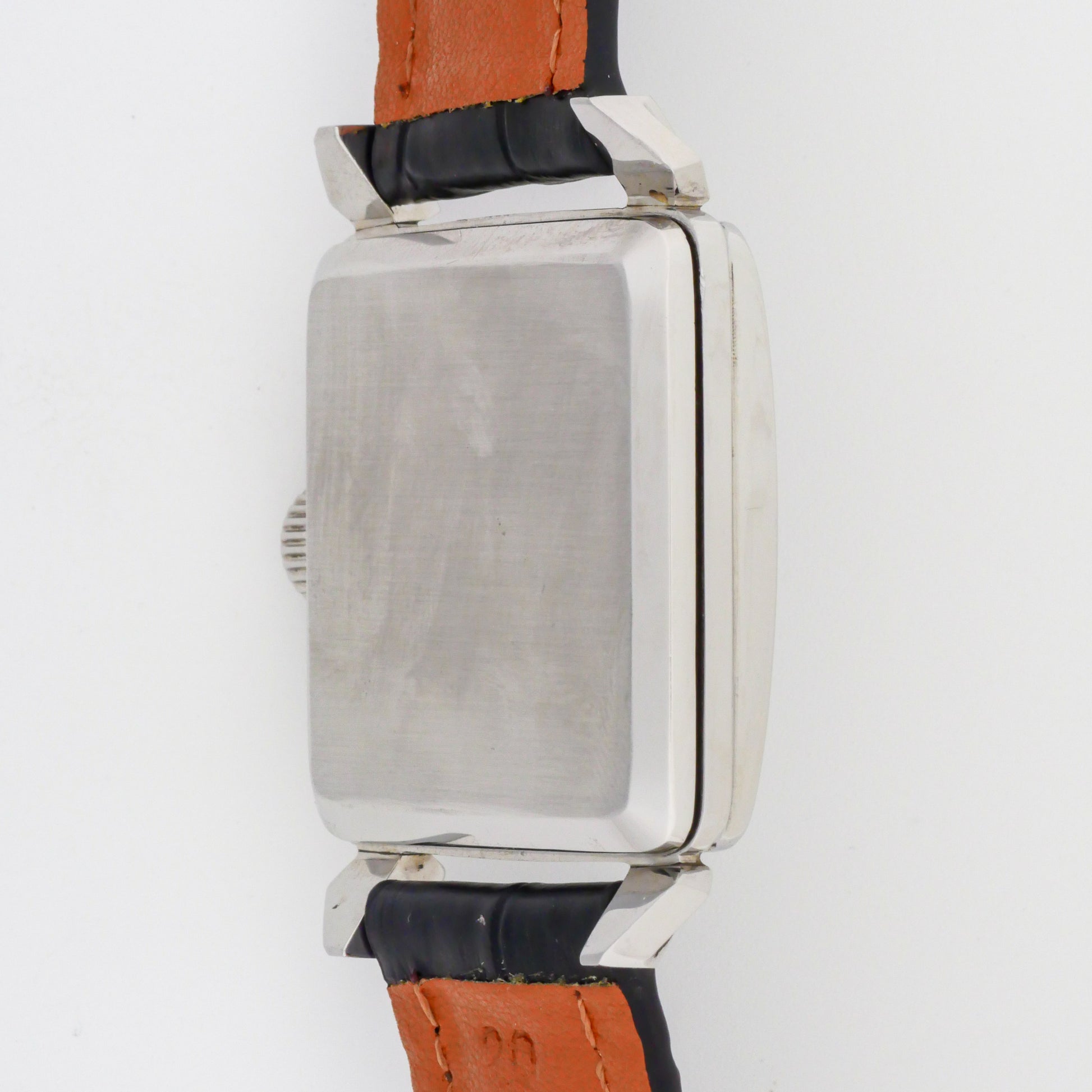 - Case: shows signs of wear consistent with age and use. There are visible surface scratches and light polishing marks on the case sides and lugs. The distinctive faceted lugs retain their original geometric design despite the wear.