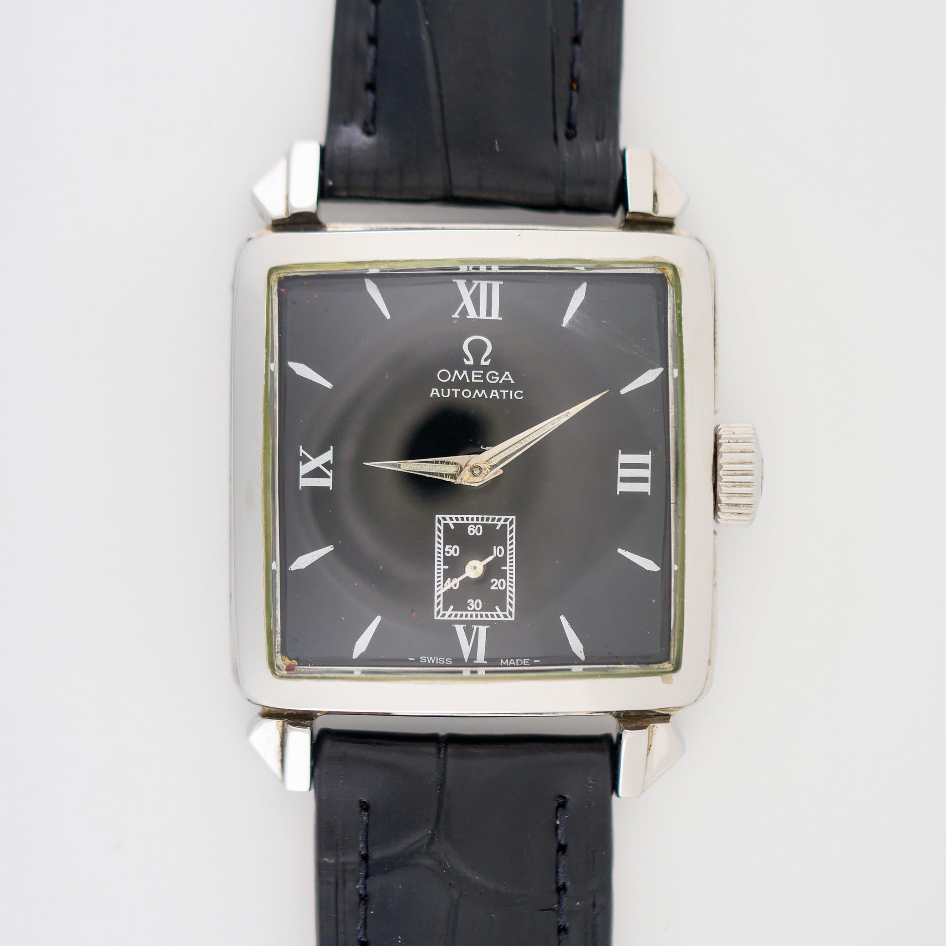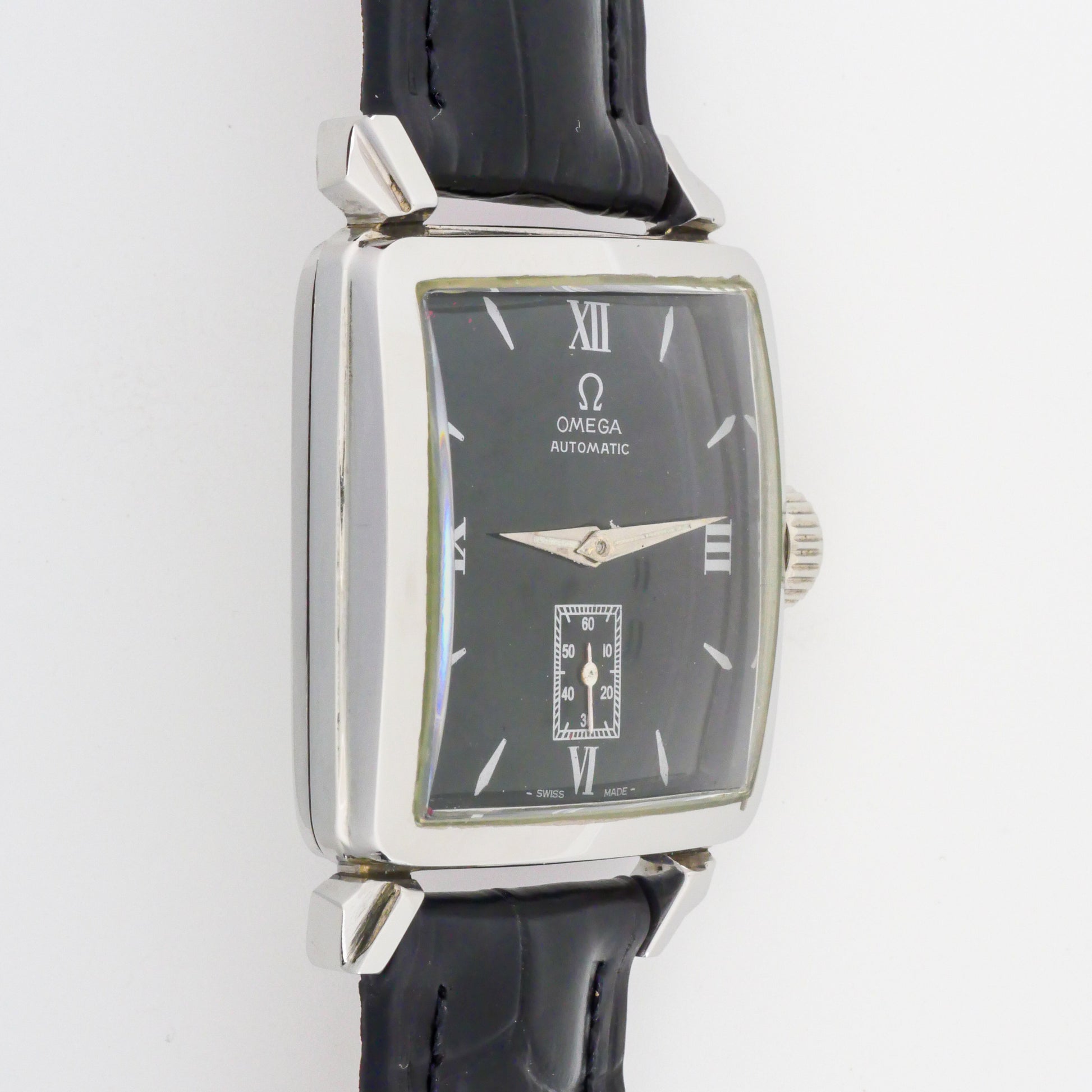- All components are genuine Omega and original to the watch, except the replaced strap and buckle. The original dial has been repainted.