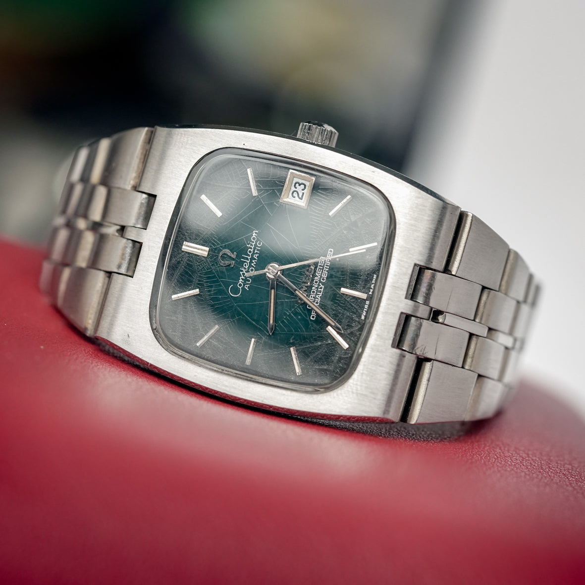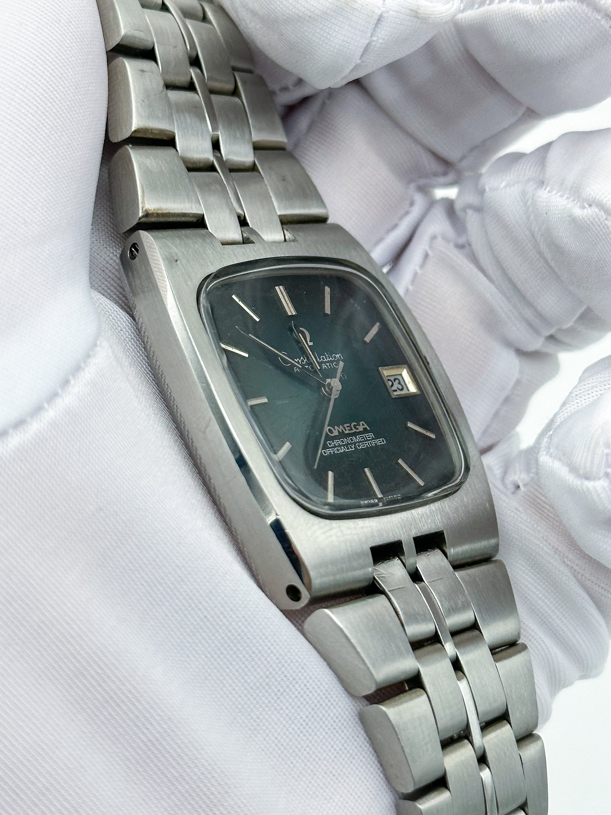 OMEGA CONSTELLATION AUTOMATIC CHRONOMETER DATE SPIDER'S WEB DARK GREEN DIAL REF. 168.059