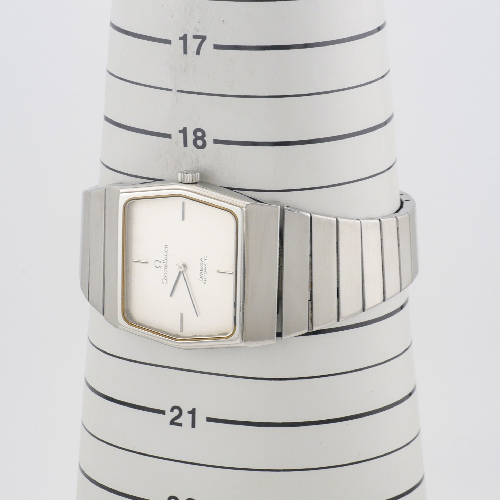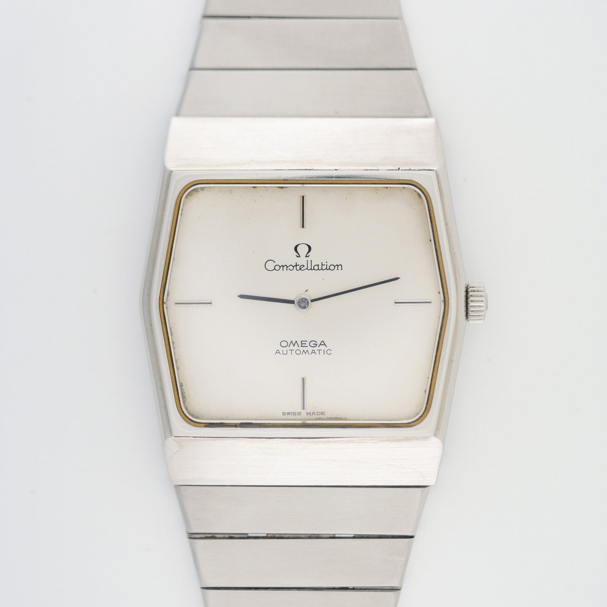 - Dial: is in good condition with minimal visible aging or damage. The hour markers and hands maintain their original appearance without significant discoloration. The Constellation logo and Omega branding remain clear and legible. The dial surface shows some minor aging characteristics typical of vintage pieces but overall presents well.