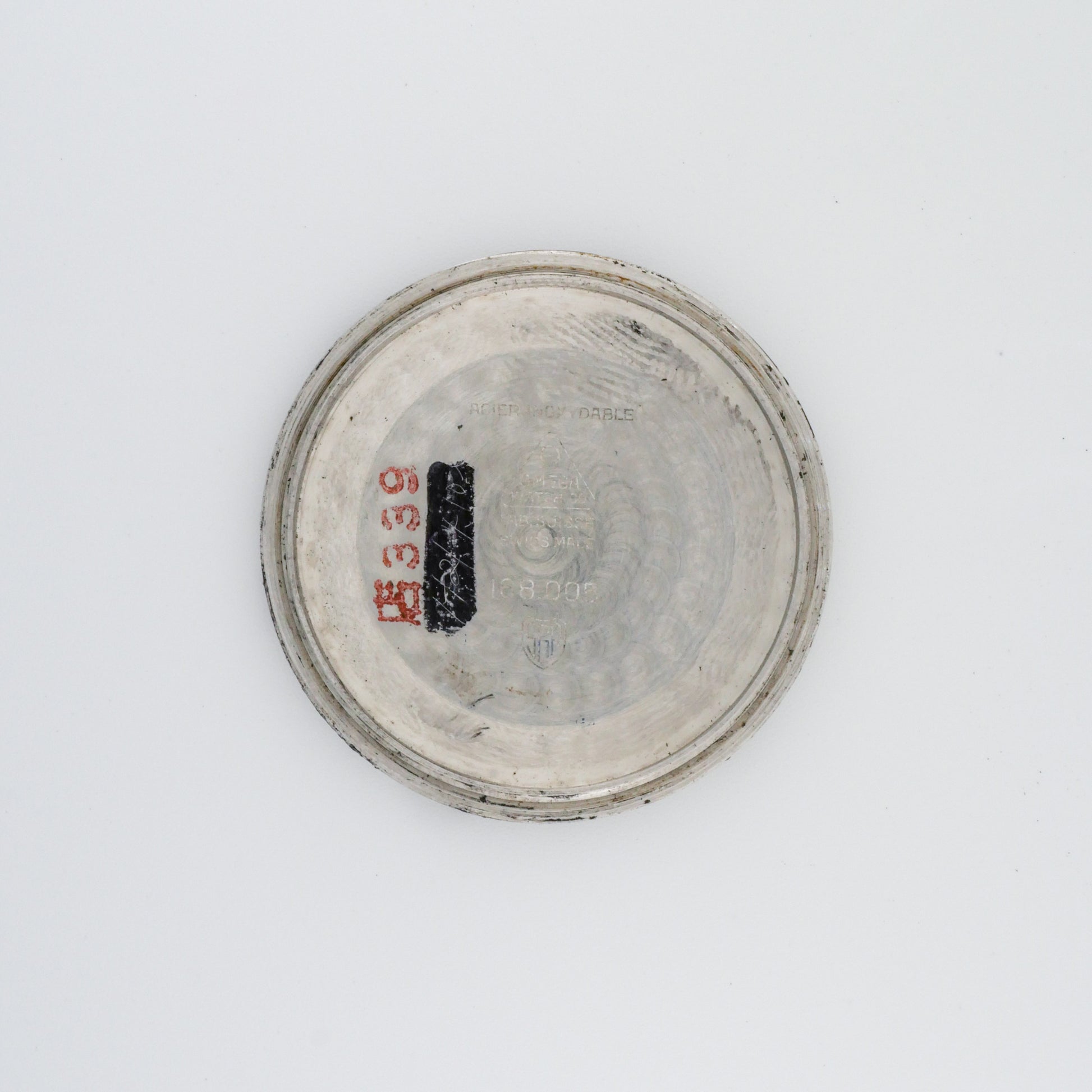 - Case: displays moderate wear consistent with its age, showing surface scratches and light scuffing across the lugs, bezel edges, and case sides. The distinctive observatory medallion on the caseback remains intact but exhibits noticeable surface wear.