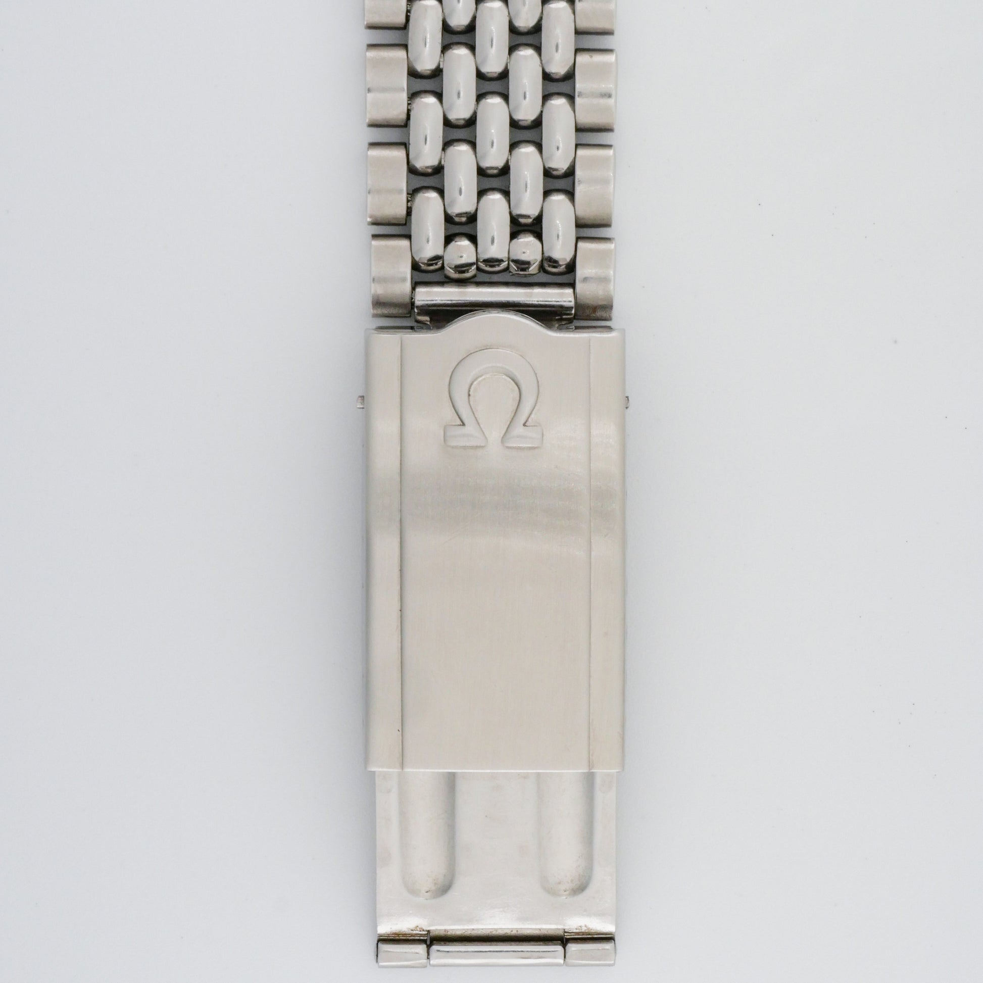 - Dial: exhibits an attractive, even patina that has transformed the original white color to a warm champagne tone. All applied hour markers are present and well-preserved, maintaining their original finish. The Omega logo and texts remain clear and legible, though showing gentle aging consistent with the watch's vintage.