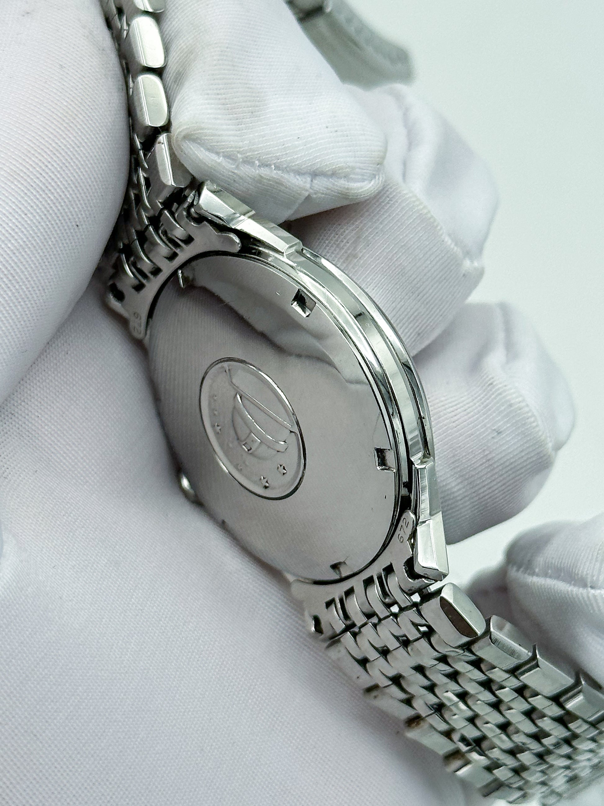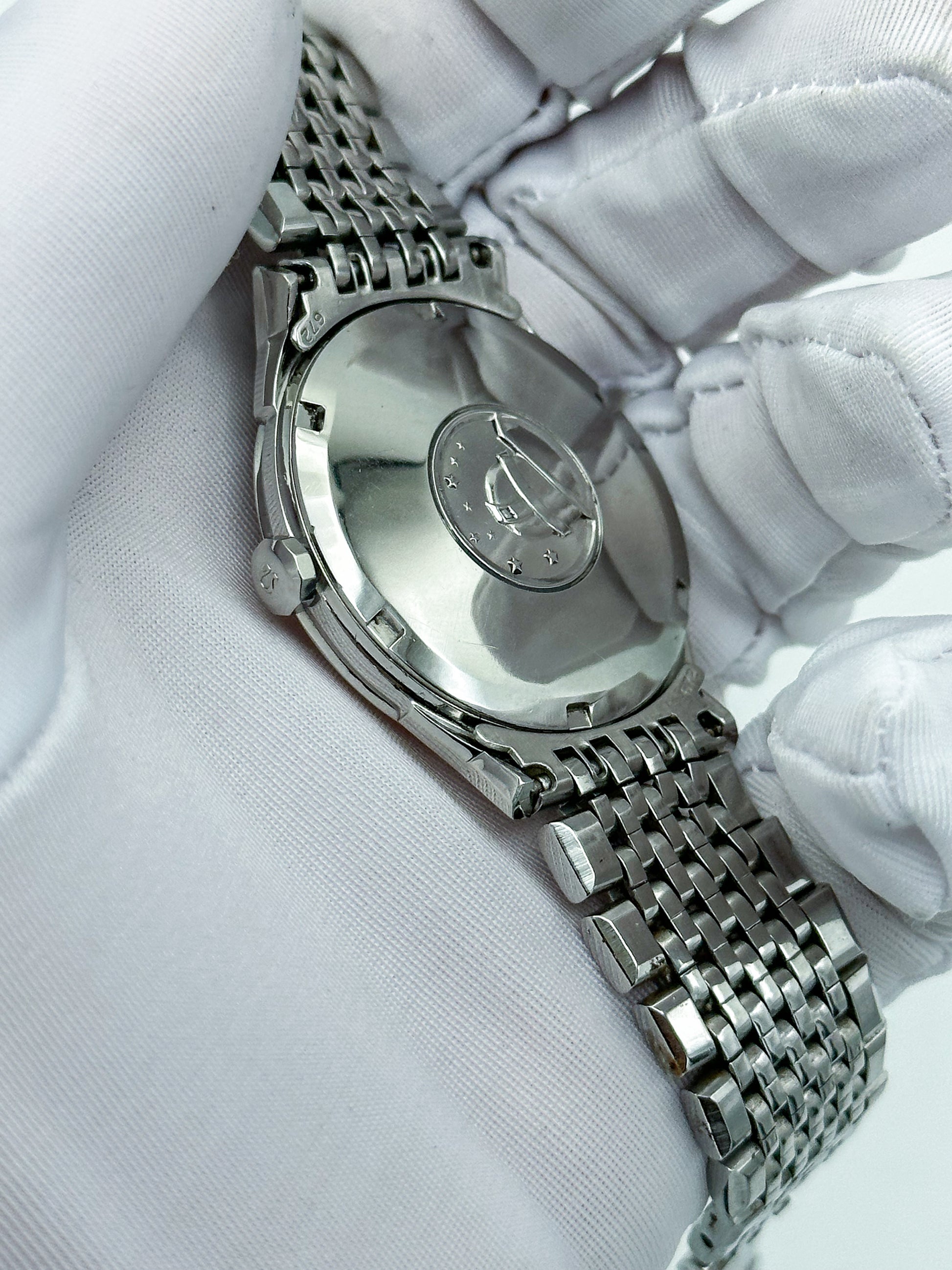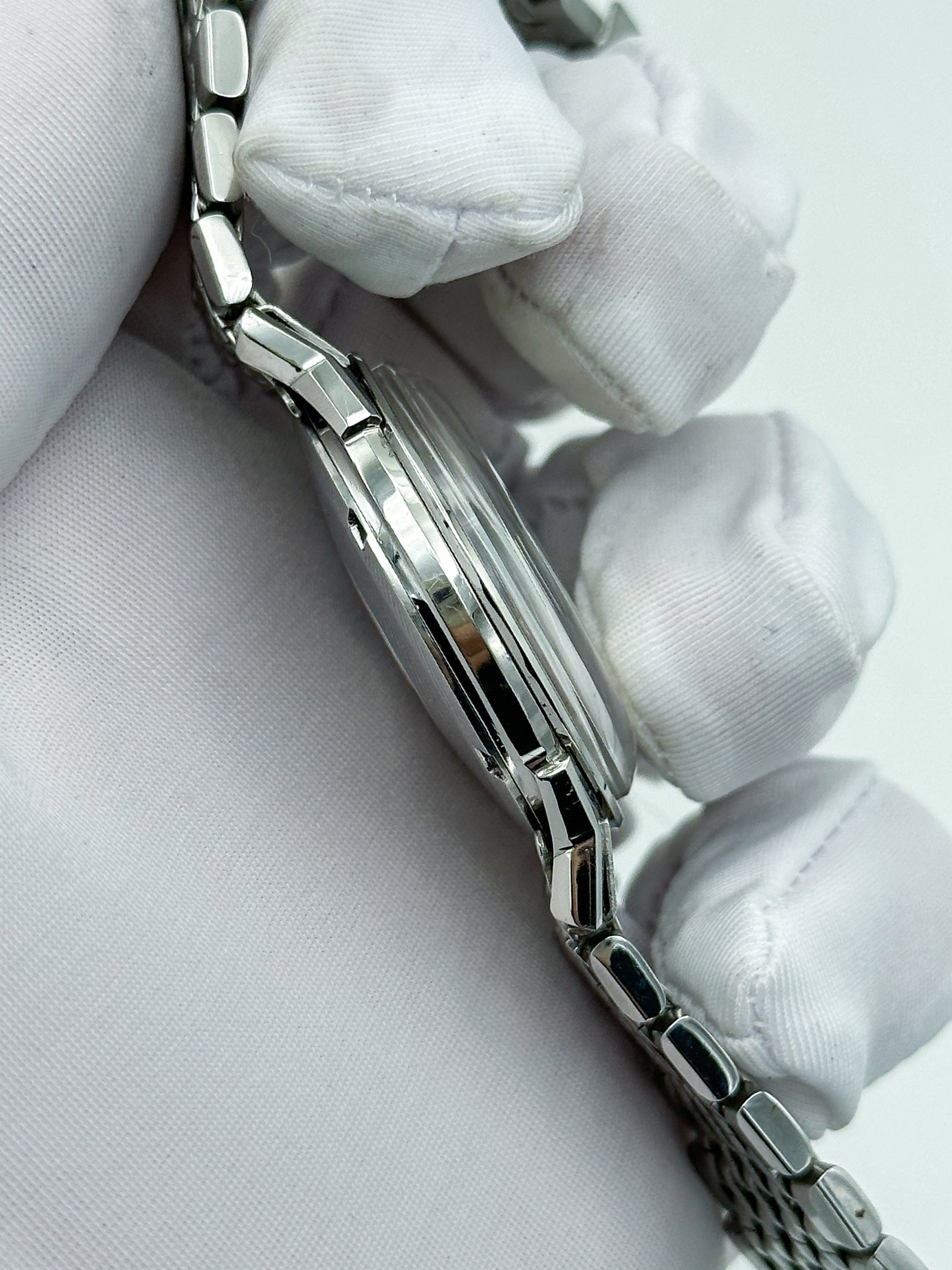 Points of Mention: Obvious small scratches on the stainless steel case and bracelet. The dial has slight grey spots all over.