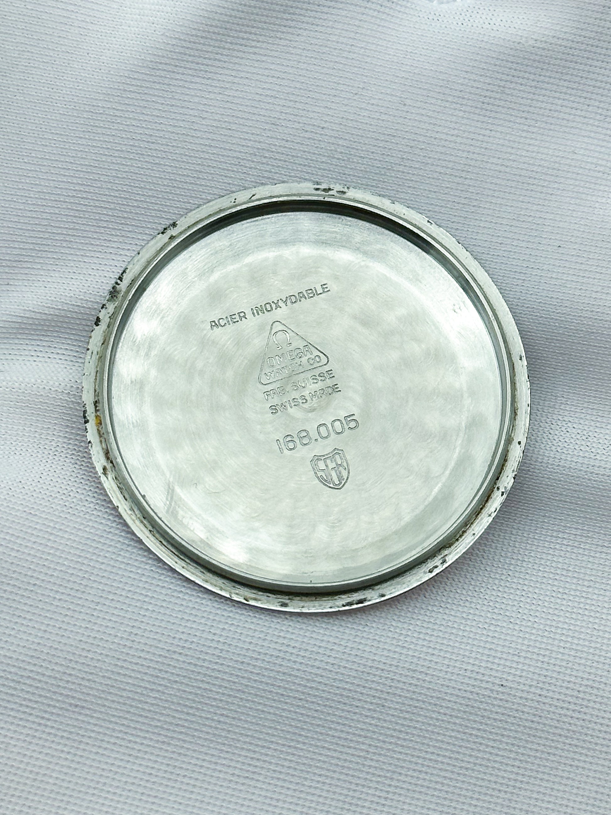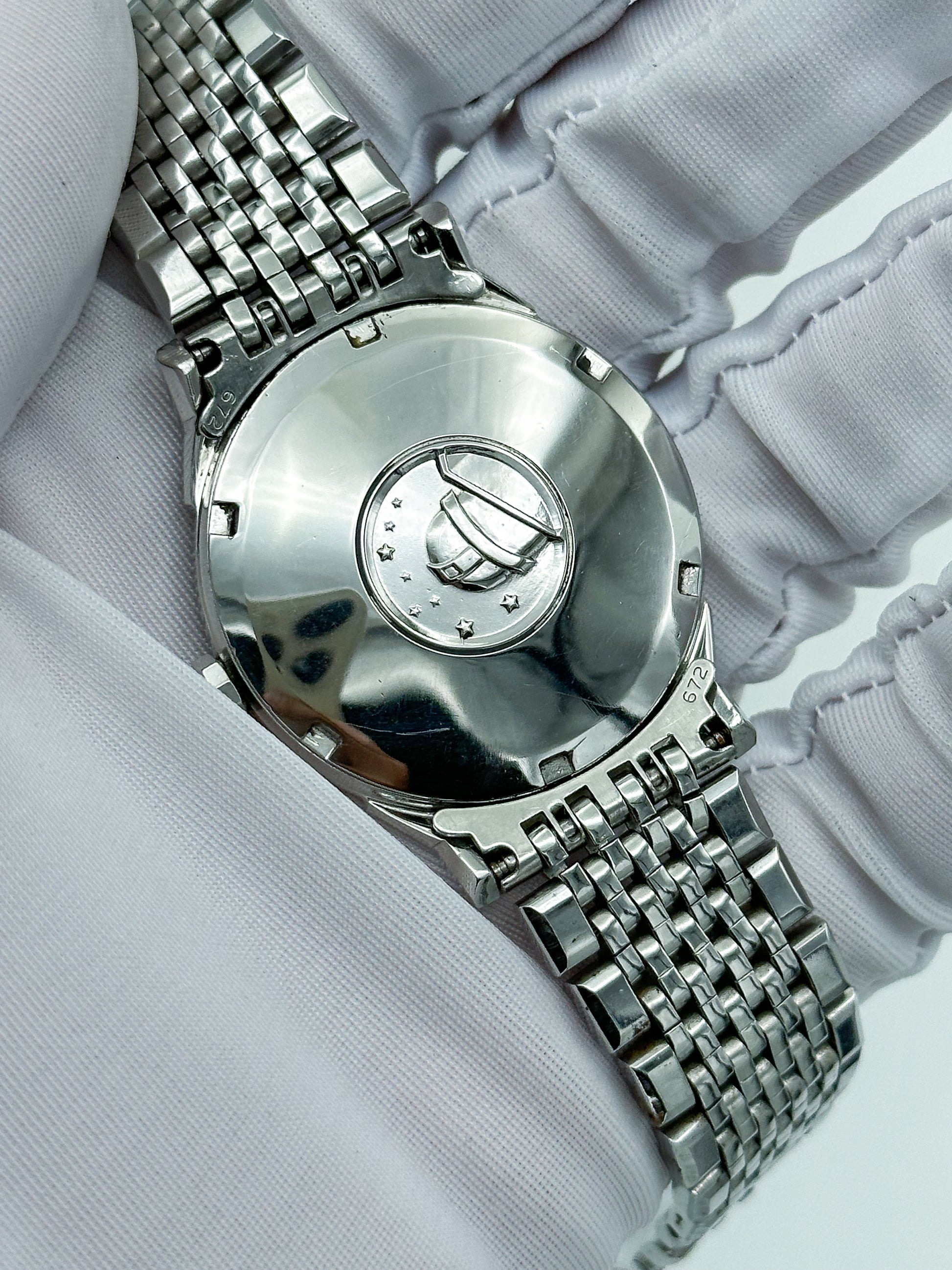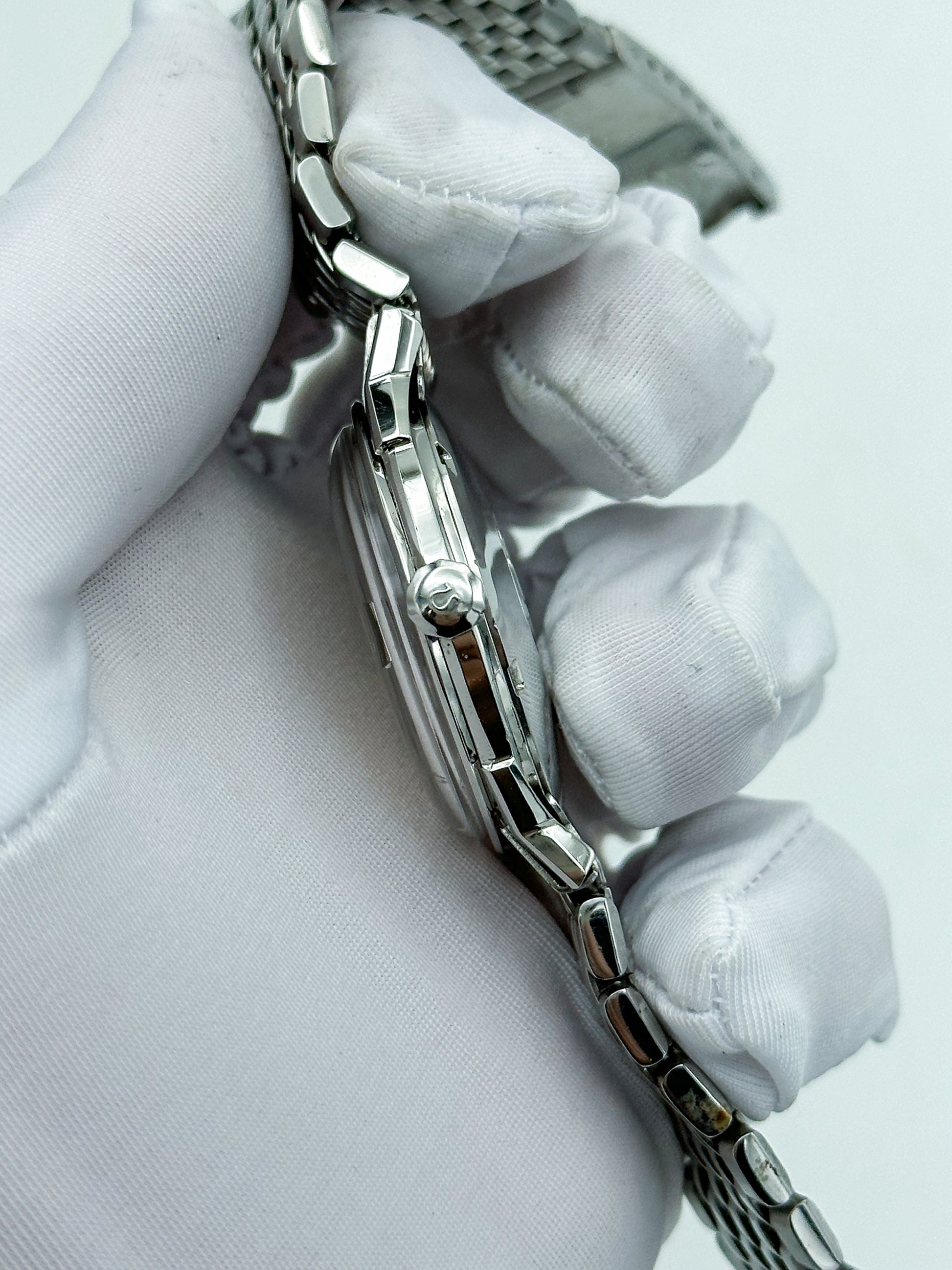 Points of Mention: Obvious small scratches on the stainless steel case and bracelet. The dial has slight grey spots all over.