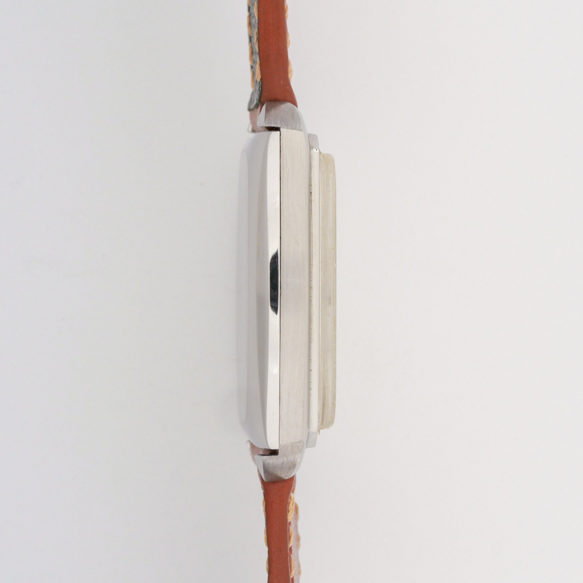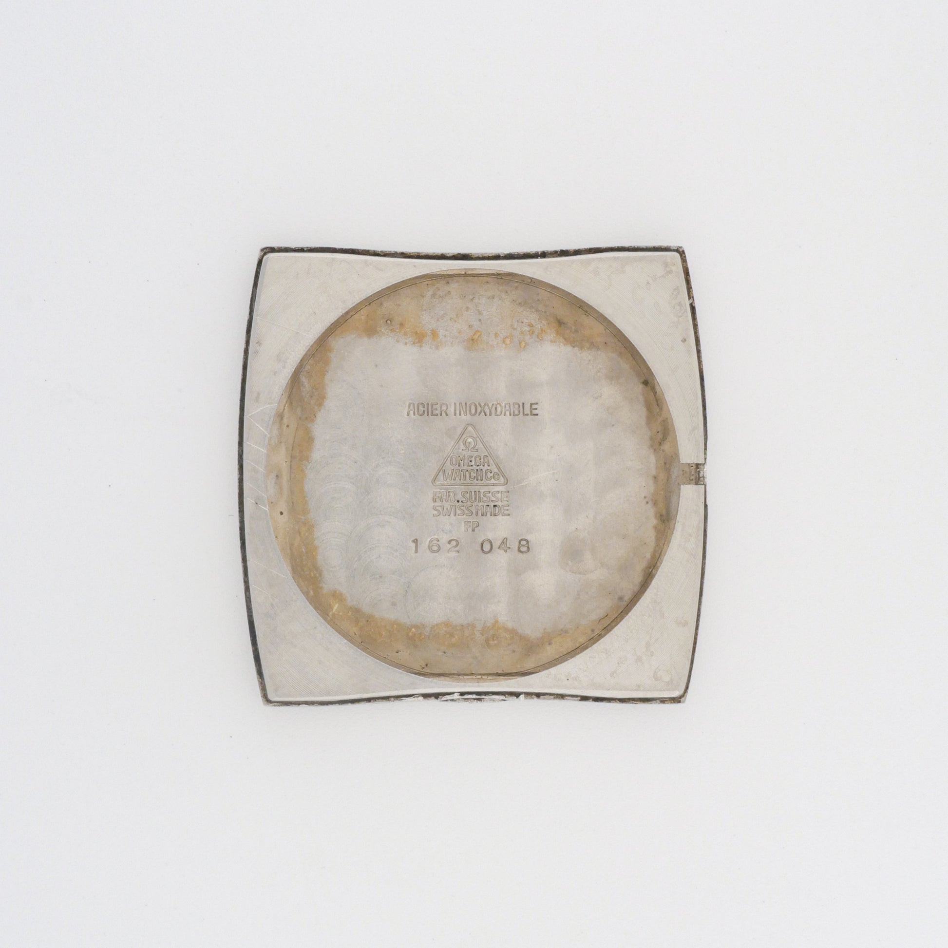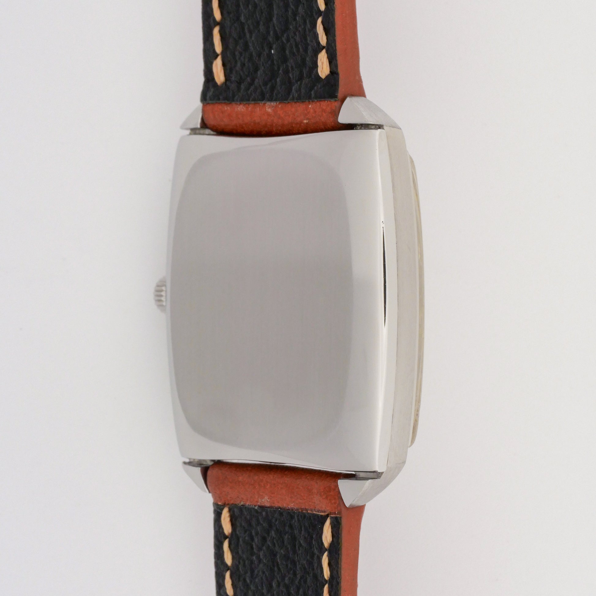 - Case: shows moderate signs of wear consistent with age. The cushion-shaped case retains its original polished finish, though there are visible light scratches and some wear marks on the edges and lugs. The case appears structurally sound with no major dings or deep scratches.