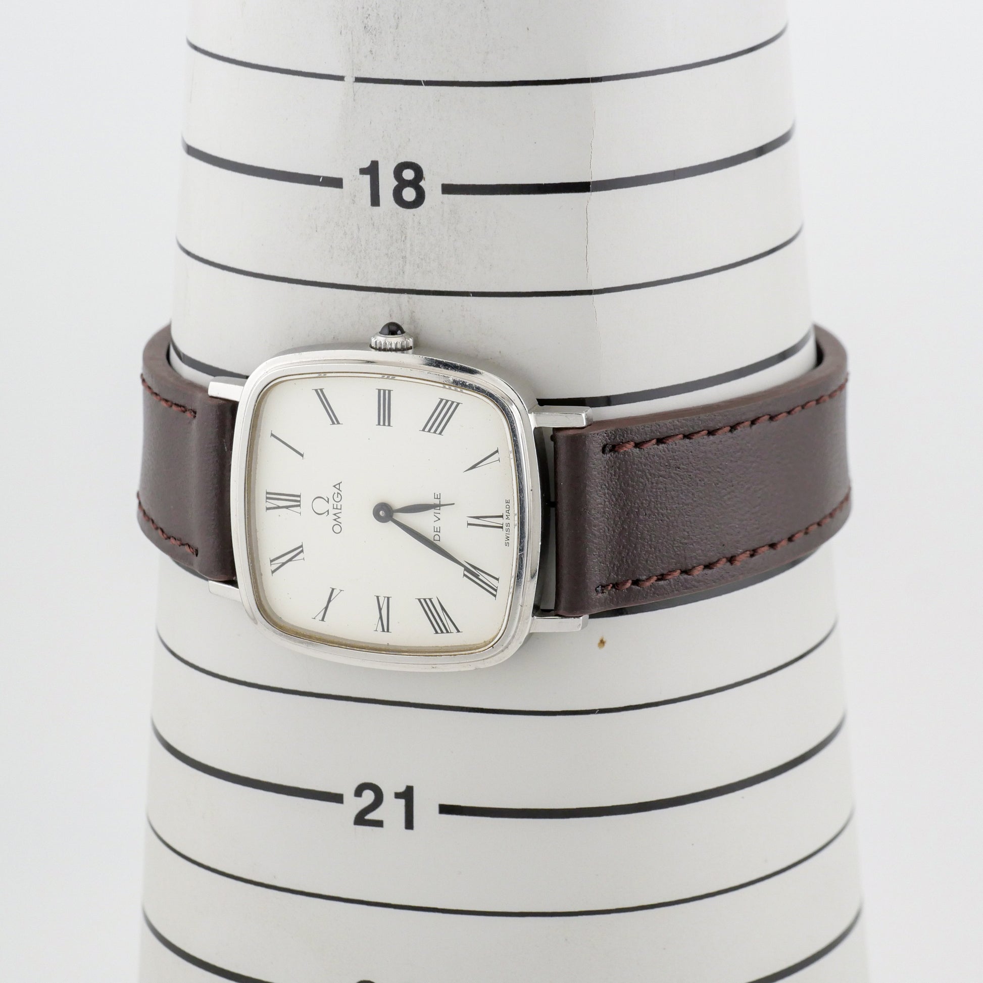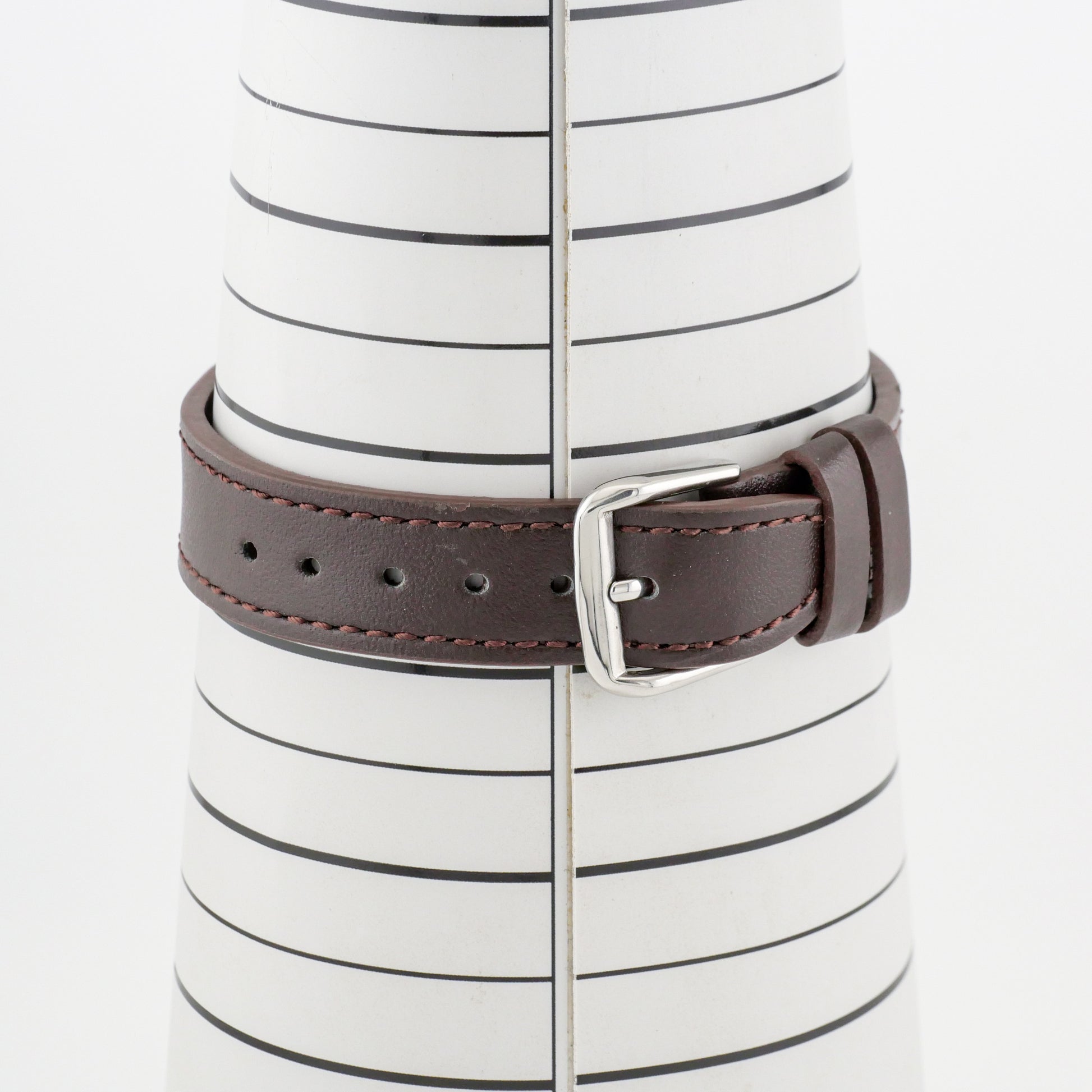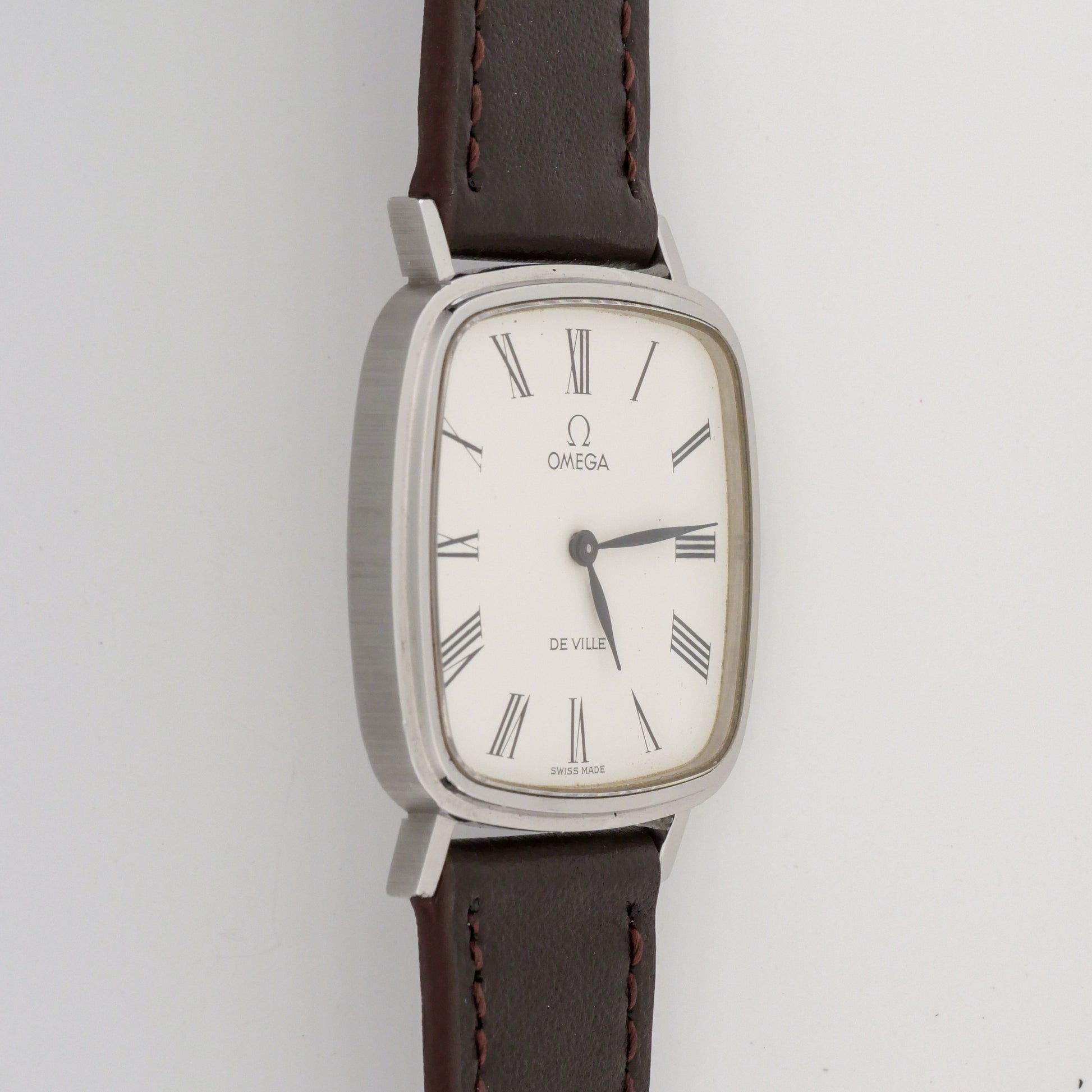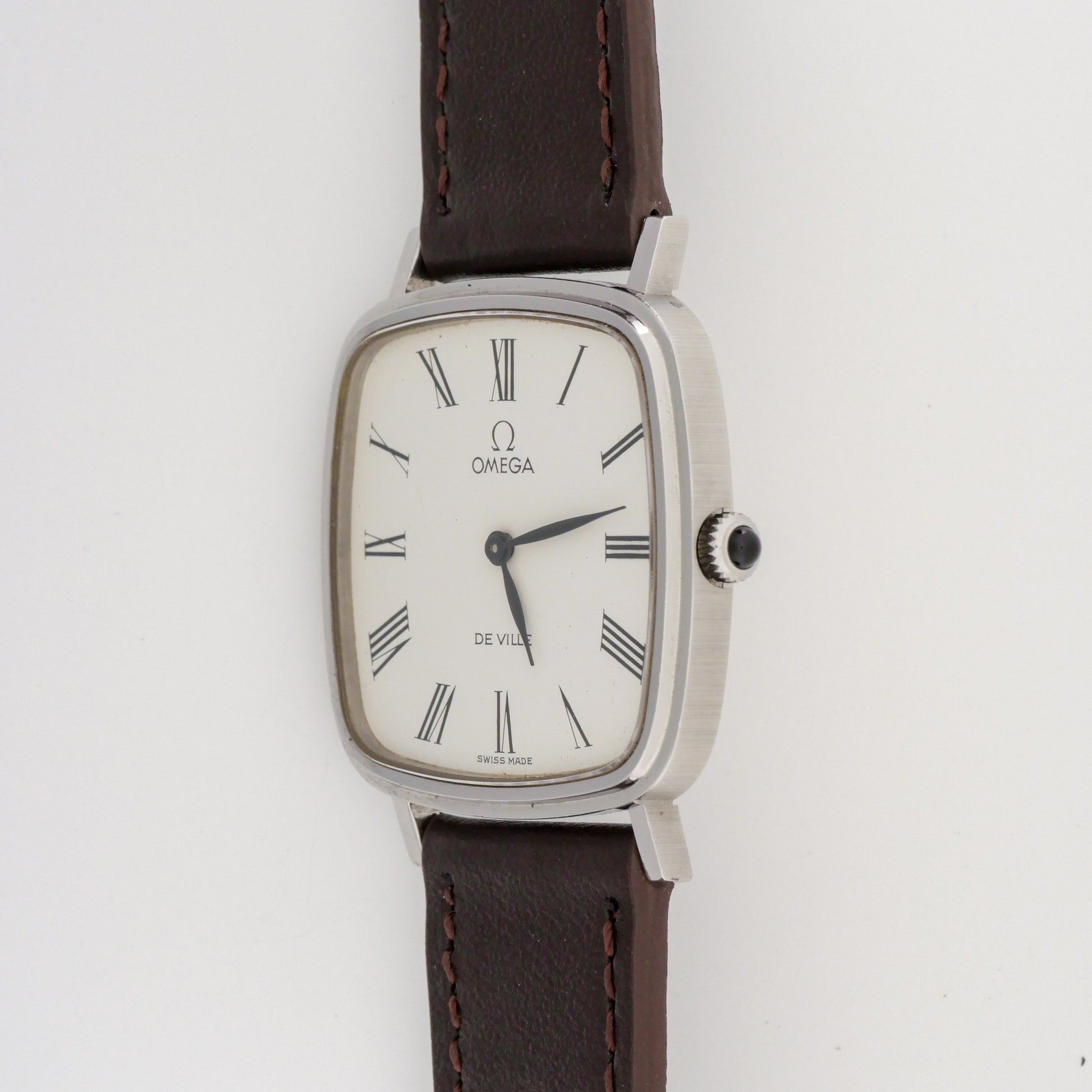 - Dial: displays age-related discoloration with a cream or ivory patina that's typical for vintage pieces. The Roman numeral markers and text remain clear and legible. There are some minor spots or marks visible on the dial surface, but no major damage, cracks, or significant staining.