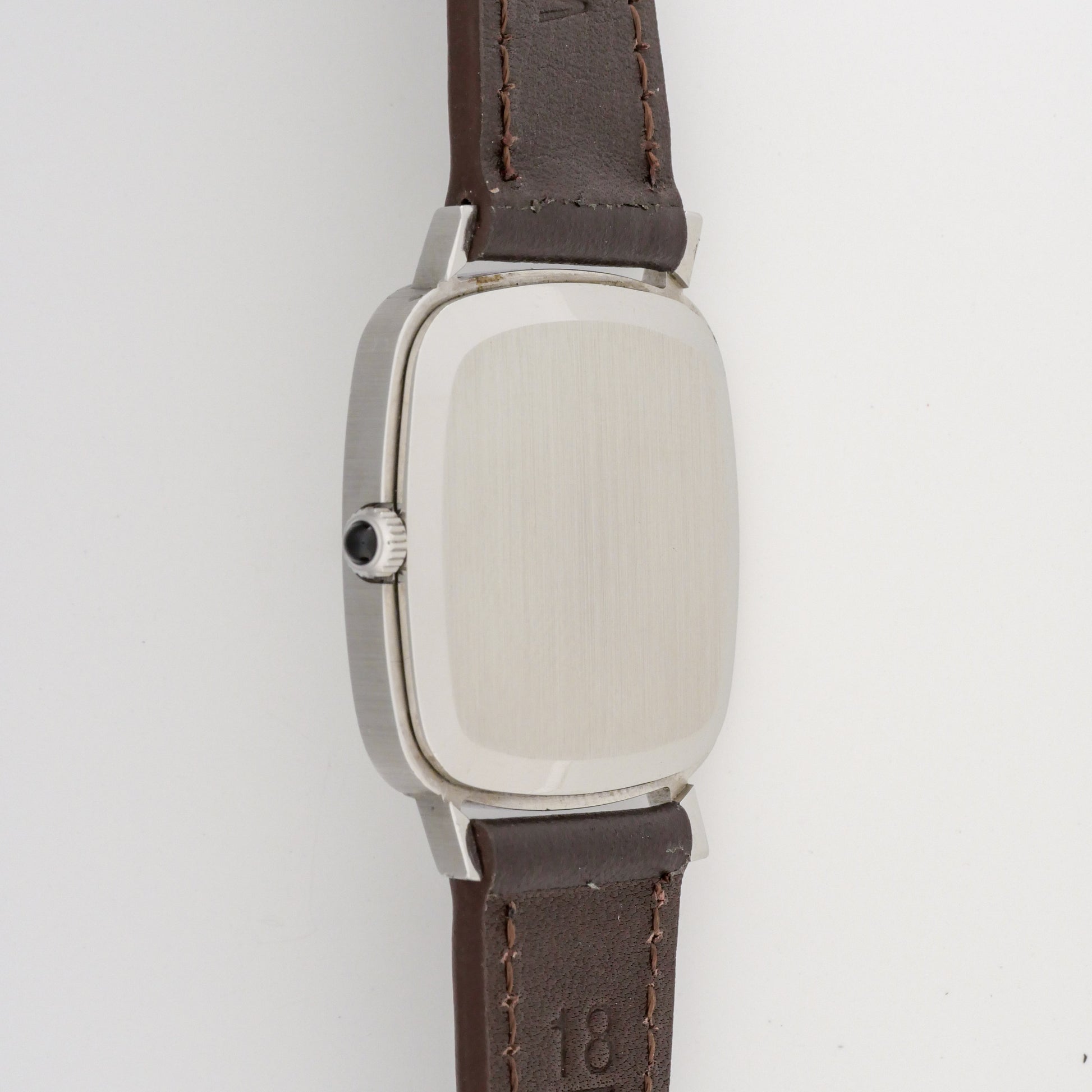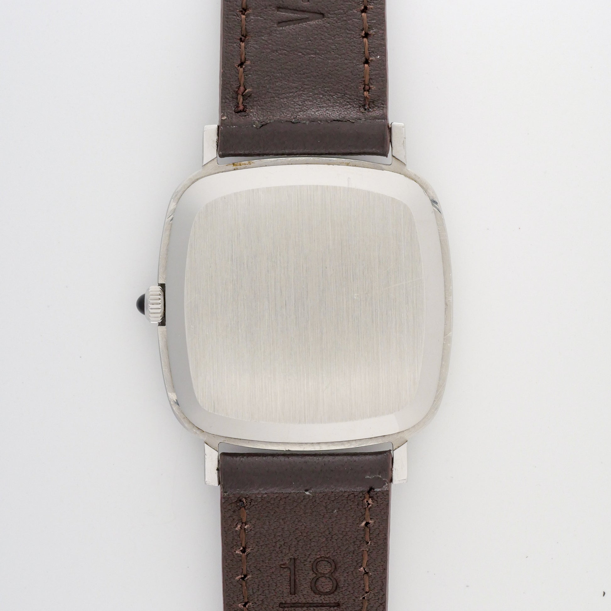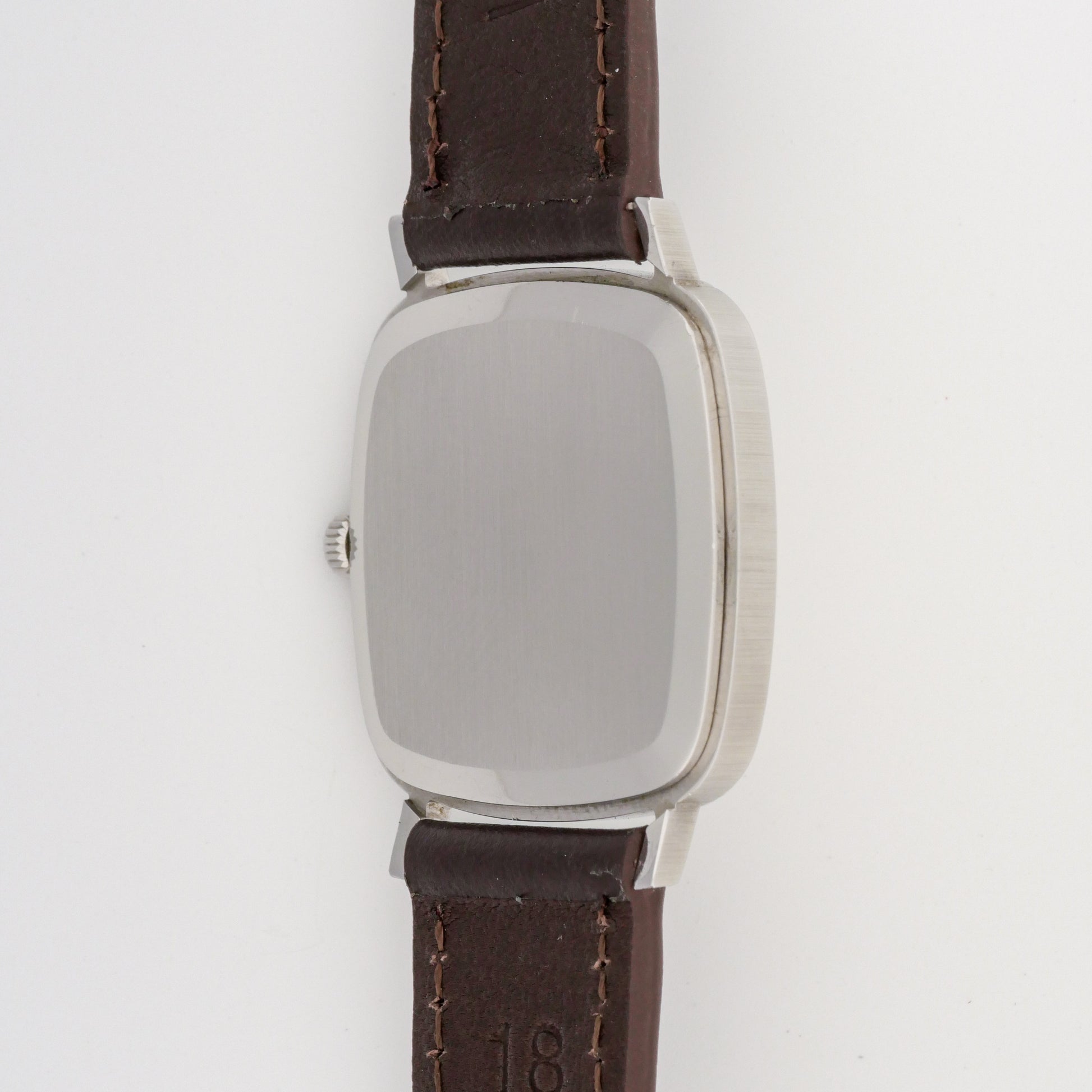 - Case: shows moderate wear consistent with regular use. There's visible scratching and scuffing on the polished surfaces, particularly noticeable on the case sides and edges. The rounded corners and cushion shape remain well-defined despite the surface wear, and no significant dents or damage are apparent.