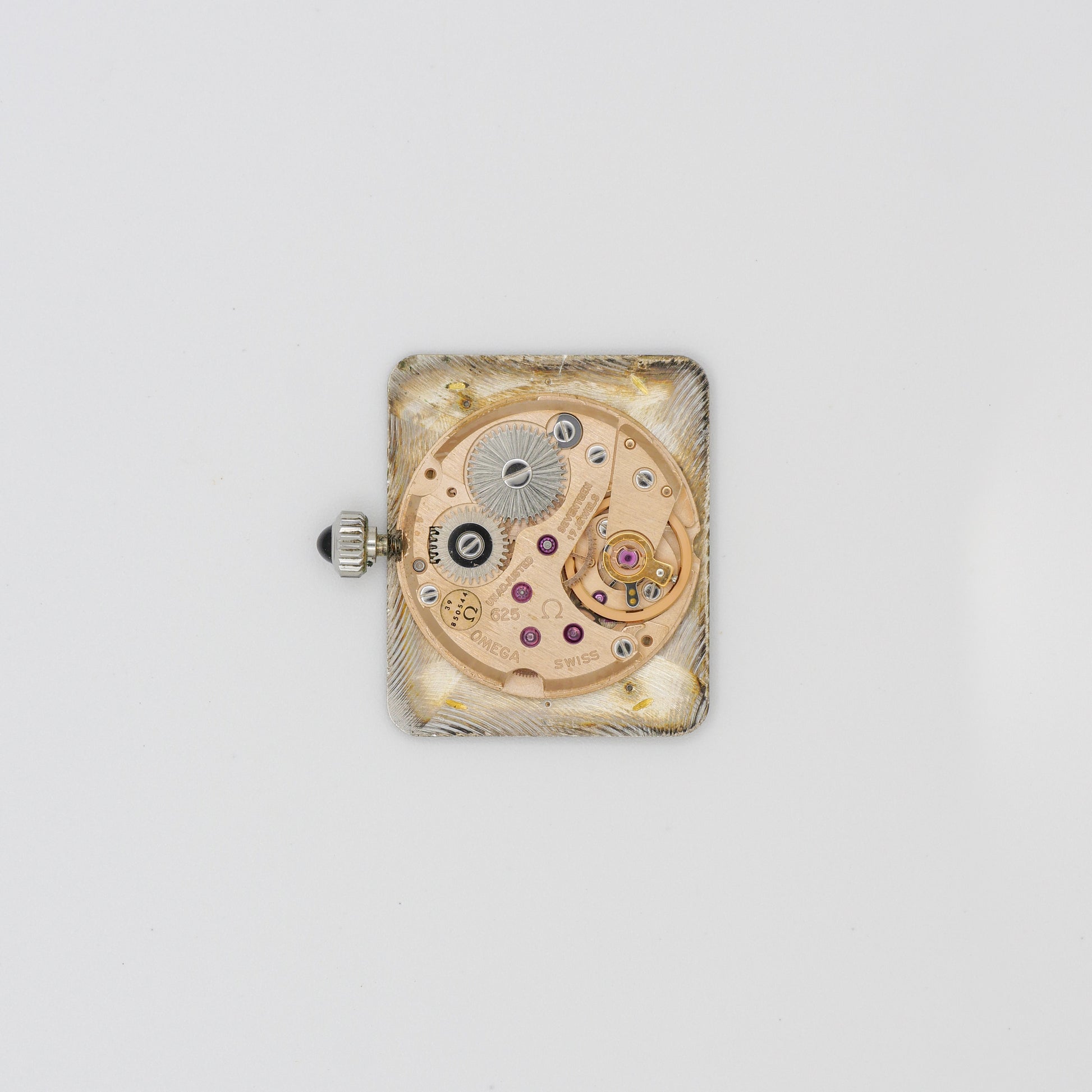 - Dial: shows some aging, with slight discoloration or patina visible. The hour markers and hands are intact, but there may be some very minor spotting or imperfections on the dial surface.