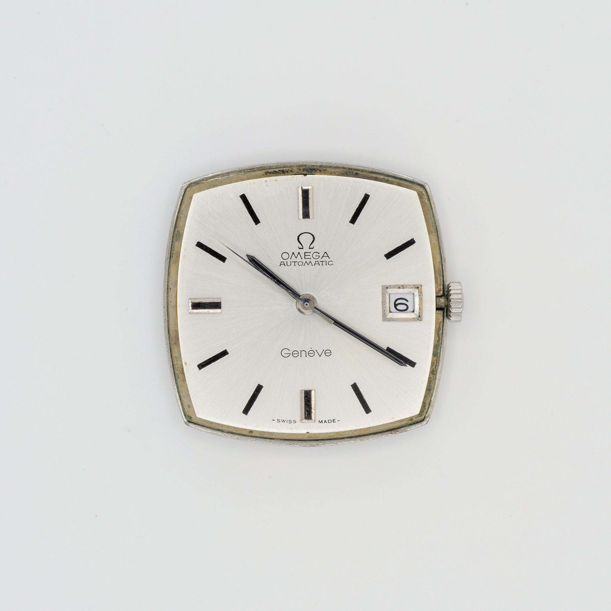 - Factory Finished Silver Dial with Printed Omega Logo