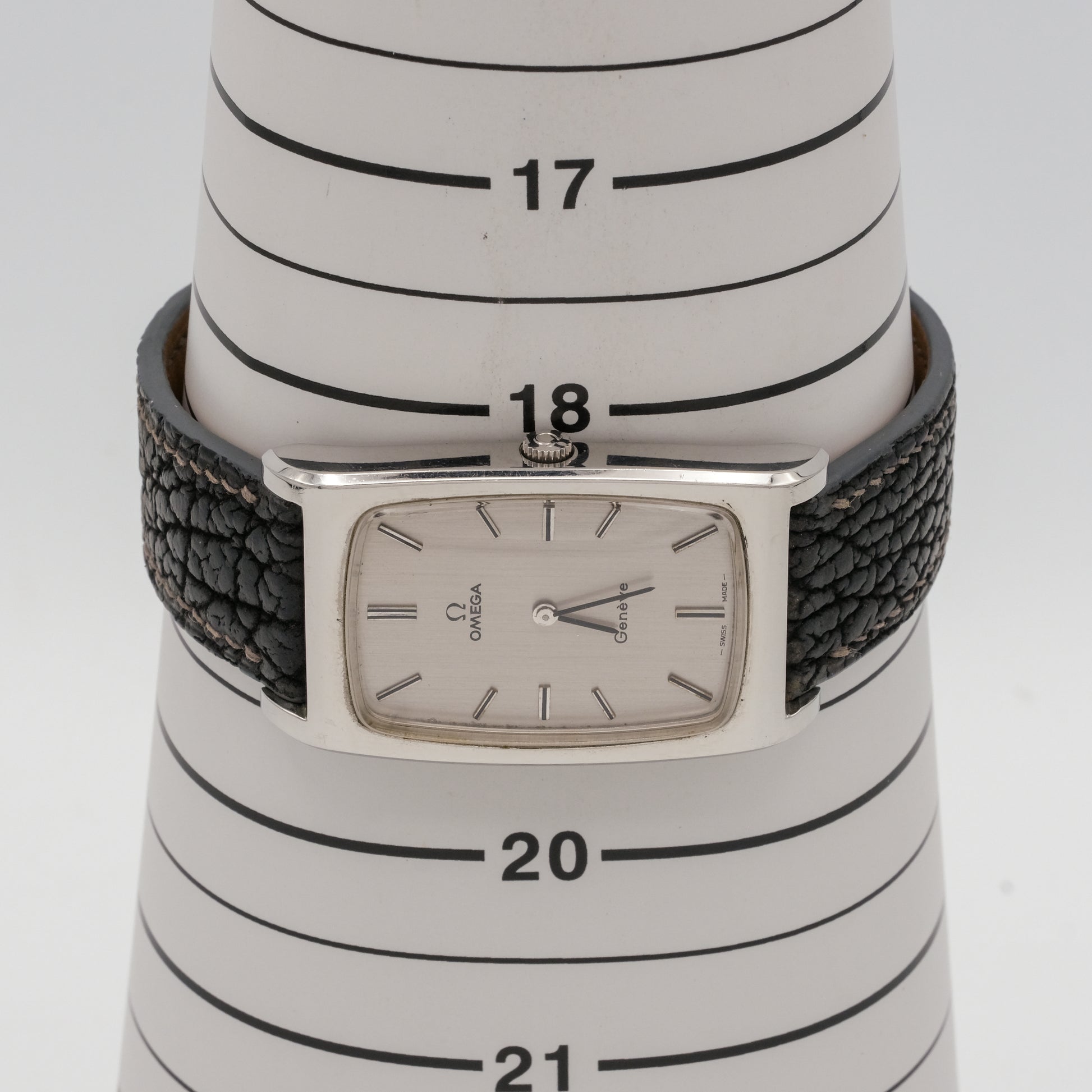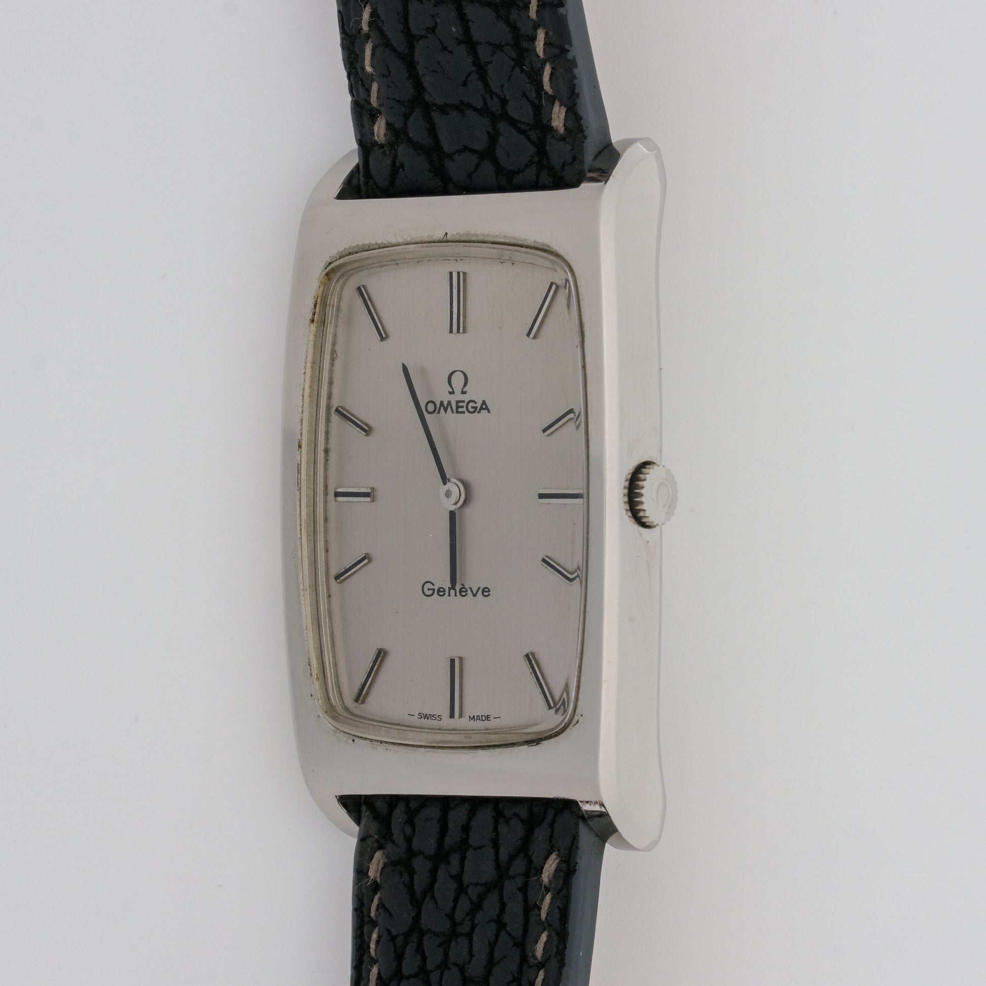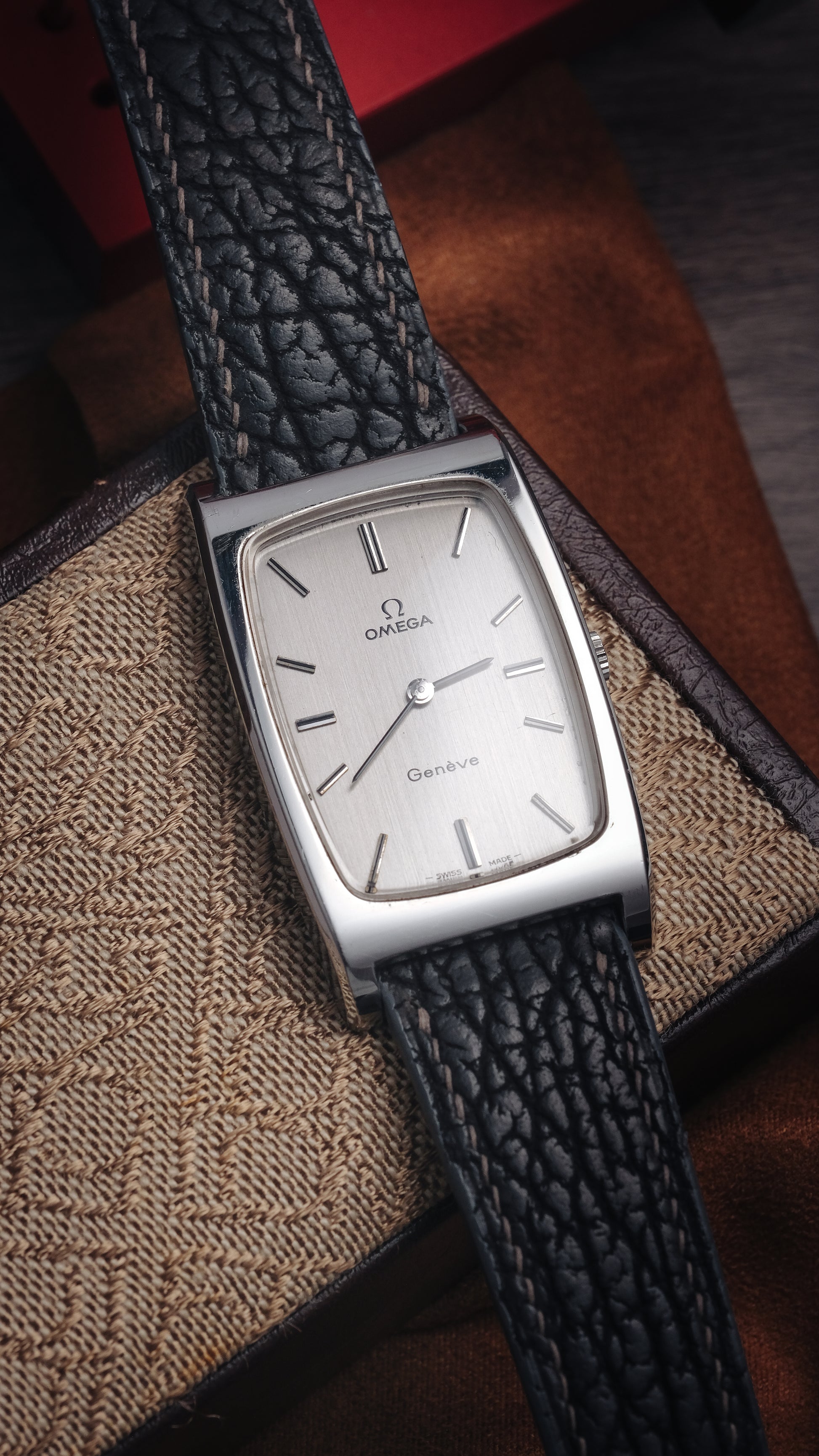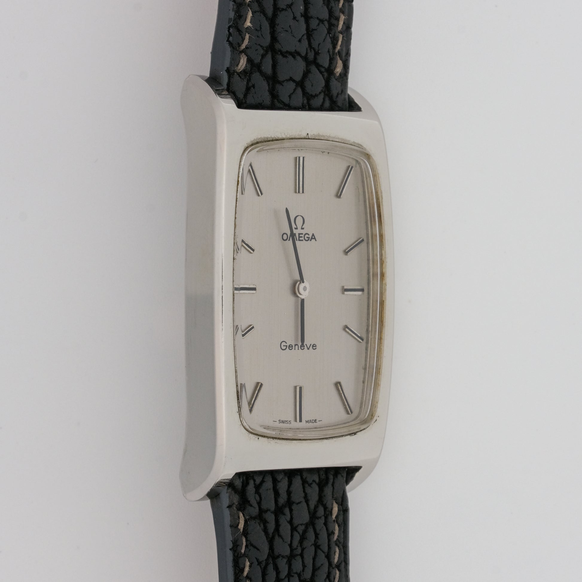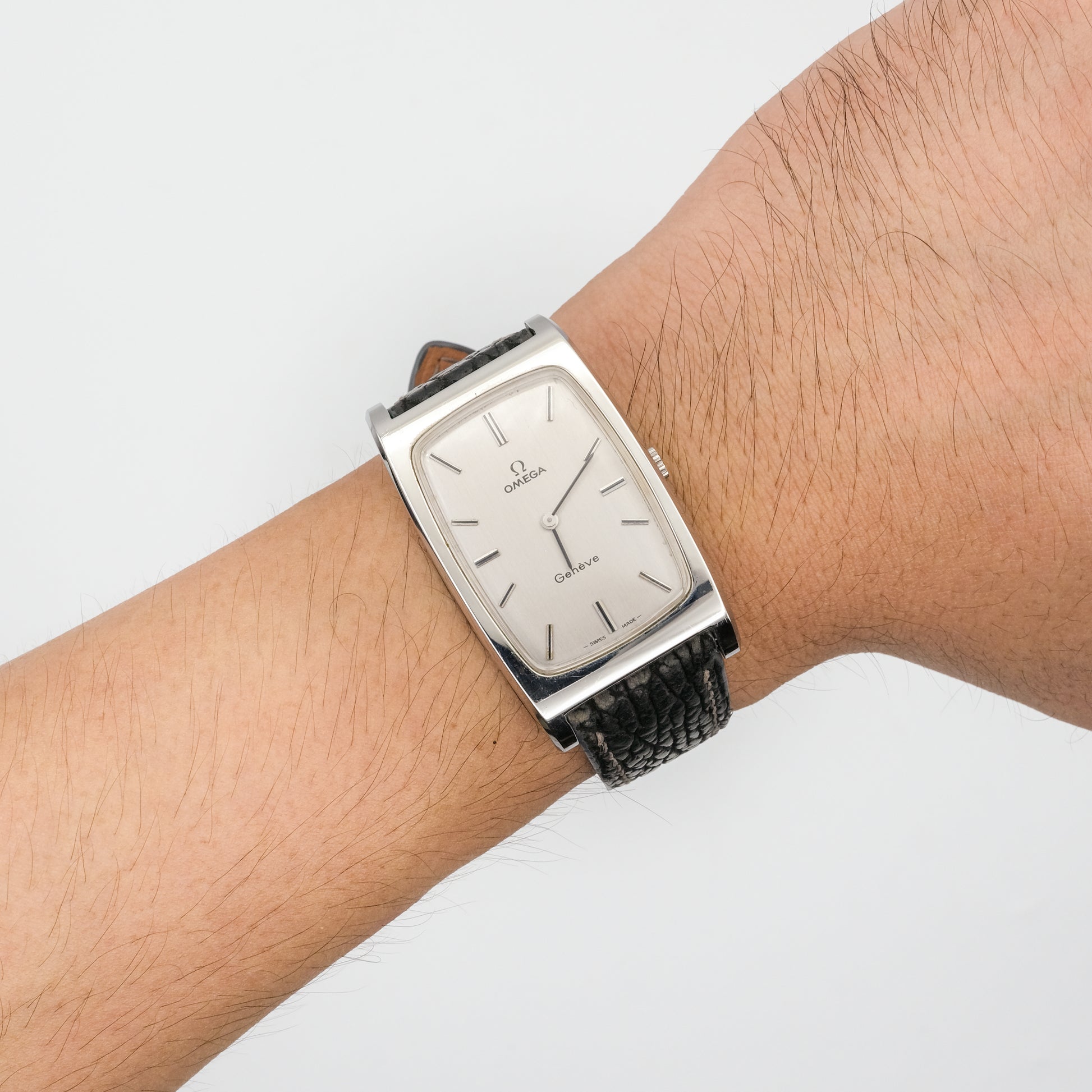 - Dial: in good condition with some very minor aging around the edges where it meets the crystal. The applied hour markers are intact and maintain their original finish. The Omega logo and "Genève" text remain clear and legible.