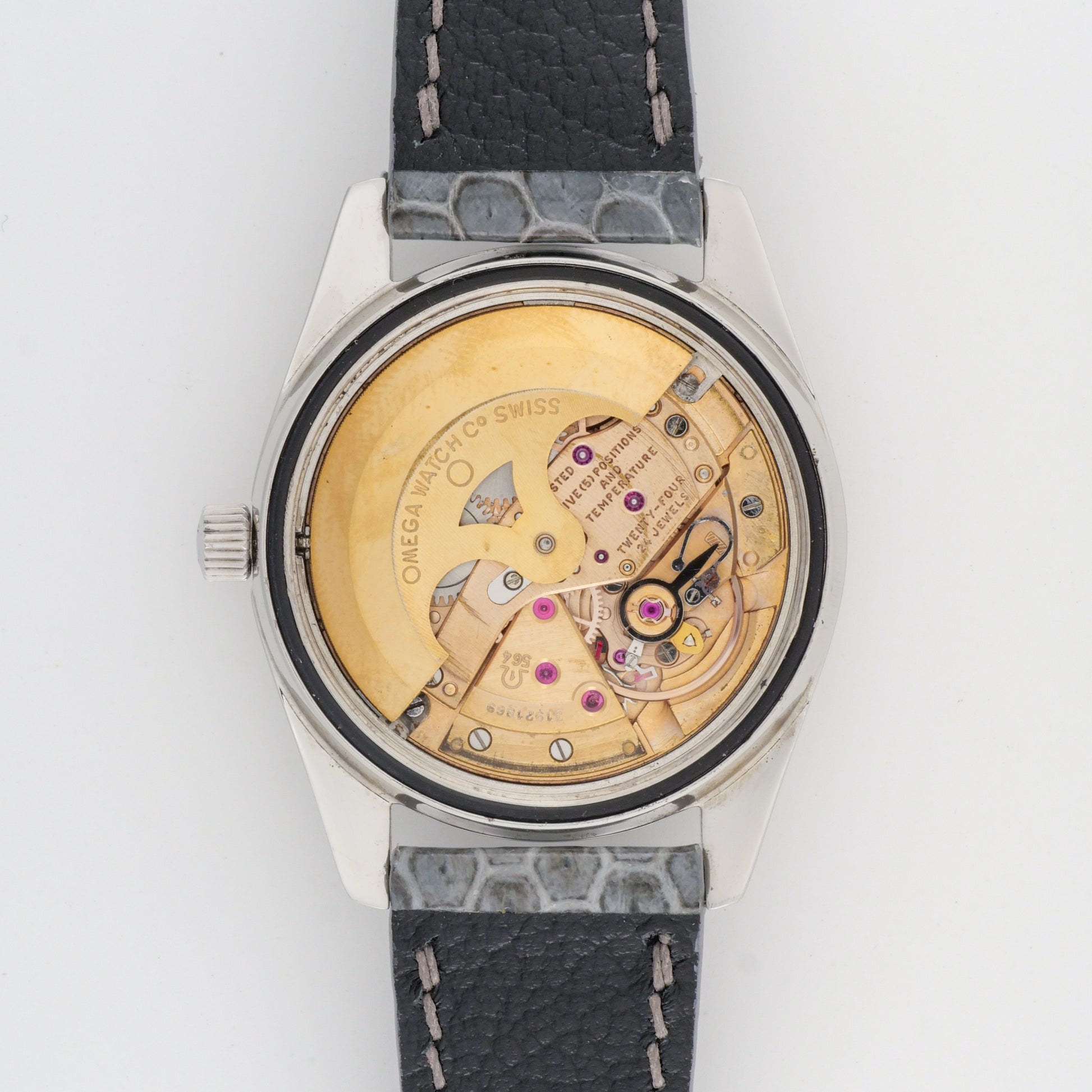 - Case: shows signs of normal wear with some minor scratches and light polishing marks on the bezel and lugs. The crown is in good condition with proper Omega signature. Overall, the case maintains its original shape and lines despite evident use.