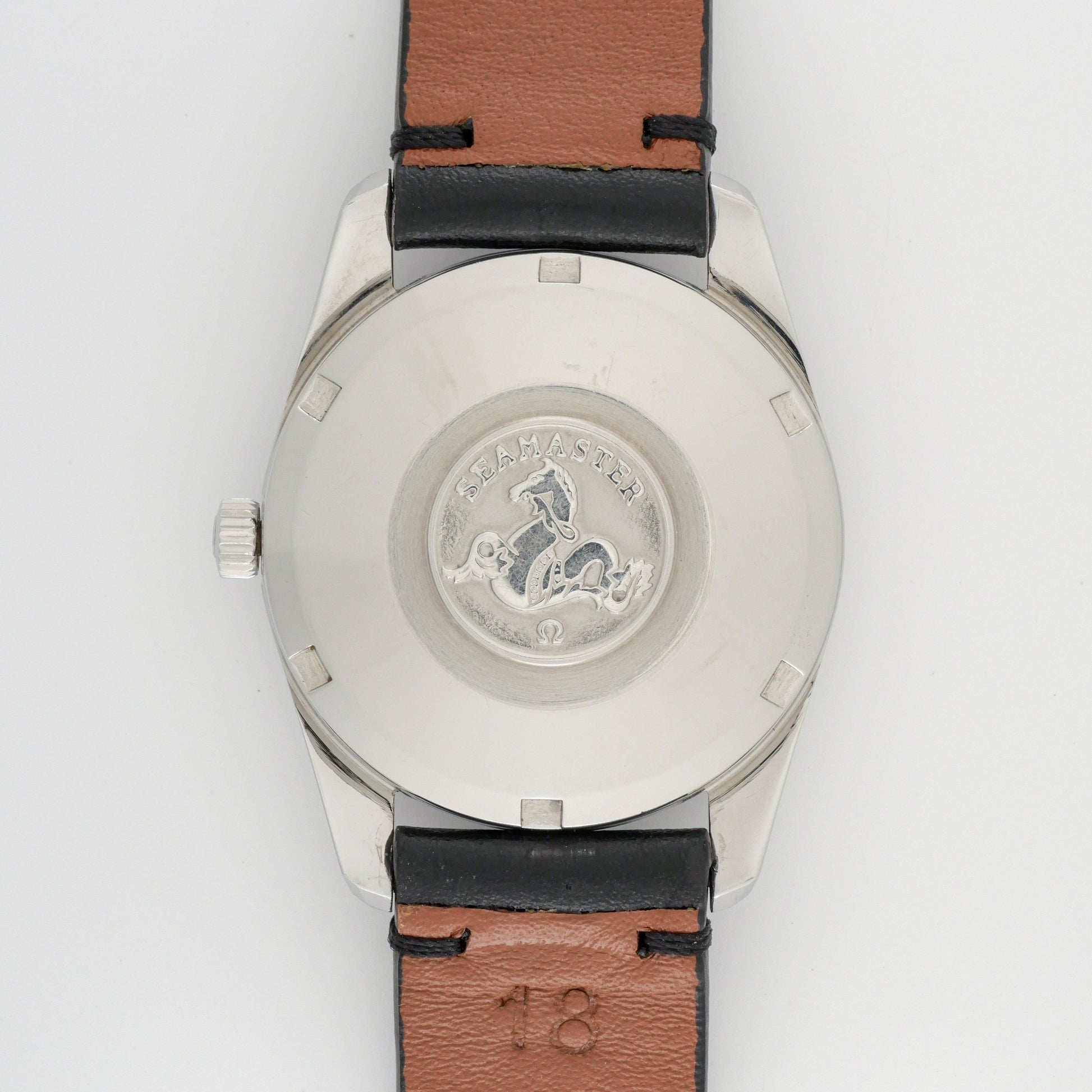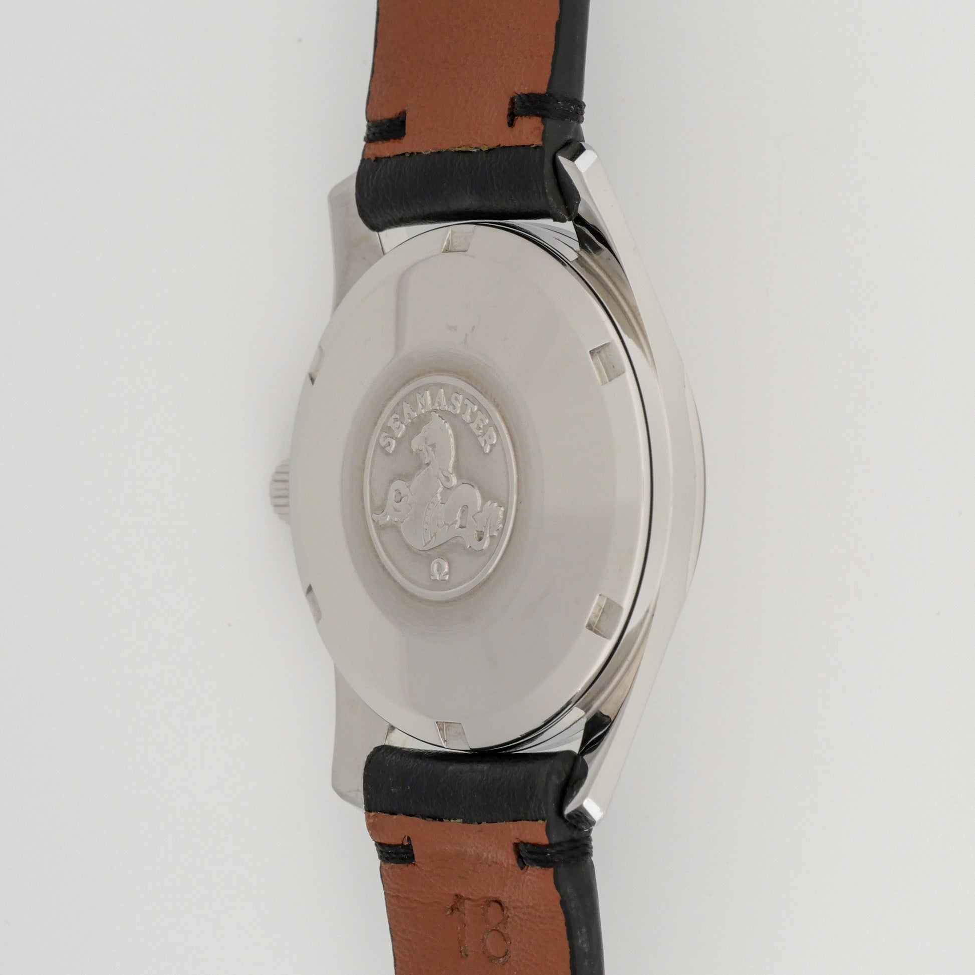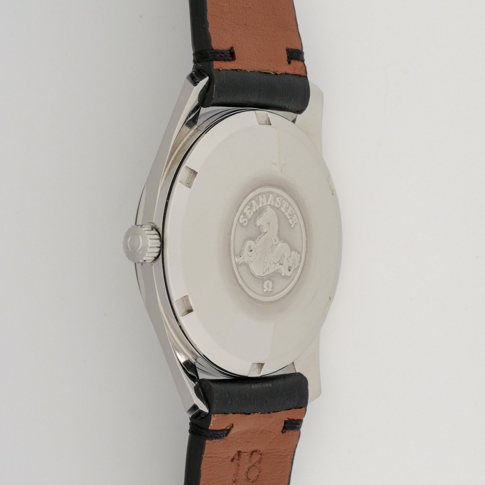 - Dial: is in good condition with no visible cracks or damage. The hour markers and hands retain their luminous material, though some aging is evident. The "Seamaster" script and Omega branding are clear and legible, with no significant fading or discoloration visible.
