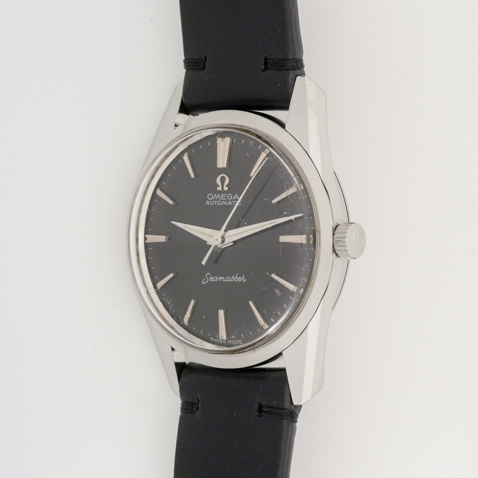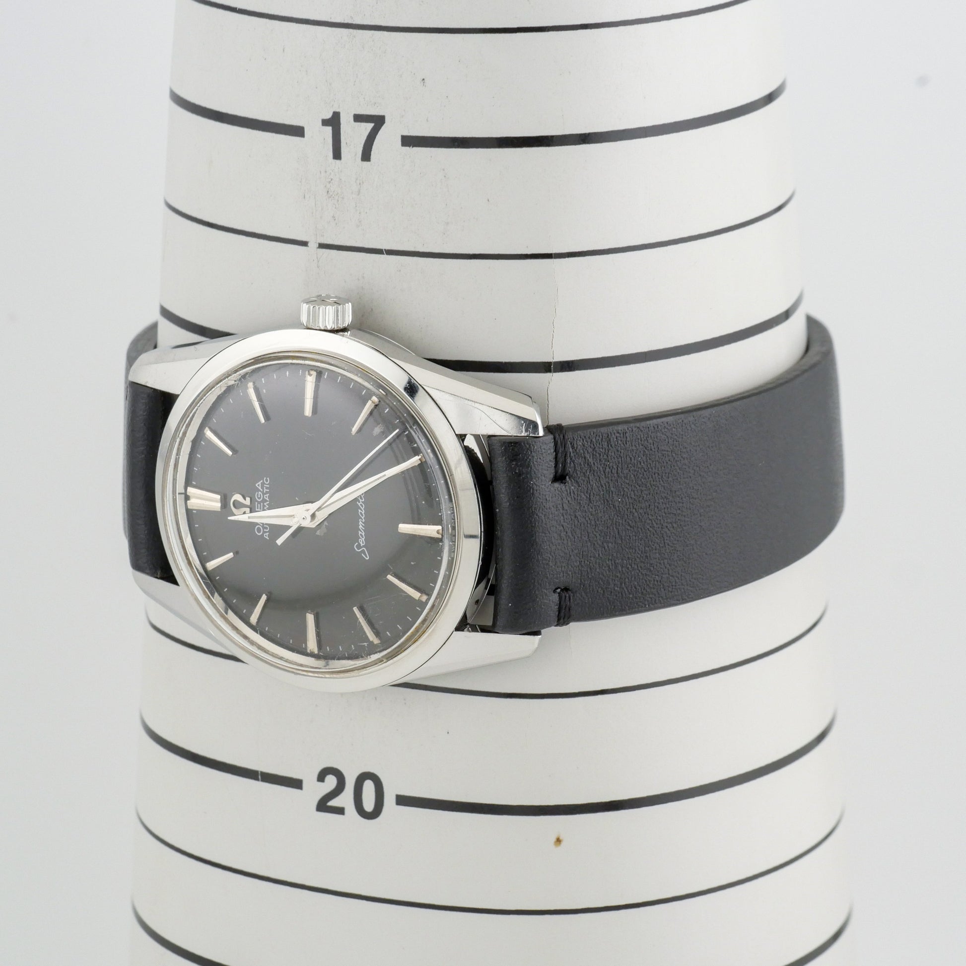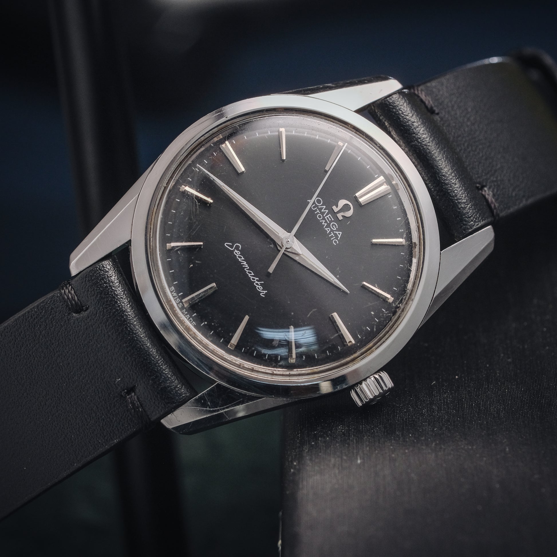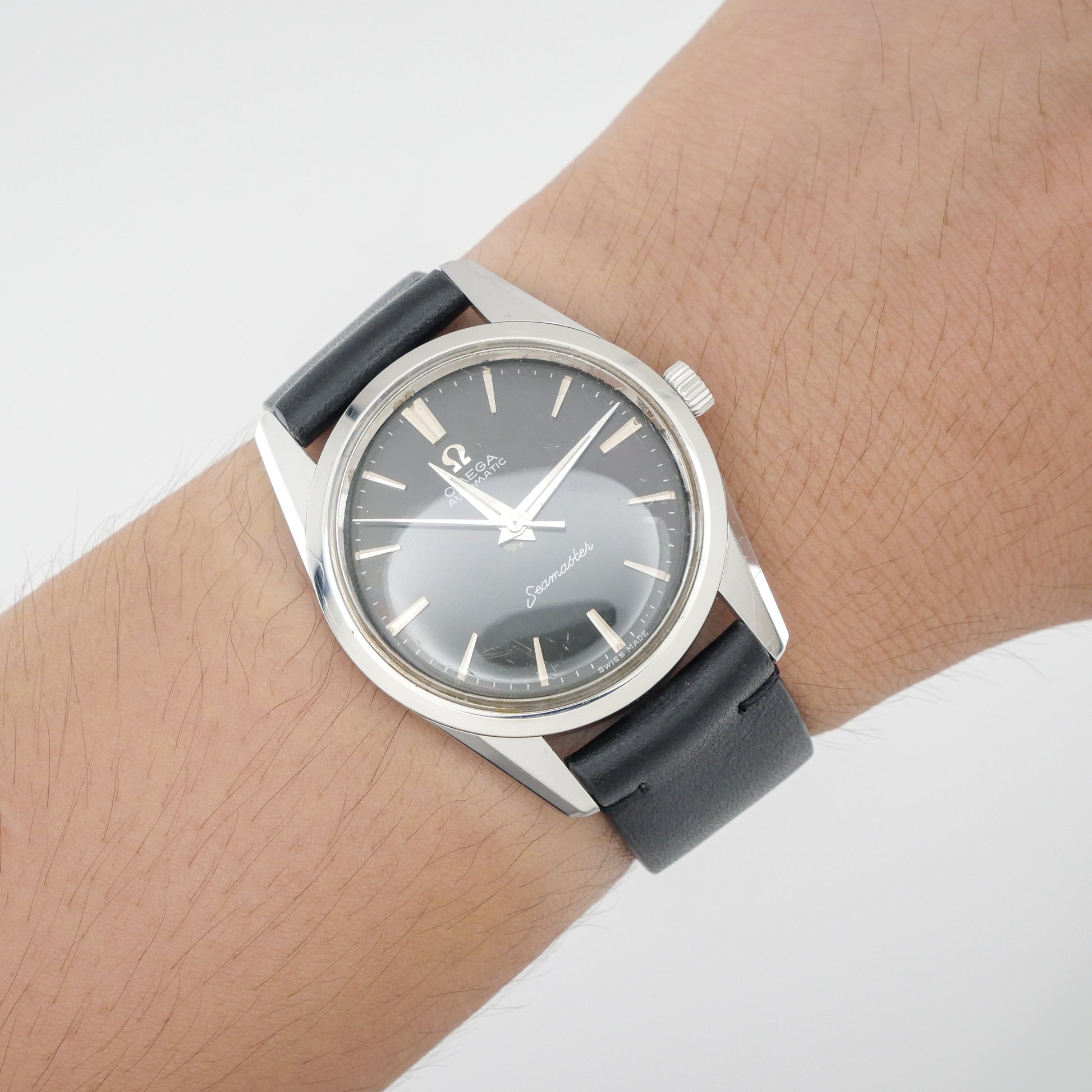 - Dial: is in good condition with no visible cracks or damage. The hour markers and hands retain their luminous material, though some aging is evident. The "Seamaster" script and Omega branding are clear and legible, with no significant fading or discoloration visible.