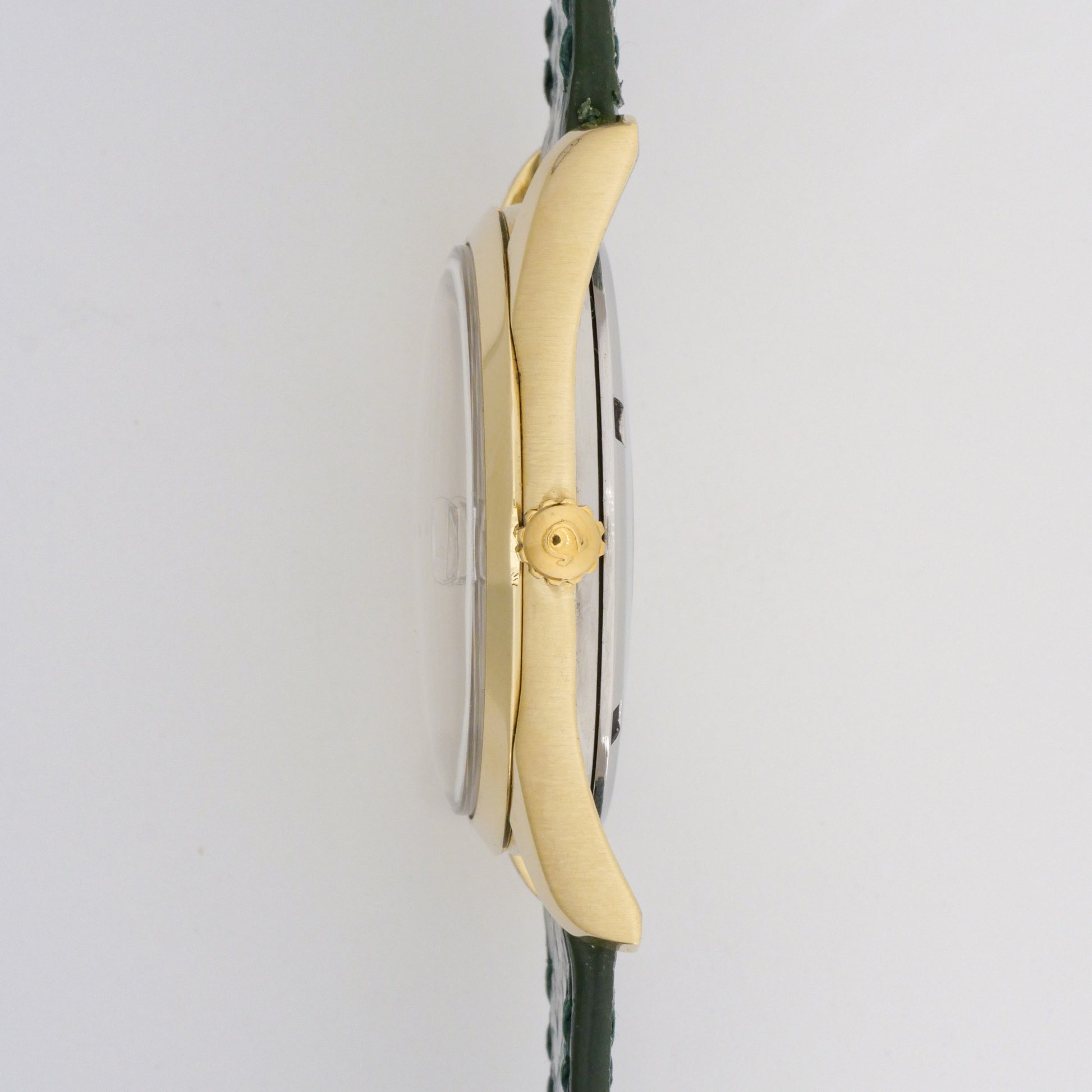 - Dial: is in good vintage condition with a cream-colored face. The applied gold hour markers are intact and maintain their original finish. The logo, text and signature are clear and legible.