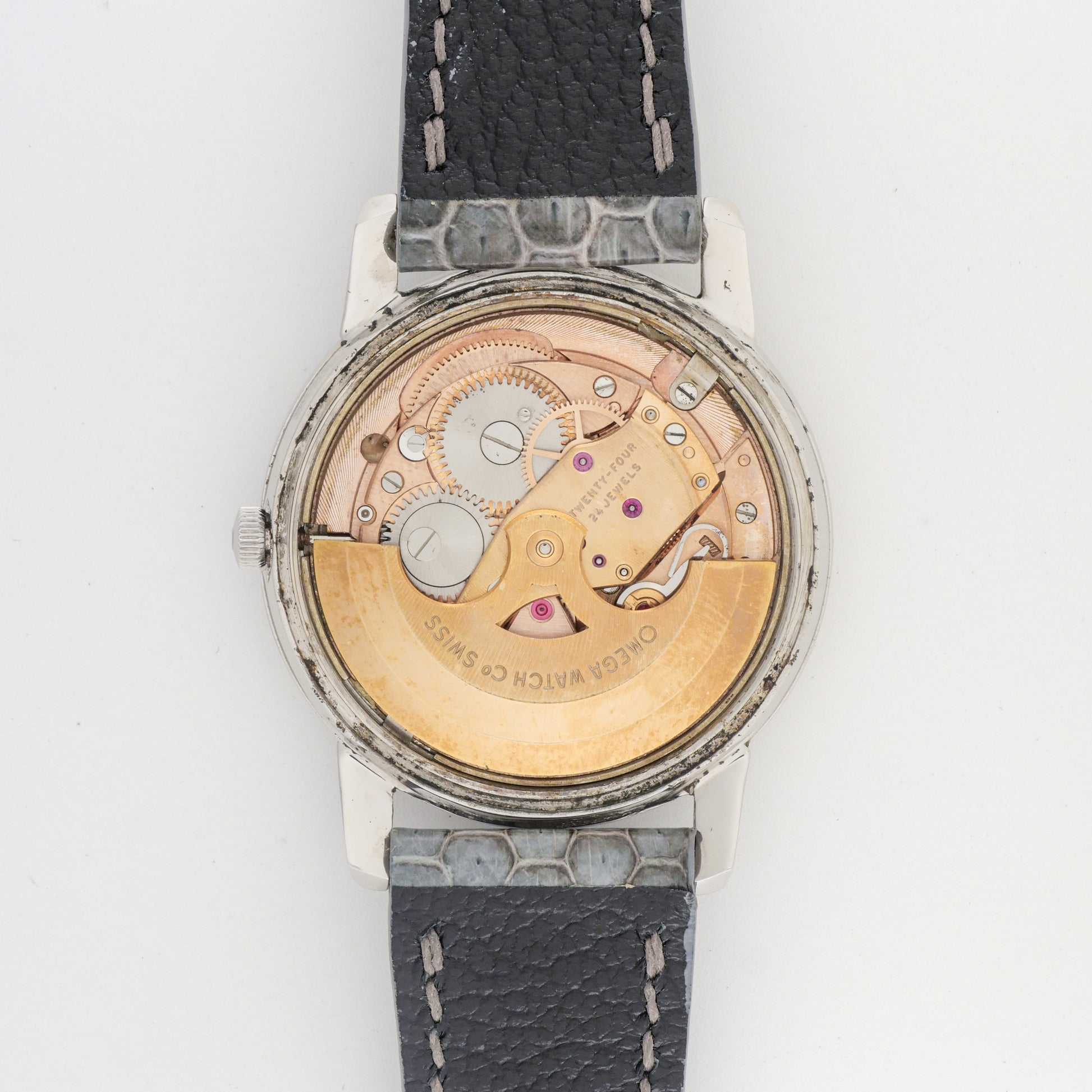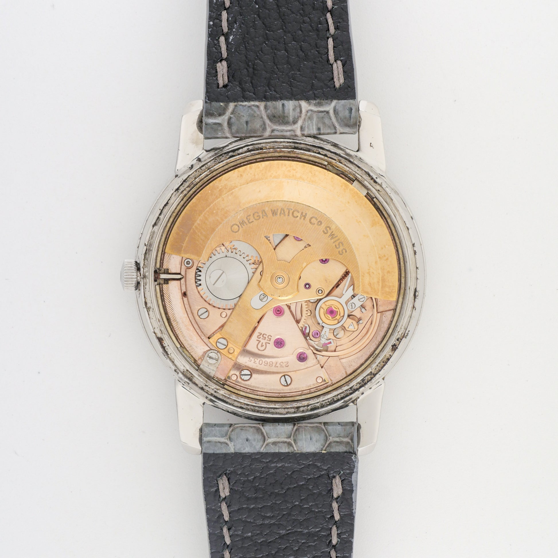 - Dial: has been refinished and is in excellent condition. The applied hour markers and hands show light tarnishing but remain intact. The Omega logo and text are clearly legible with no significant fading or damage.