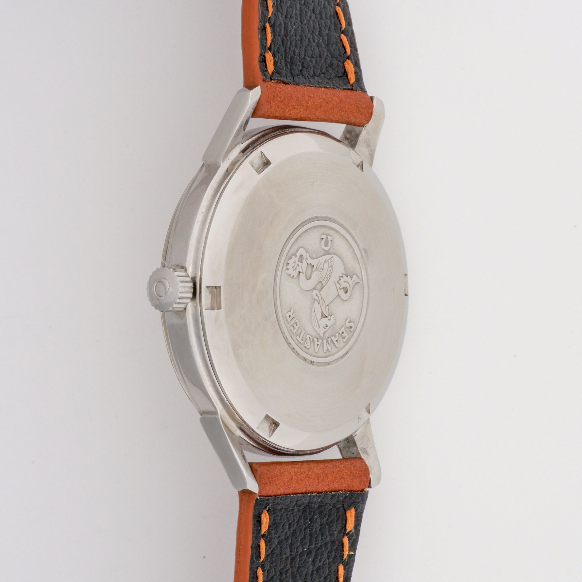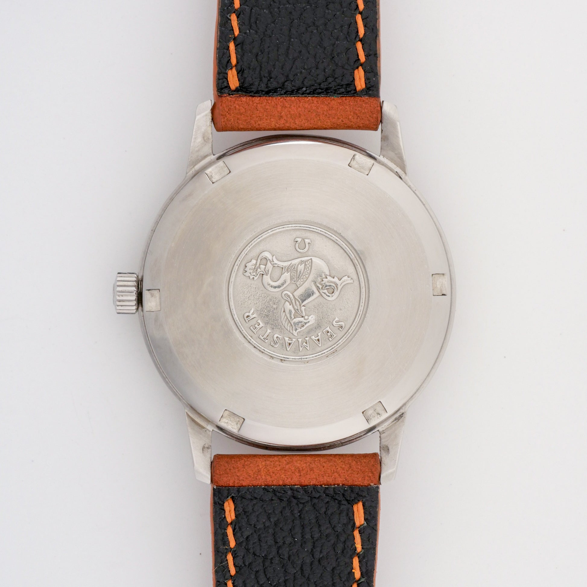 - Case: in good vintage condition with expected signs of wear. The edges retain their original shape and definition, though there are some minor surface scratches visible from normal use. The caseback shows clear engravings of the Seamaster seahorse logo.