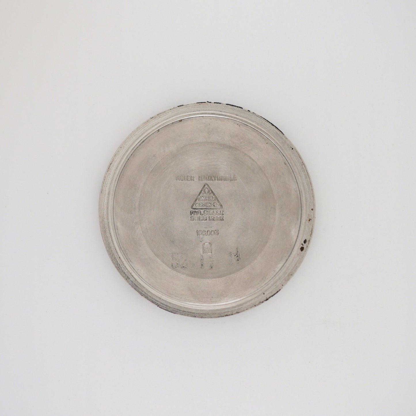 - Dial: has aged evenly with a slight patina, which is desirable for vintage watches. The applied hour markers and original text are intact and legible. The date window at 3 o'clock is clear and functional. There are no obvious signs of restoration or damage to the dial.