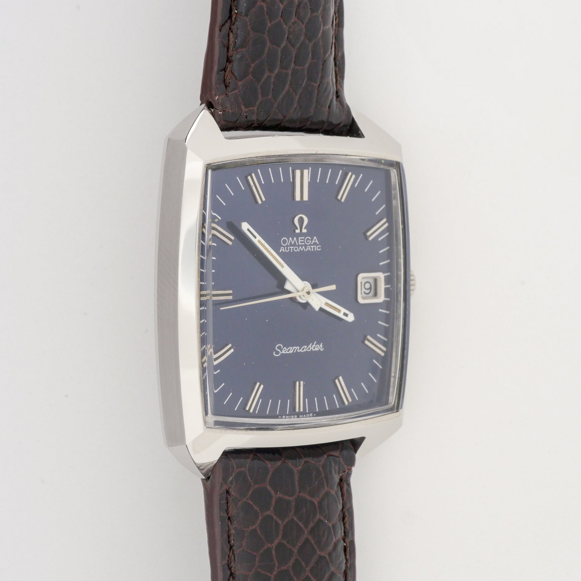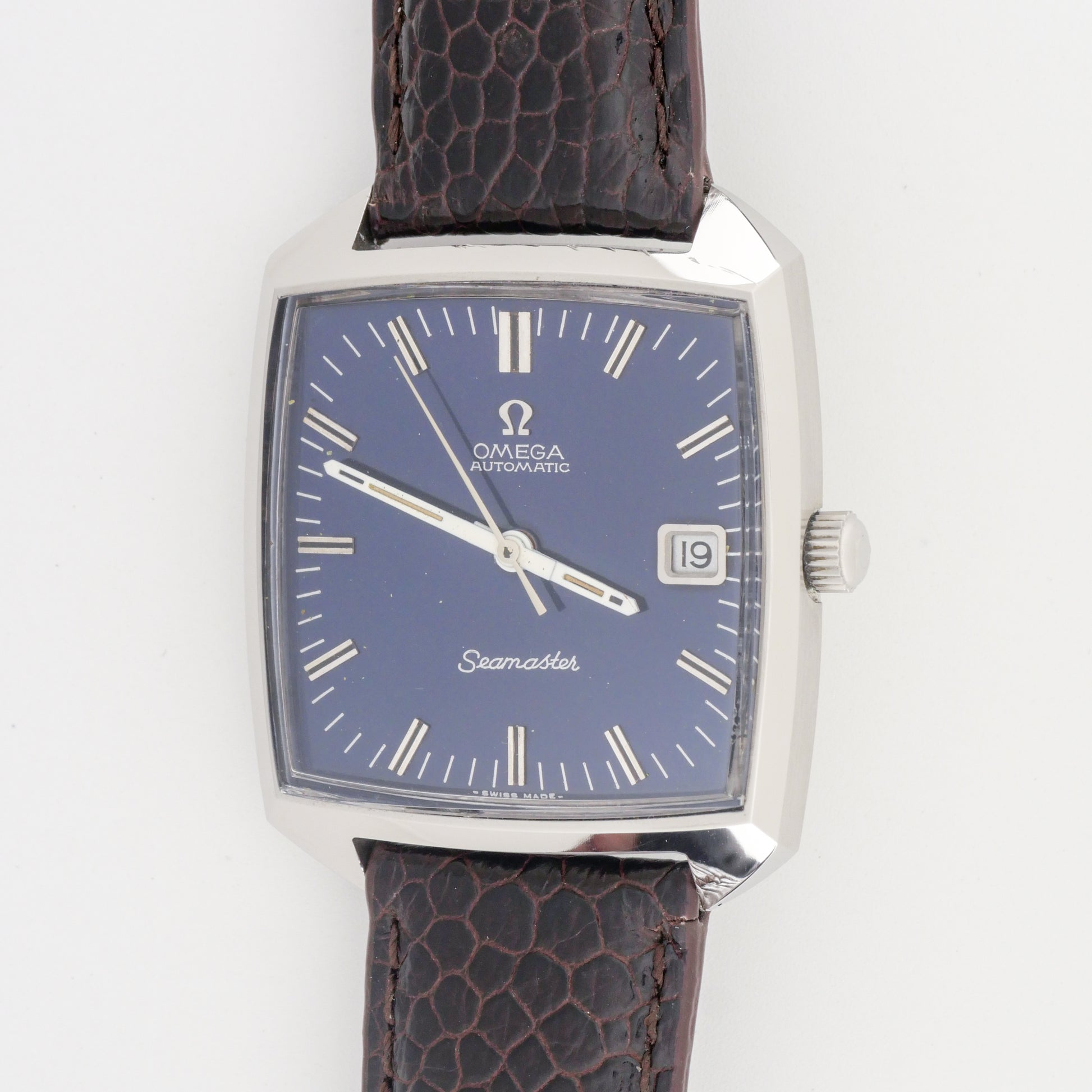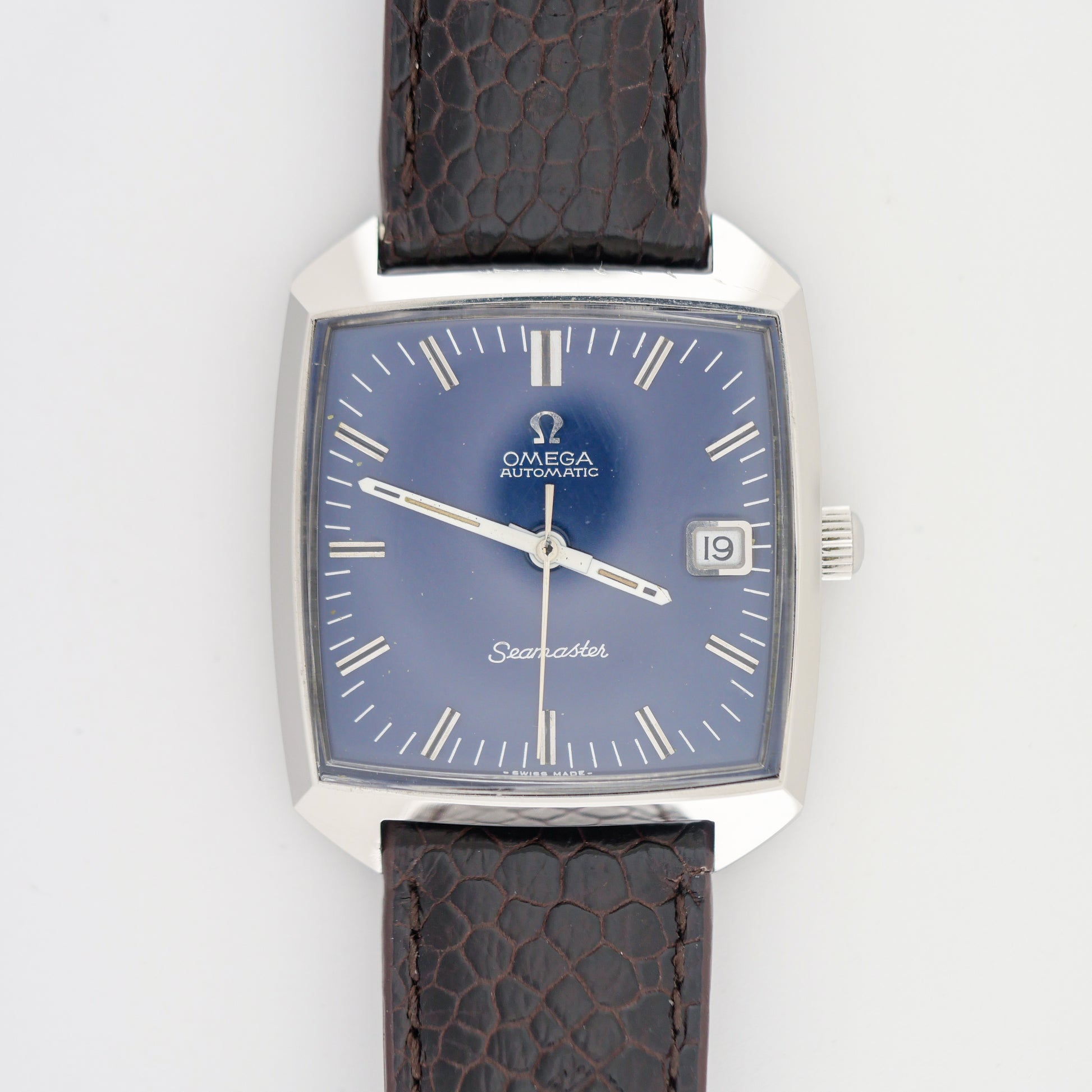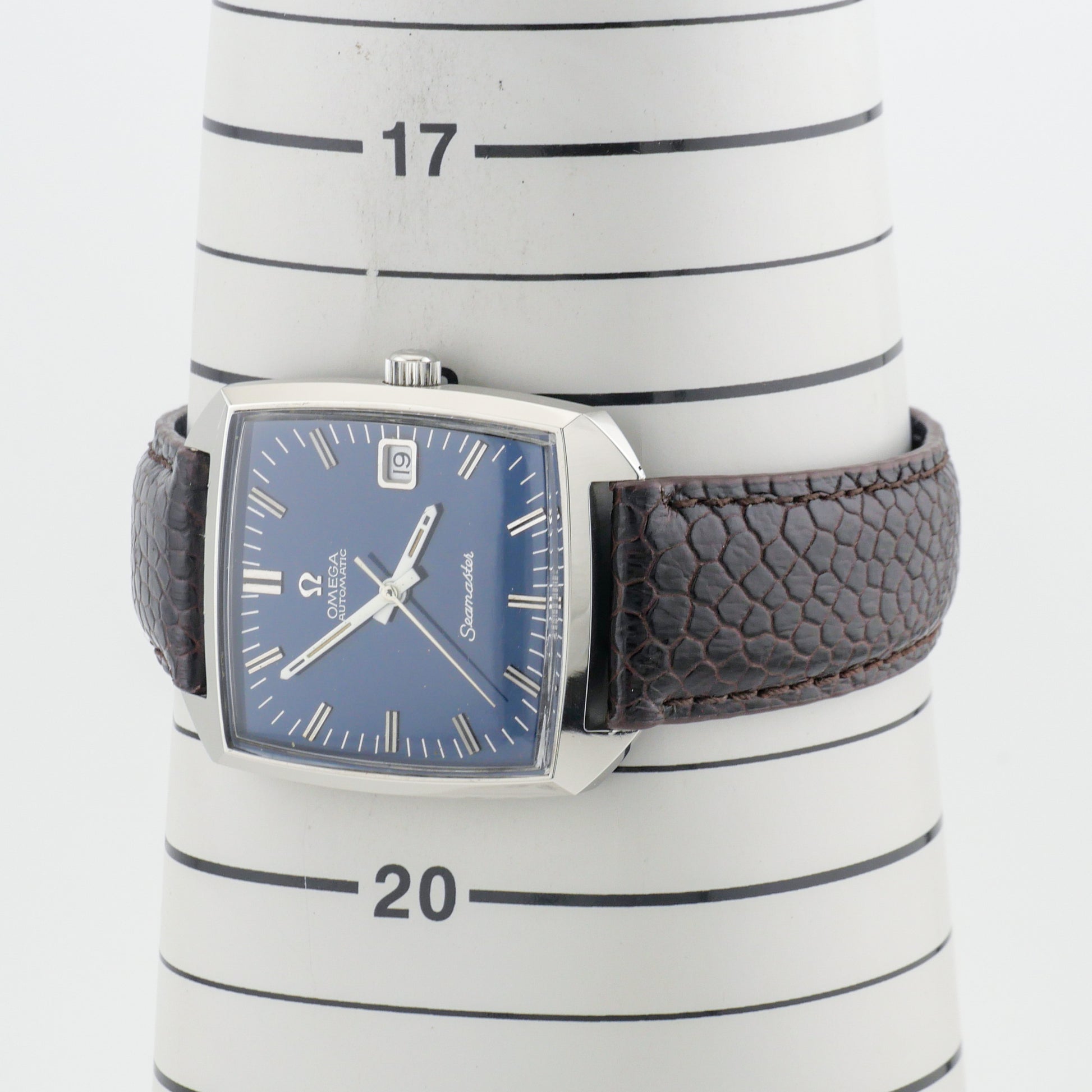 - Case: shows light signs of wear consistent with age but remains in good condition overall. The faceted, square-shaped case has maintained its polished finish with minor surface scratches visible. The caseback features a well-preserved Seamaster emblem with the distinctive seahorse logo.