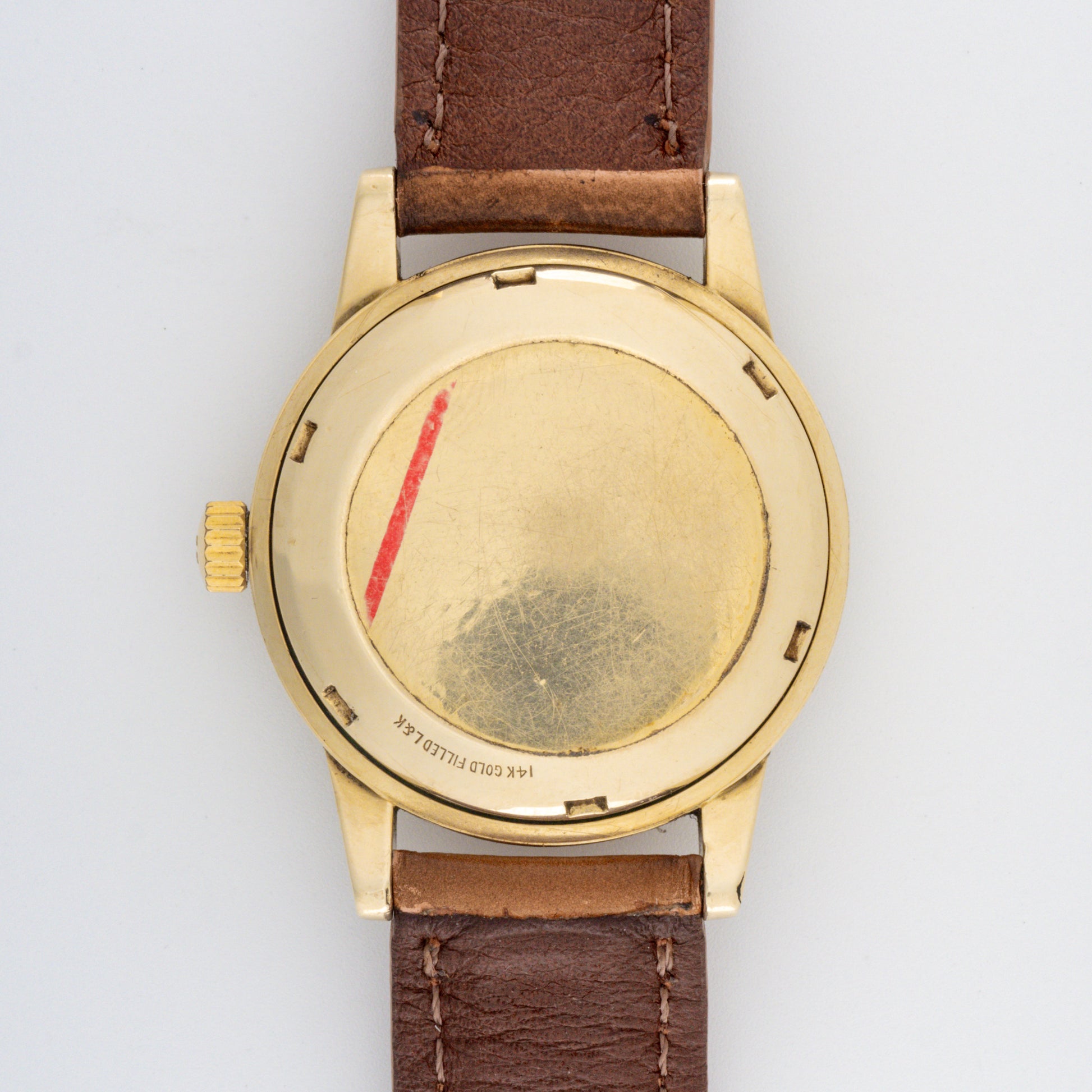 - Case: shows moderate signs of wear consistent with its age. There are visible scratches and surface marks across the case body, particularly noticeable on the back. The case retains its original shape and lugs appear structurally sound, though there is some wearing to the plating, especially around the edges and high-contact areas.